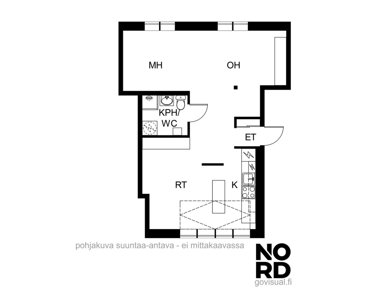 | Huoneistoselitelmä | Oh+mh+k+rt+kph/wc (yj 1h+tk+kh) |