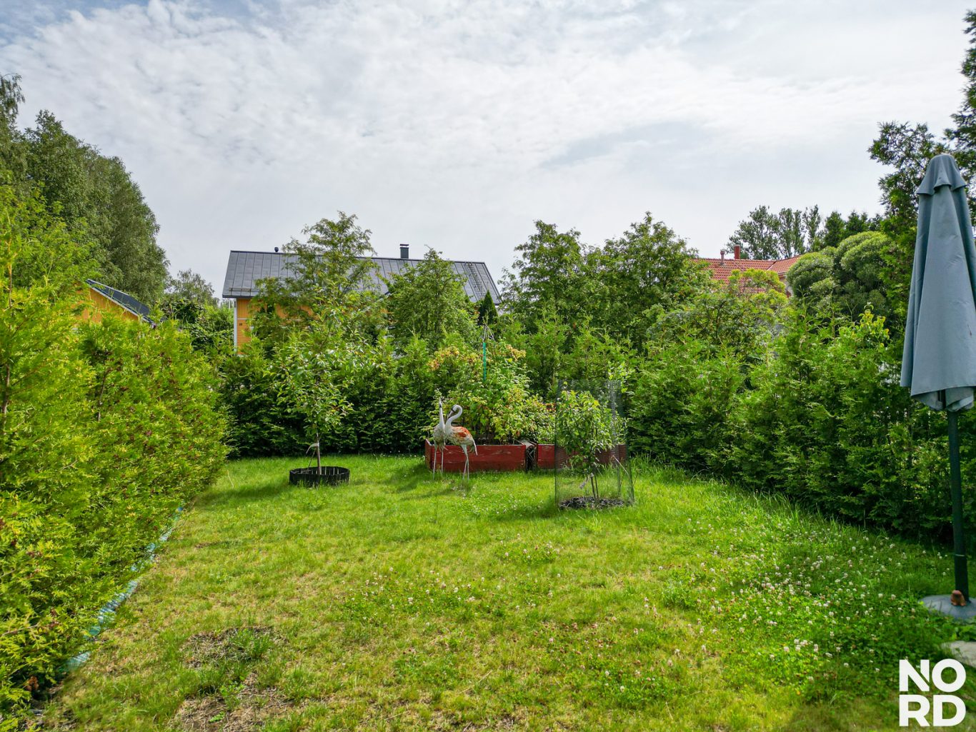 Reilunkokoinen aidattu piha tarjoaa runsaasti istutuksia, kuten mustikkaa, päärynäpuun, raparperin, vadelman, boysenmarjan ja hapankirsikkapensaan, mikä tekee pihasta ihanteellisen paikan rentoutumiseen ja puutarhanhoitoon.