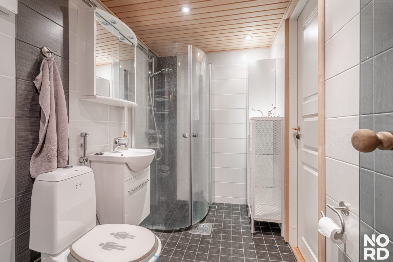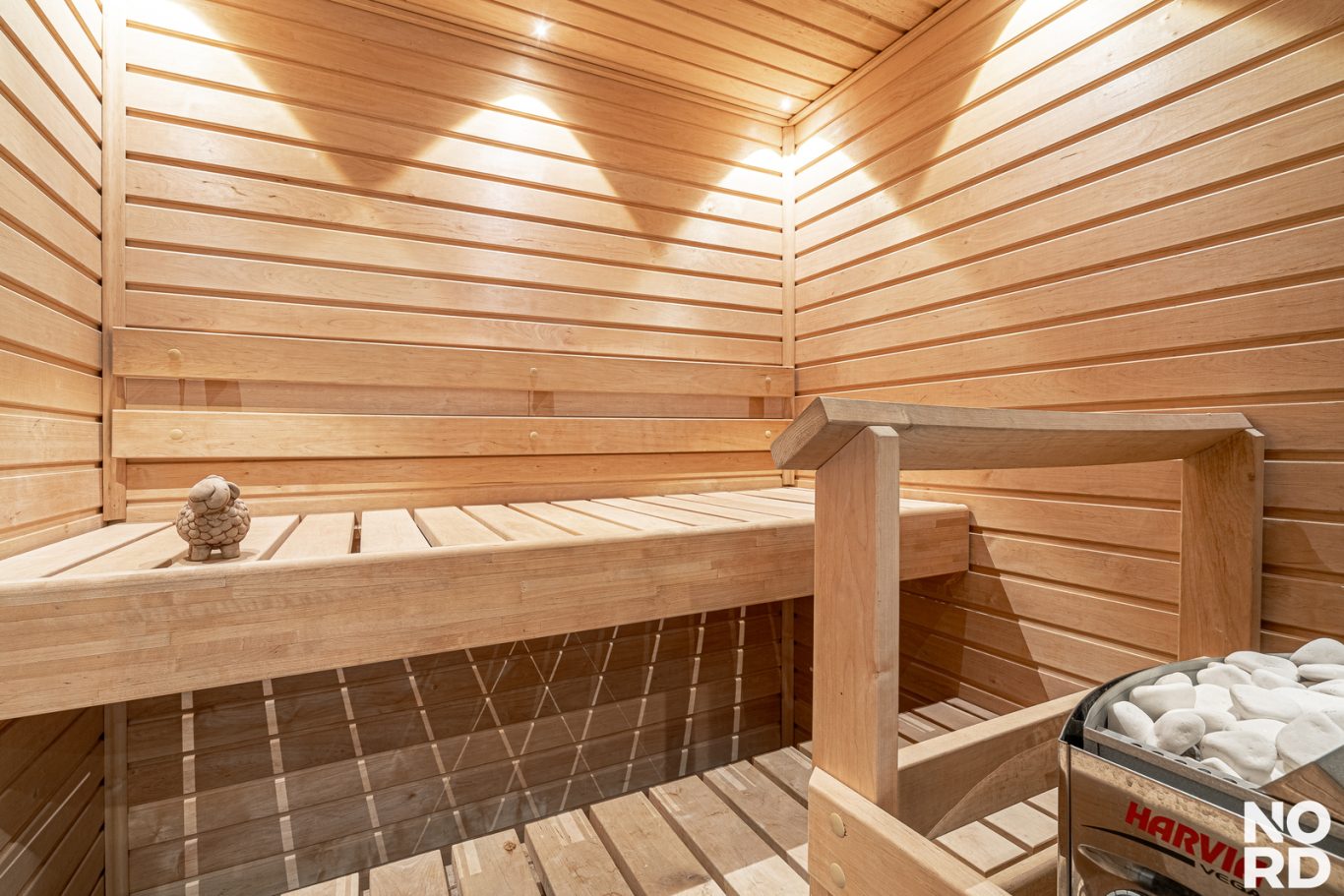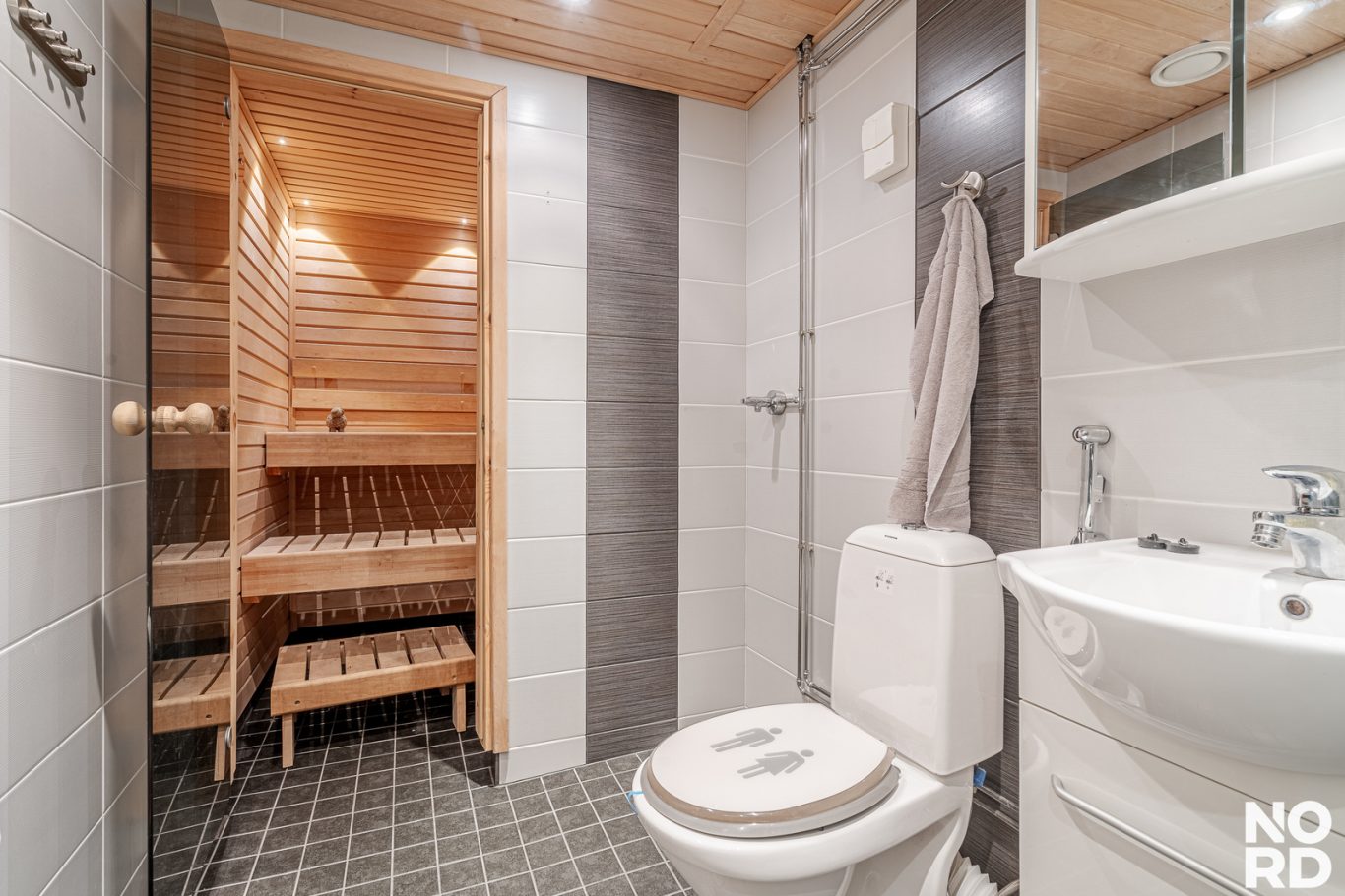 Huoneistosta löytyy alkovi, oma sauna, tilava kylpyhuone sekä terassipatio valokatteella, jotka lisäävät asumisen mukavuutta.