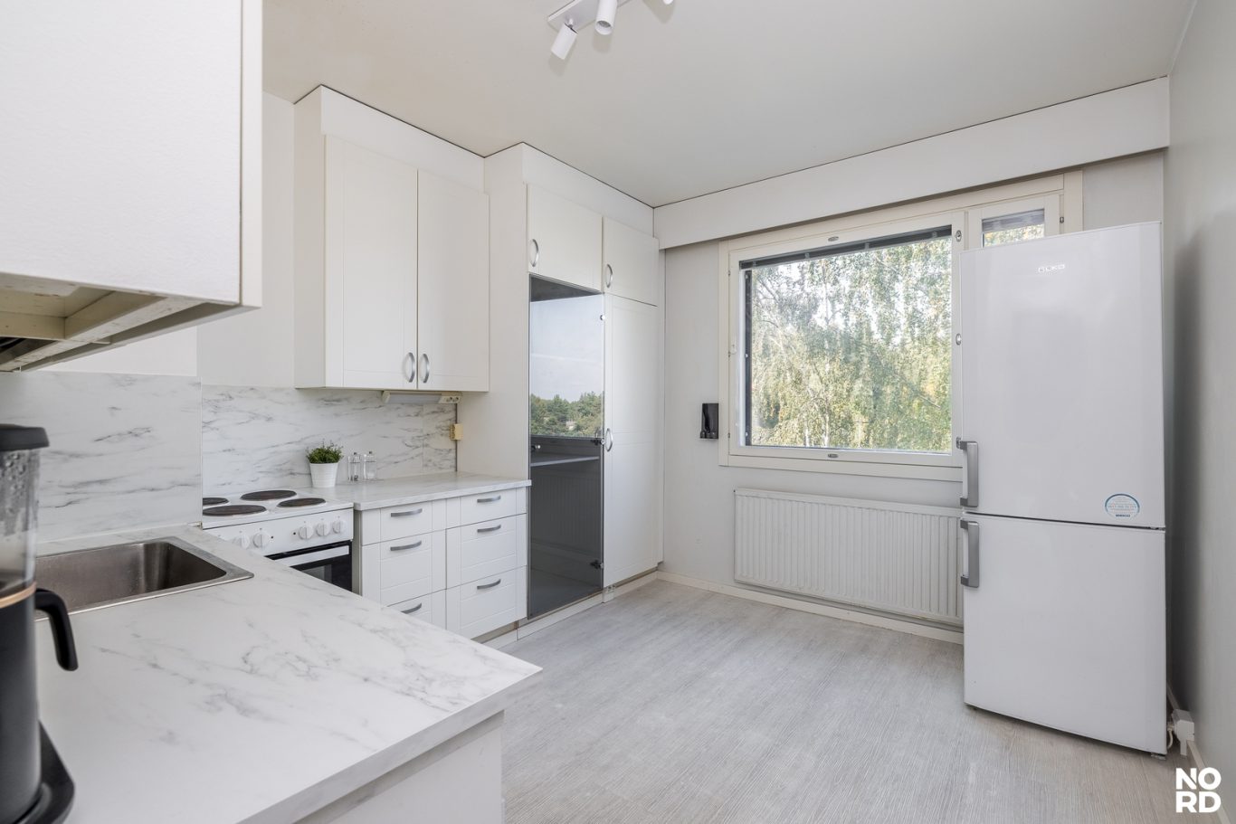 Tämä valoisa ja avara kaksio sijaitsee ylimmässä kerroksessa, suojaisilla näkymillä – ilman naapureiden katseita. Kodissa on käytetty vaaleita ja ajattomia materiaaleja, jotka luovat harmonisen ja raikkaan ilmeen.