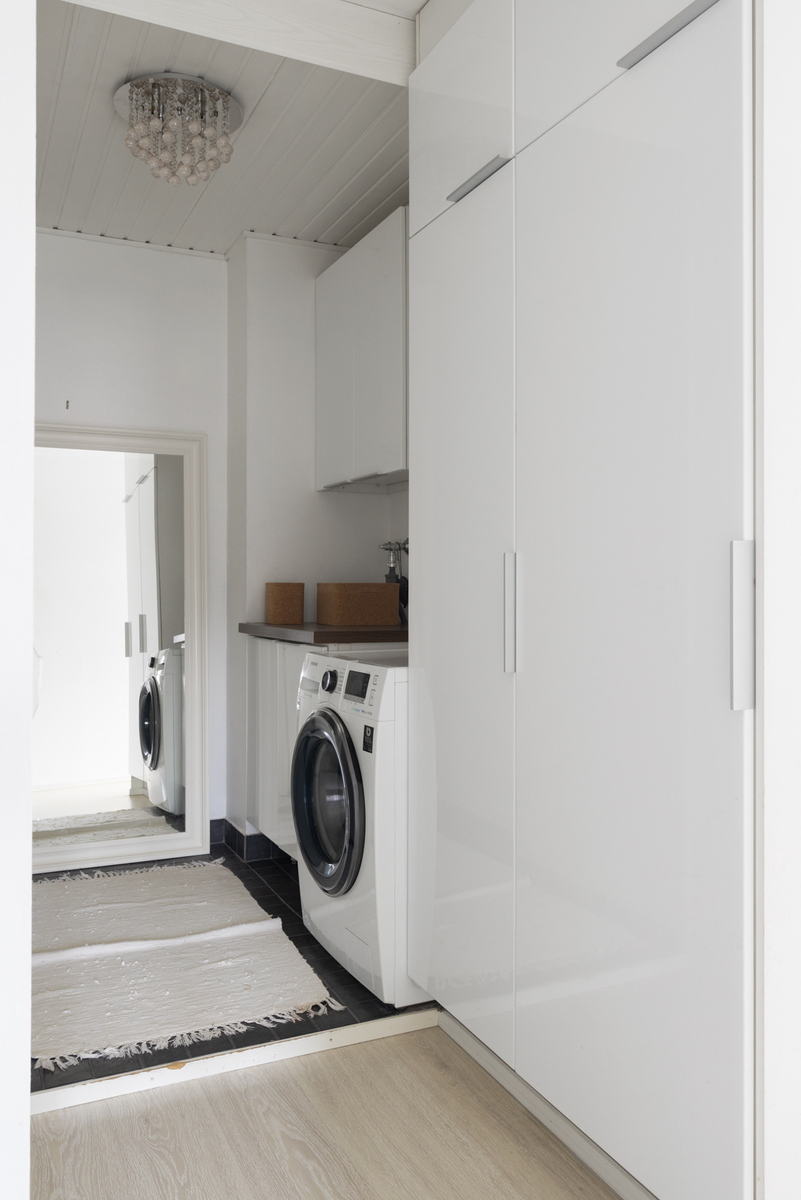 Arjen toimivuutta lisää erillinen kodinhoitotila, ja säilytystilaa löytyy runsaasti. Pohjaratkaisu on hyvin suunniteltu, ja tilantuntua lisäävät suuret ikkunat sekä selkeä huonejako.