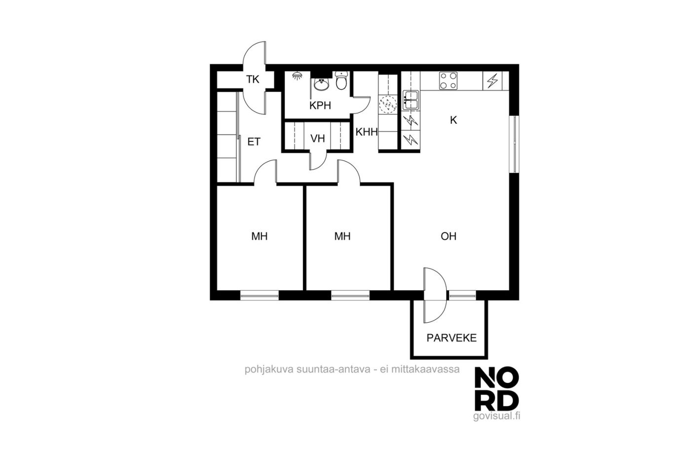 | Lisätietoja pinta-alasta | Pinta-ala ei ole tarkistusmitattu. Hinta ei ole pinta-alaperusteinen. Yhtiöjärjestyksen mukainen huoneistoselitelmä on 3 h+k. |