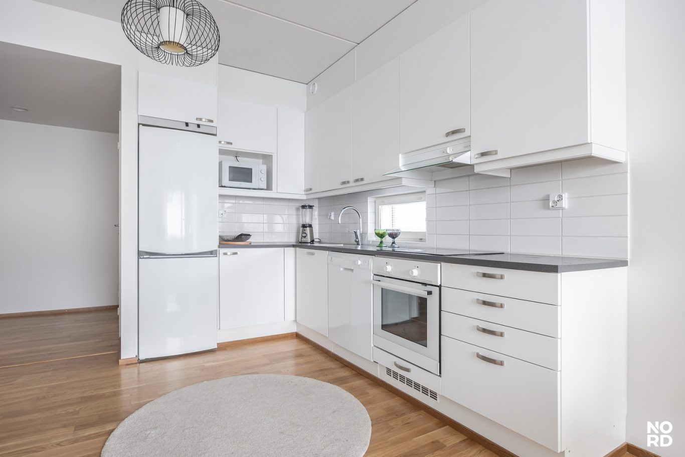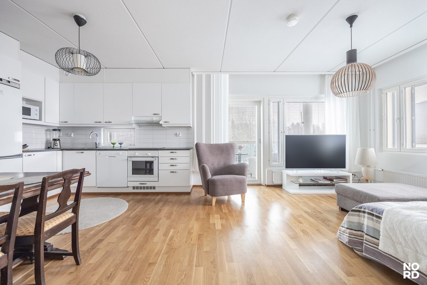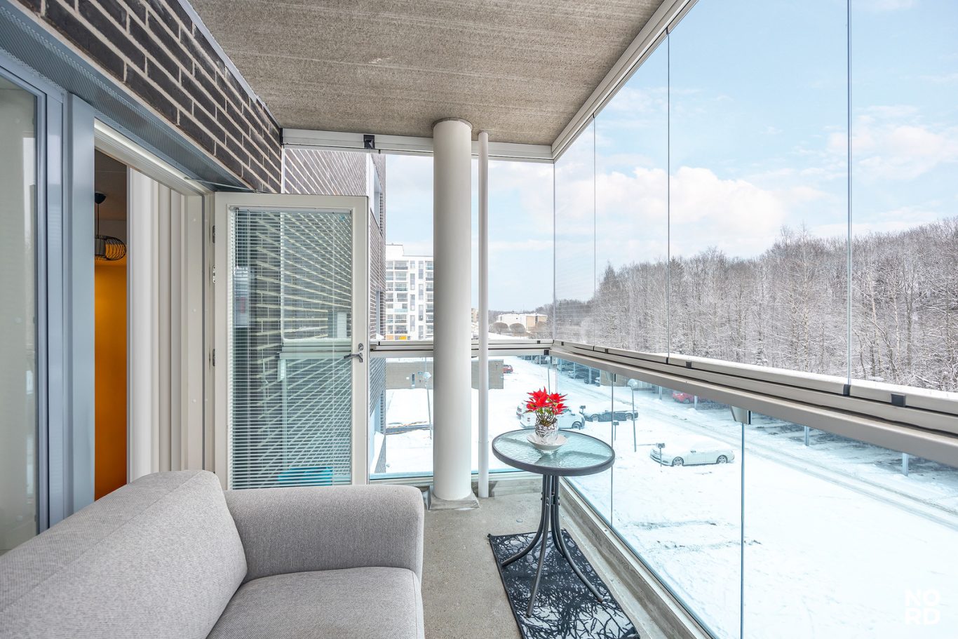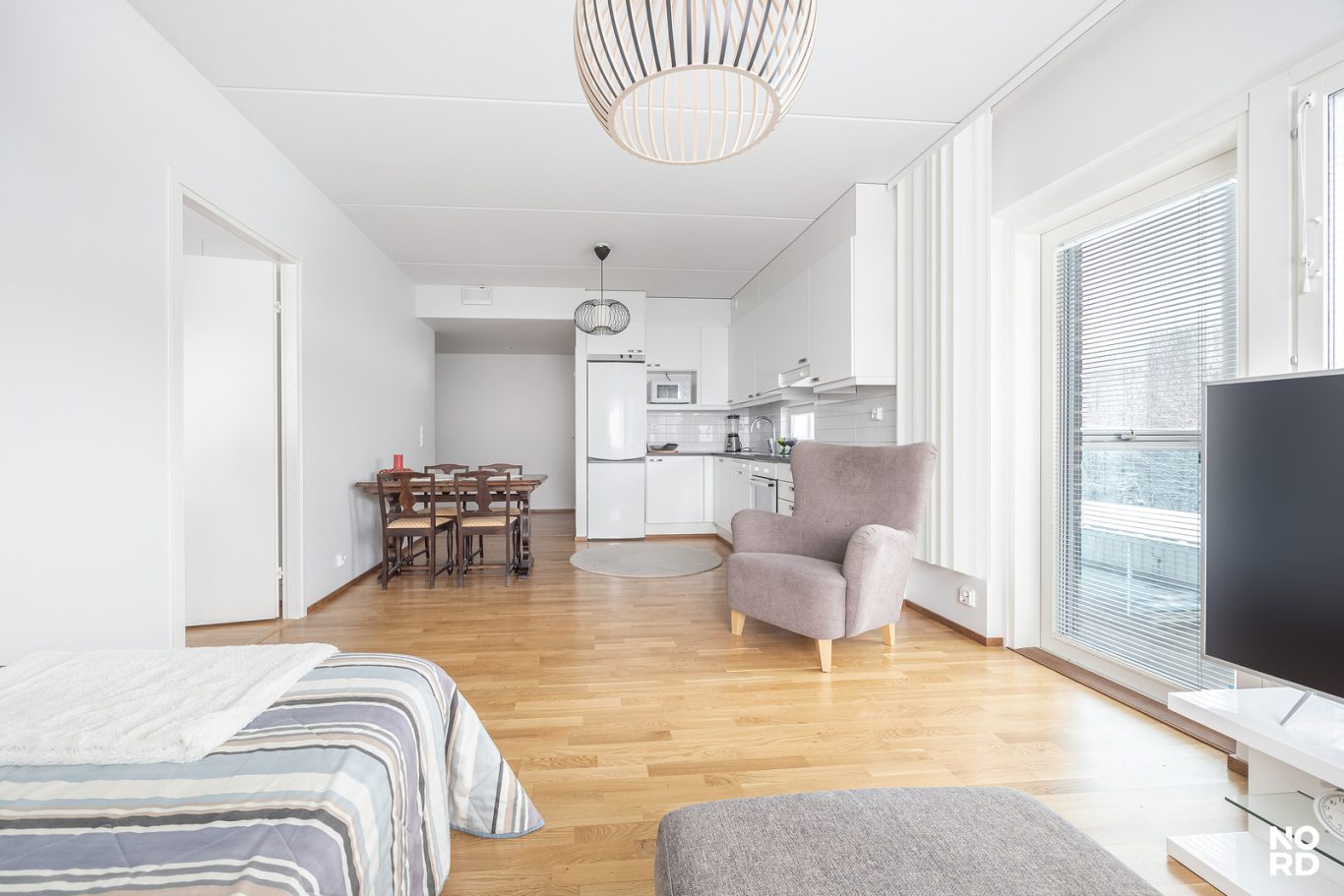 Oleskelutilat ja parveke Kodin sydän on Novartin keittiön ja olohuoneen muodostama yhtenäinen ja valoisa tila. Suuret ikkunat avautuvat itään ja etelään. Oleskelutilat jatkuvat luontevasti isolle lasitetulle parvekkeelle. Asuintilojen lattiat ovat kauttaaltaan tammiparkettia. Huoneistossa on hyvänkokoinen makuuhuone sekä vaatehuone uuden omistajan tavaransäilytykseen. Kokonaisuuden täydentää moderni kylpyhuone.