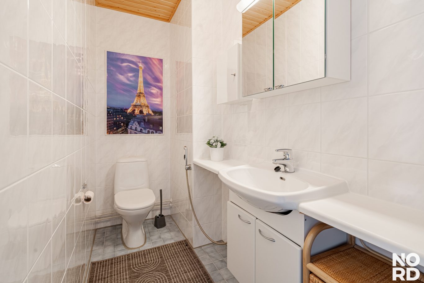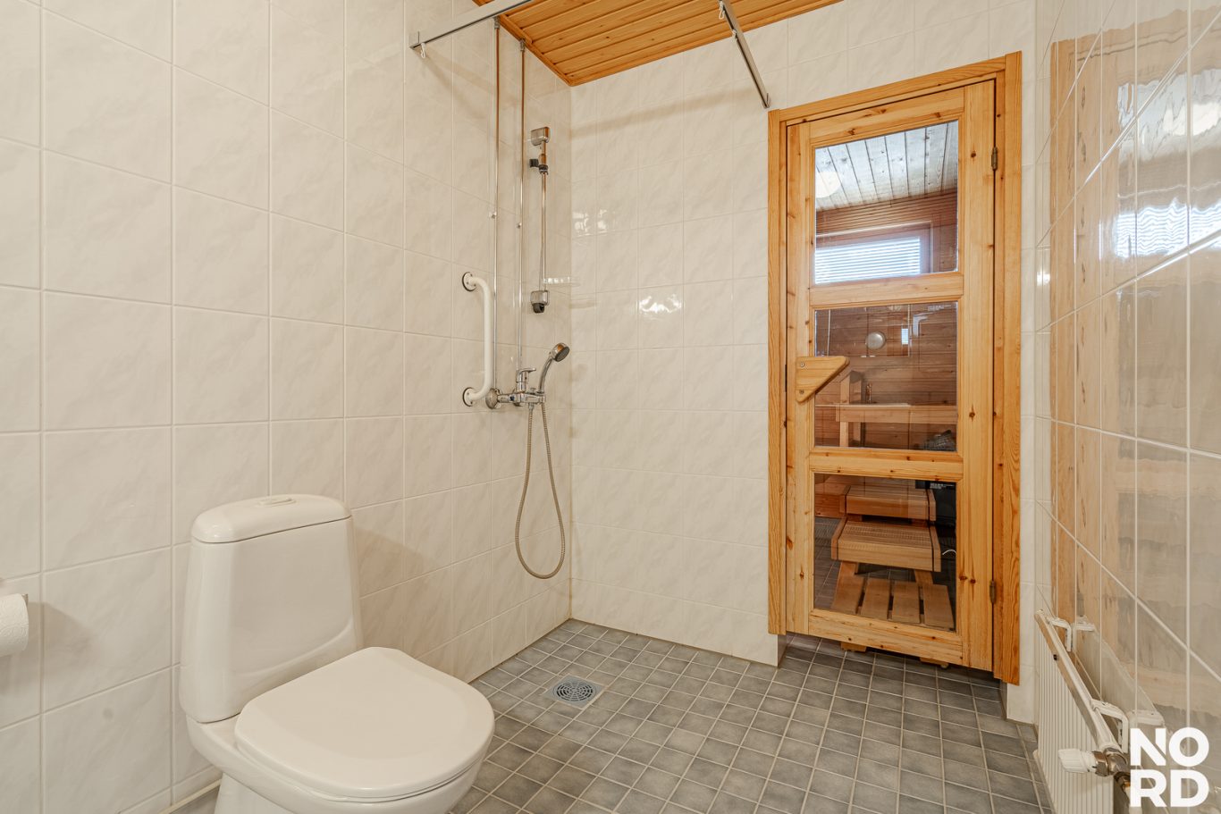 Käytännöllisyyttä lisää erillinen wc kylpyhuoneen wc:n lisäksi. Säilytystilaa on runsaasti: vaatehuone, kaapistot eteisessä ja makuuhuoneissa sekä irtaimistovarasto.