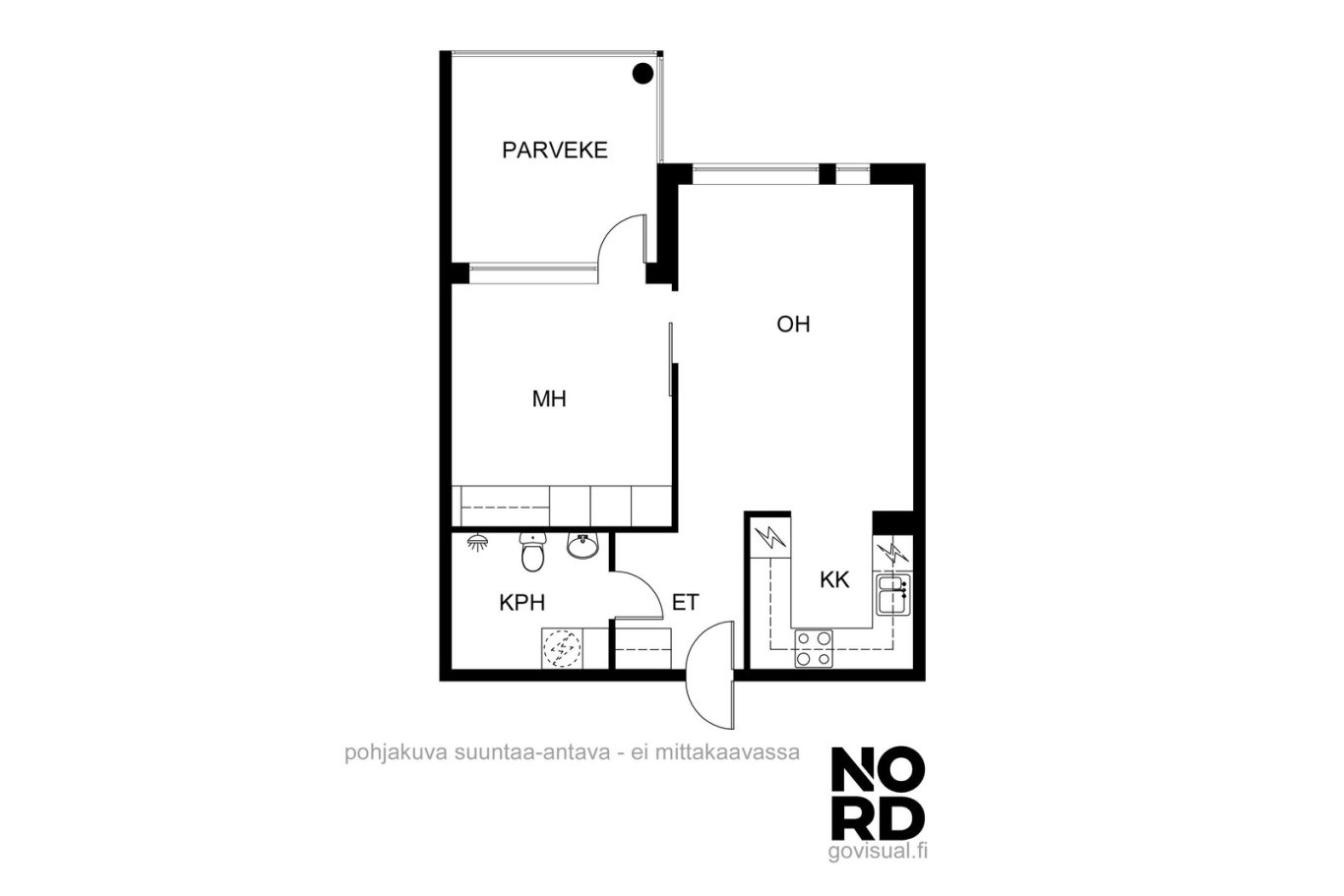 | Huoneistoselitelmä | 2h+kk+kph/wc+lasitettu parveke (yj:n mukaan 2h+kk) |