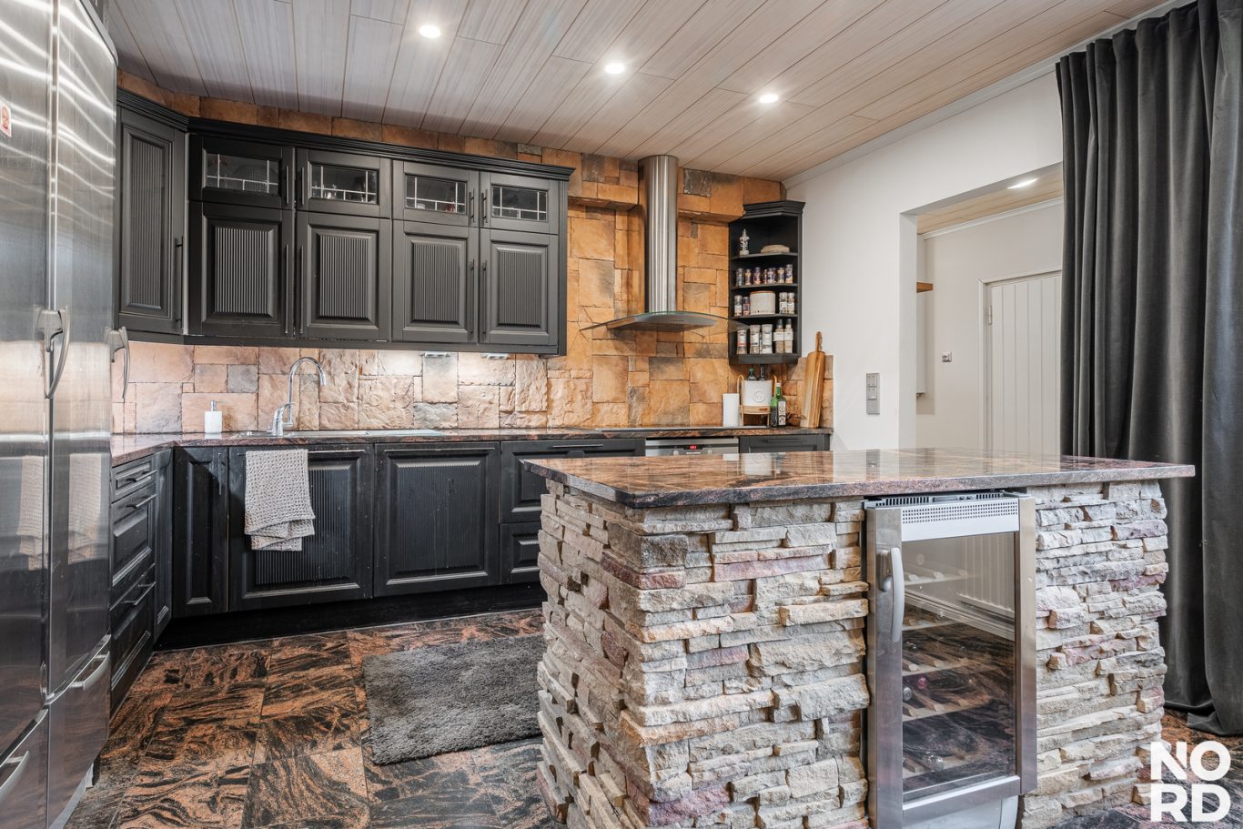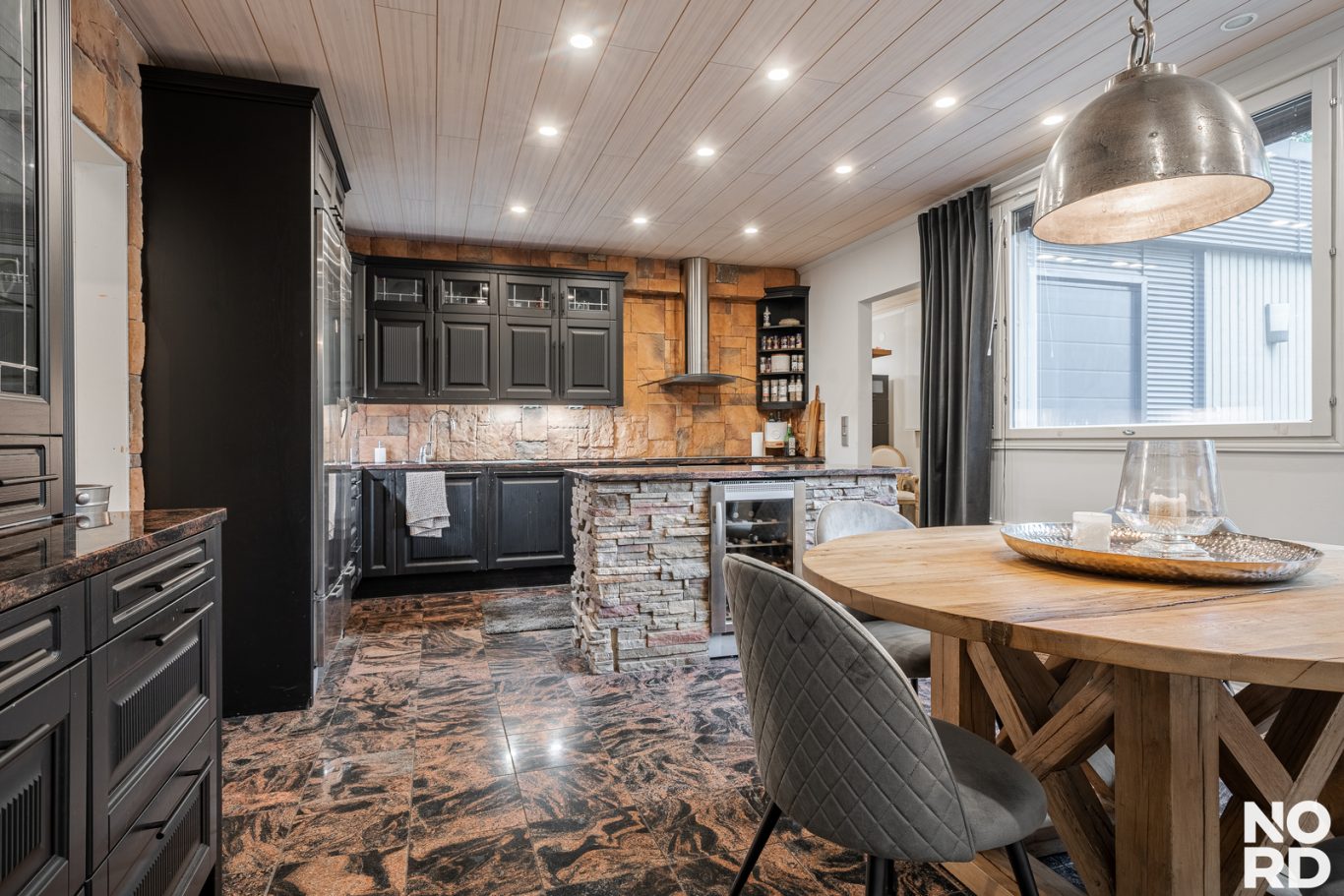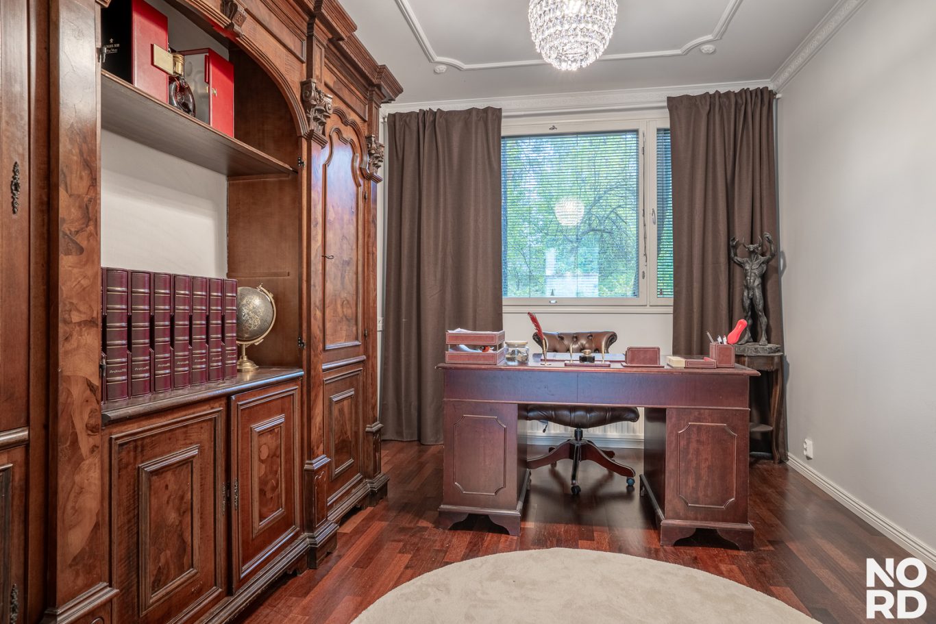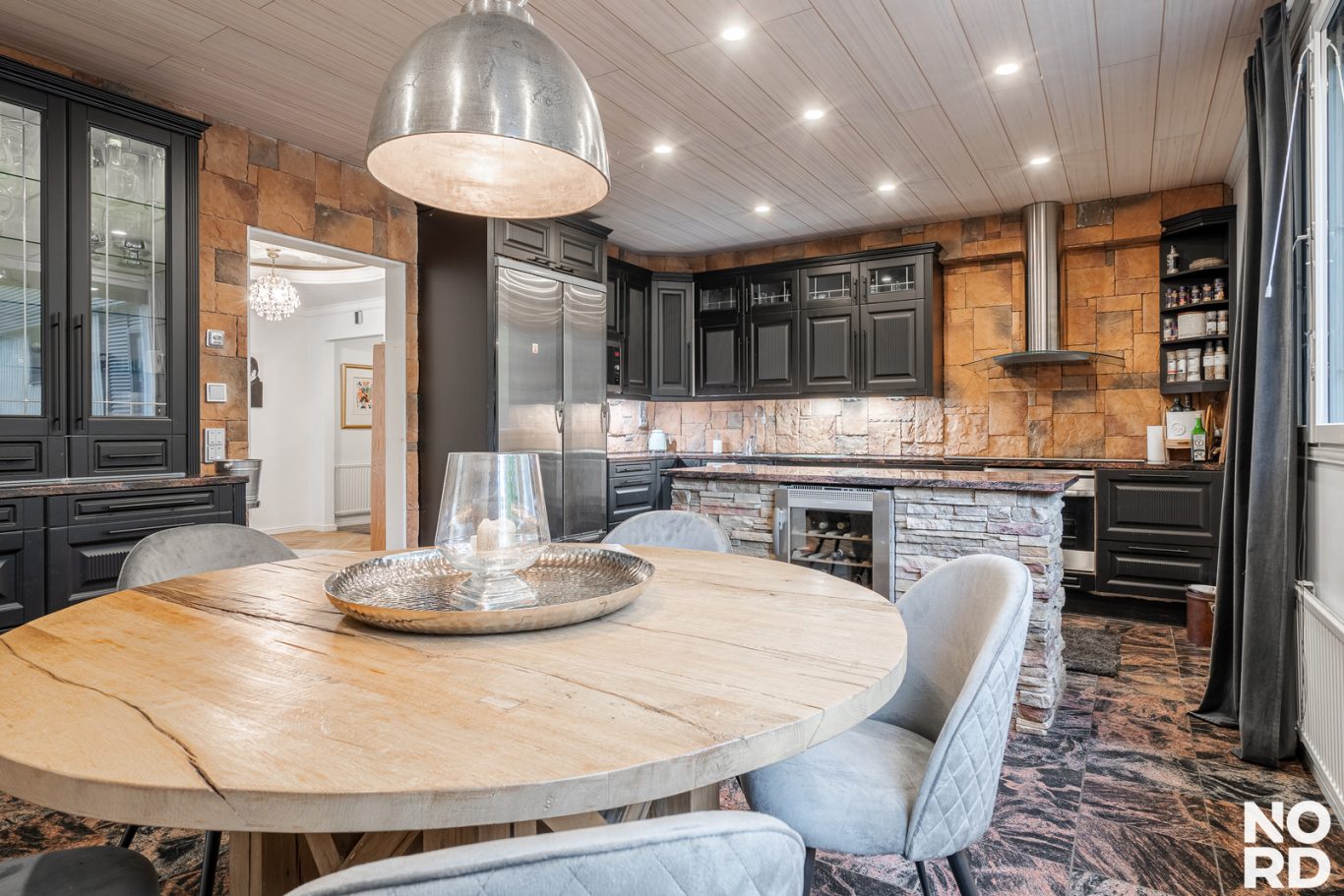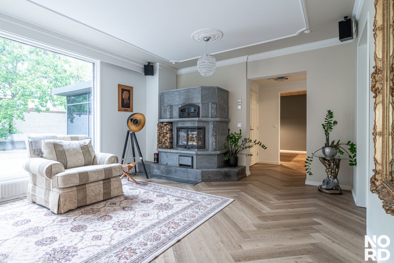 | Tilojen kuvaus | Todella tilava takkahuone. Arkiolohuoneen yhteydessä on vanhan uima-altaan tilassa viinikellari. |
