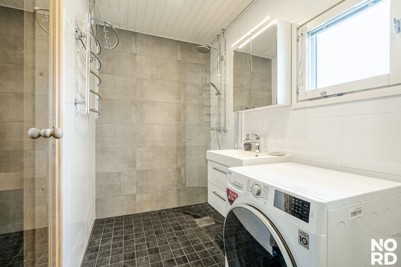 Erillinen wc pelastaa kiireisen arjen ja hyvän kokoinen tuulikaappi ilahduttaa varsinkin lapisiperhettä.