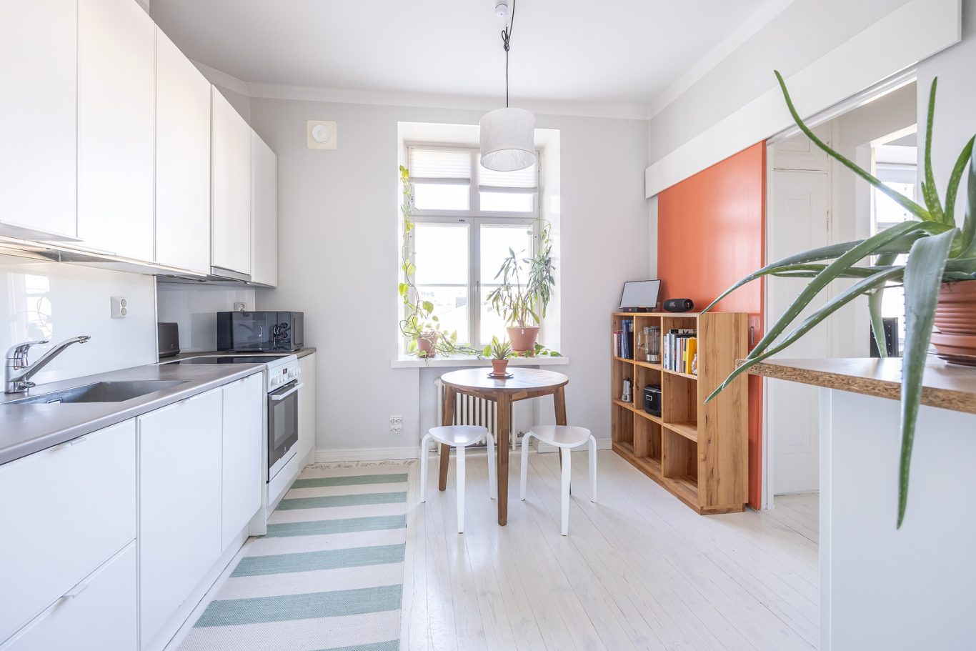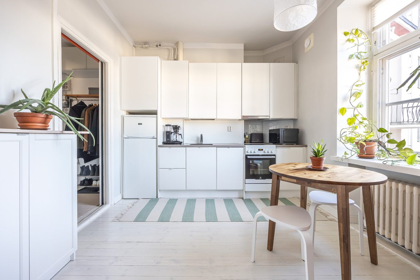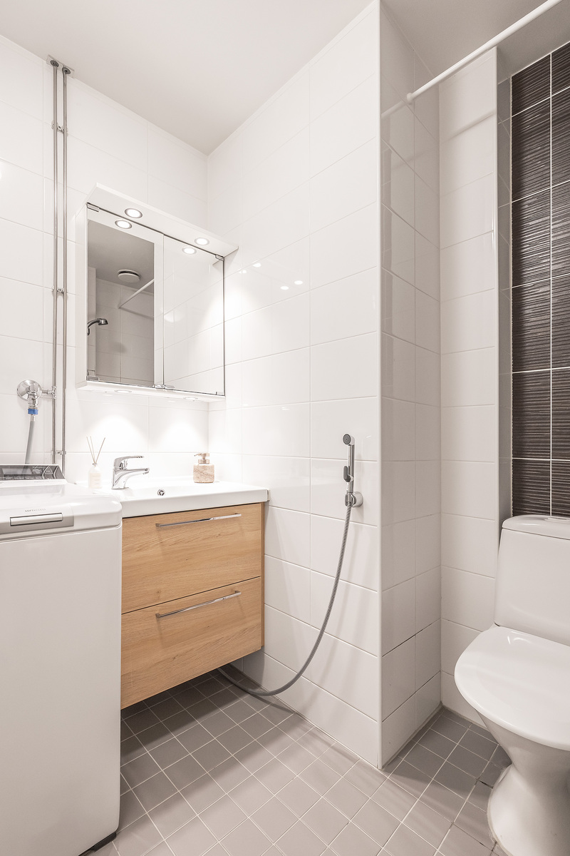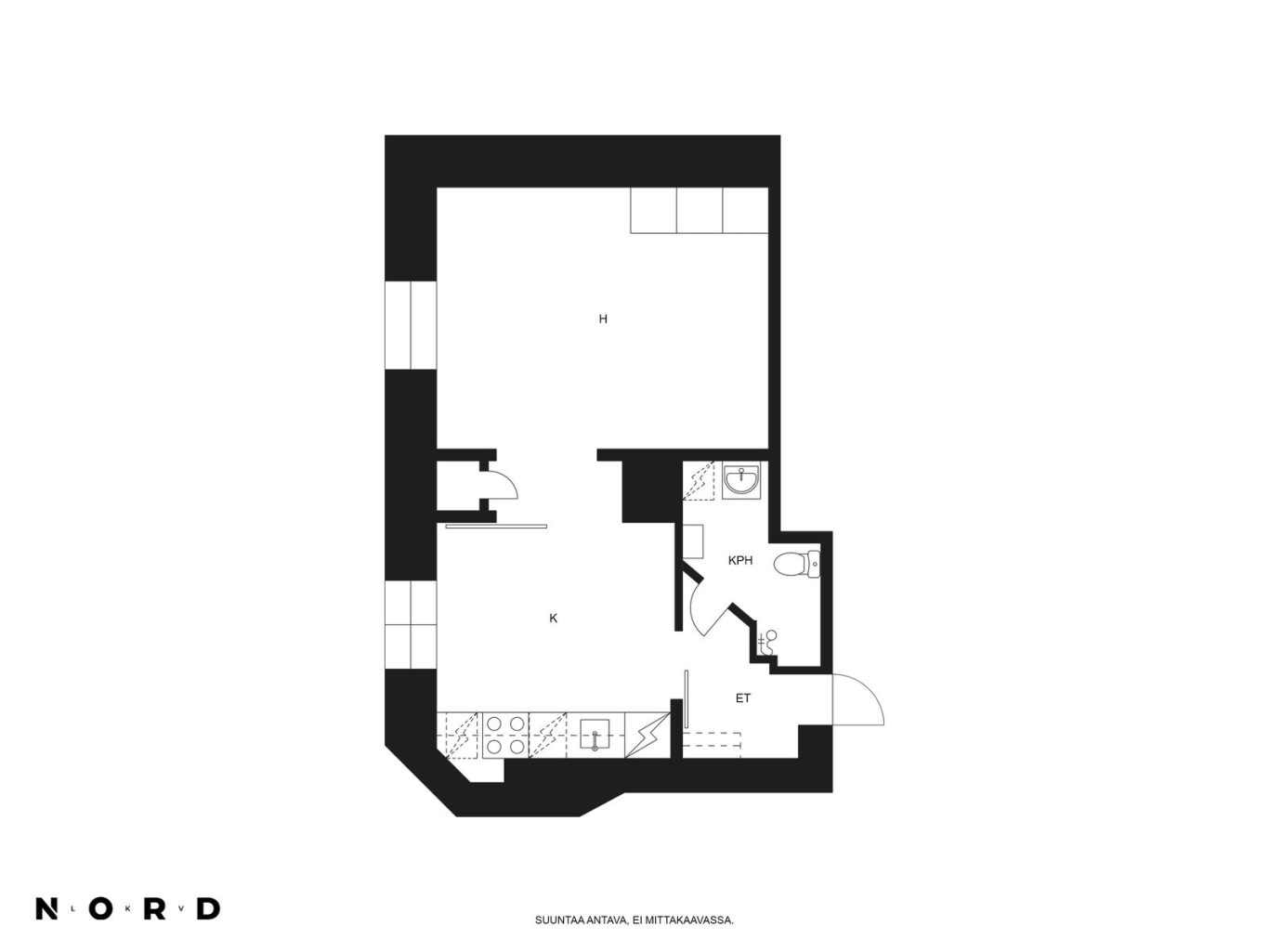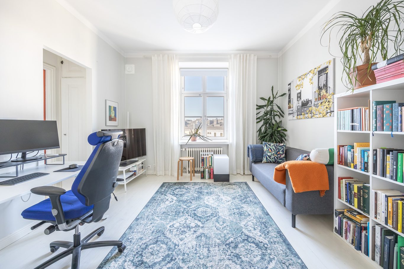 Asunto on huonekorkeuden ja avaran pohjaratkaisun ansiosta tilavan tuntuinen ja toimiva. Asunnon keskipiste on ilmava ja valoisa olohuoneen sekä makuuhuoneen yhdistelmä, jossa on reilusti tilaa viihtymiseen. Keittiö on tyylikkäästi remontoitu ja se on kattavasti varusteltu. Valoa tilaan tuo iso ikkuna, jonka edustalle mahtuu hyvin ruokapöytä. Kokonaisuuden kruunaa tyylikkäästi toteutettu kylpyhuone jossa on paikka myös pesukoneelle.