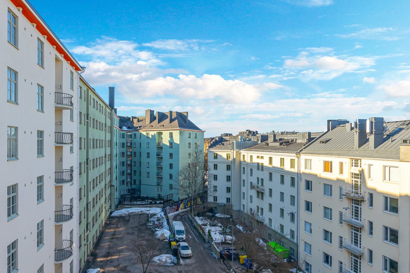 Pengerpuisto ja Torkkelinpuistikko ovat aivan asunnon vieressä. Alue tarjoaa paljon mahdollisuuksia vapaa-ajan viettoon ja kaikki Kallion ja Hakaniemen kattavat palvelut ovat kävelyetäisyydellä. Sörnäisten metroasemalle on myös lyhyt kävelymatka ja raitiovaunupysäkit ovat lähellä.