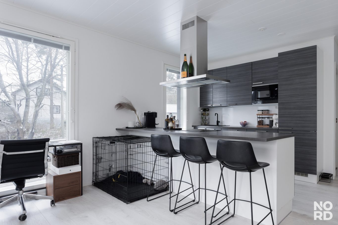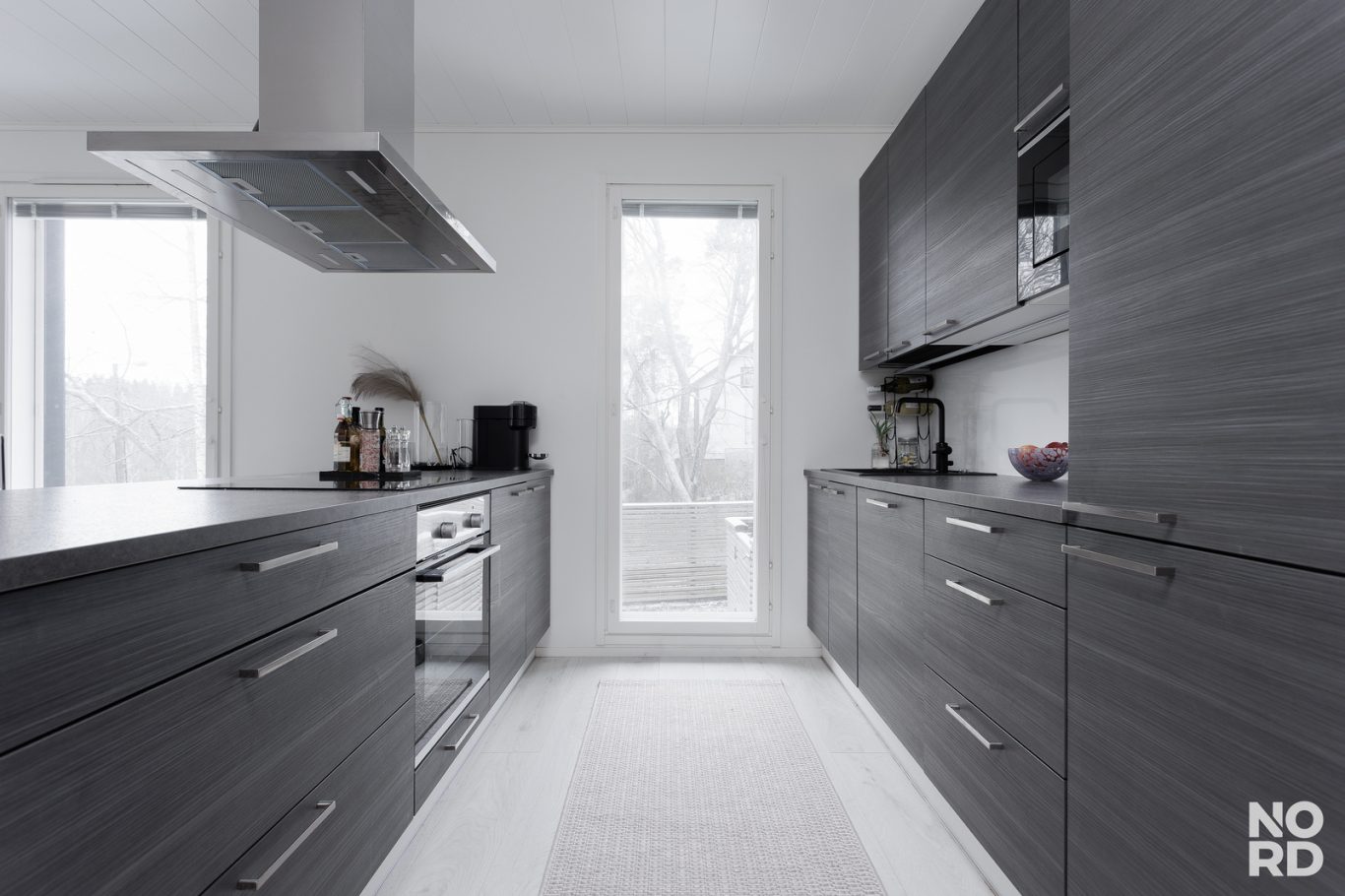 Keittiössä Puustellin kaapistot, erillisuuni ja induktioliesi.