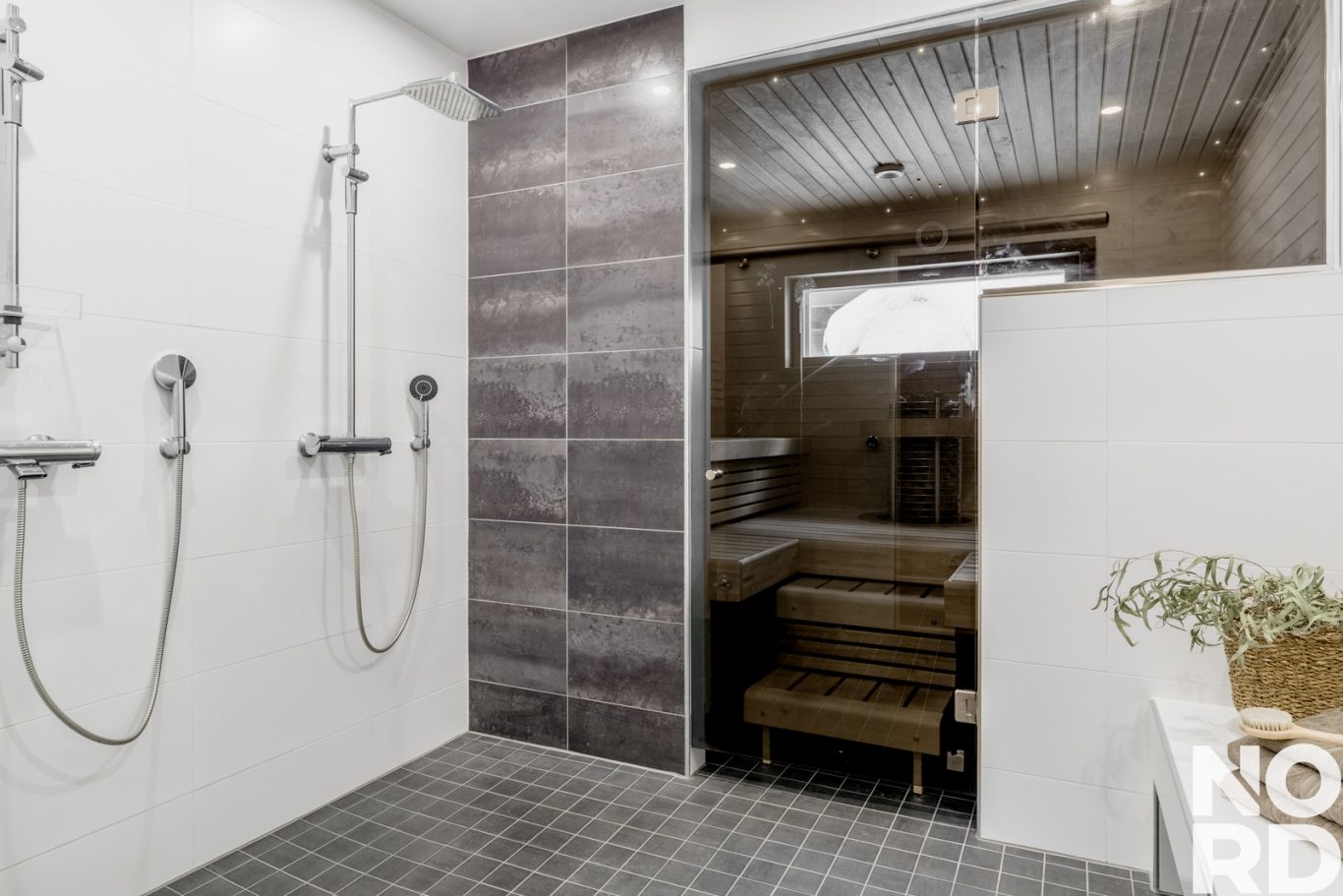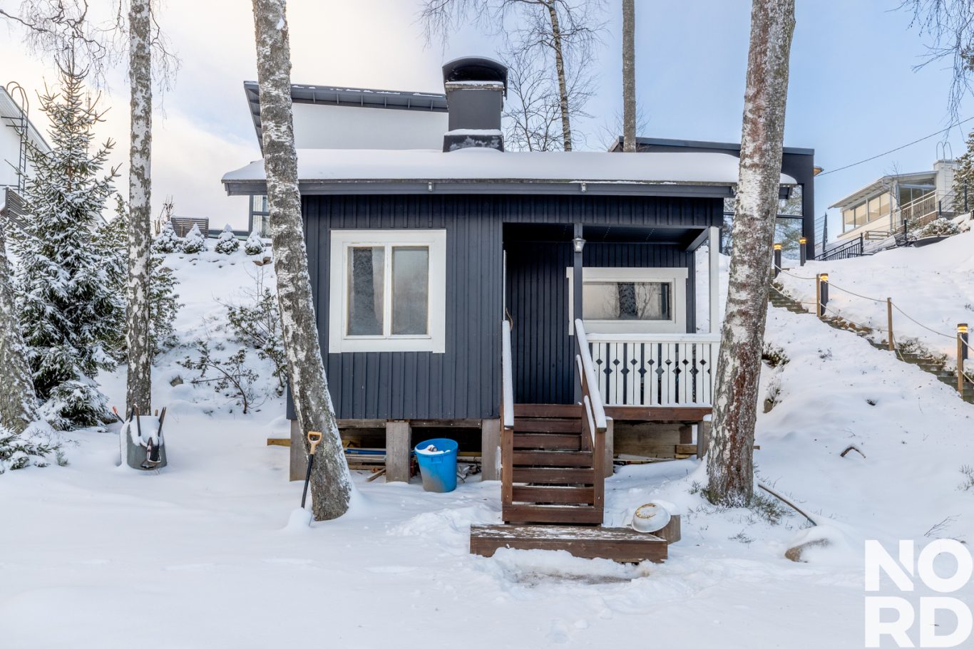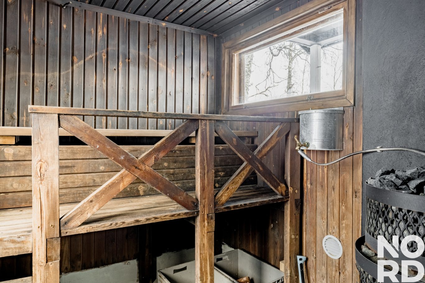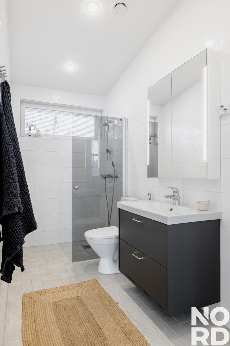 Alakerrasta löytyy 2 makuuhuonetta, tilava kodinhoitohuone ja kuraeteinen sekä sauna, kylpyhuone, erillinen wc ja tekninen tila. Pääset oman kodin saunasta lampeen uimaan vaikka joka päivä. Lisäksi rannassa sijaitsee yhteiskäytössä oleva tunnelmallinen saunarakennus.