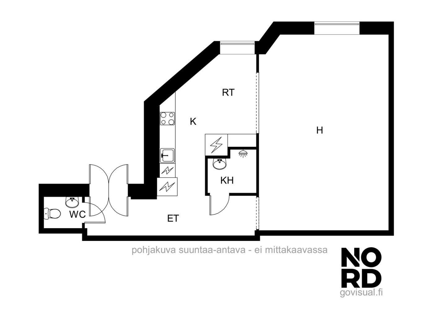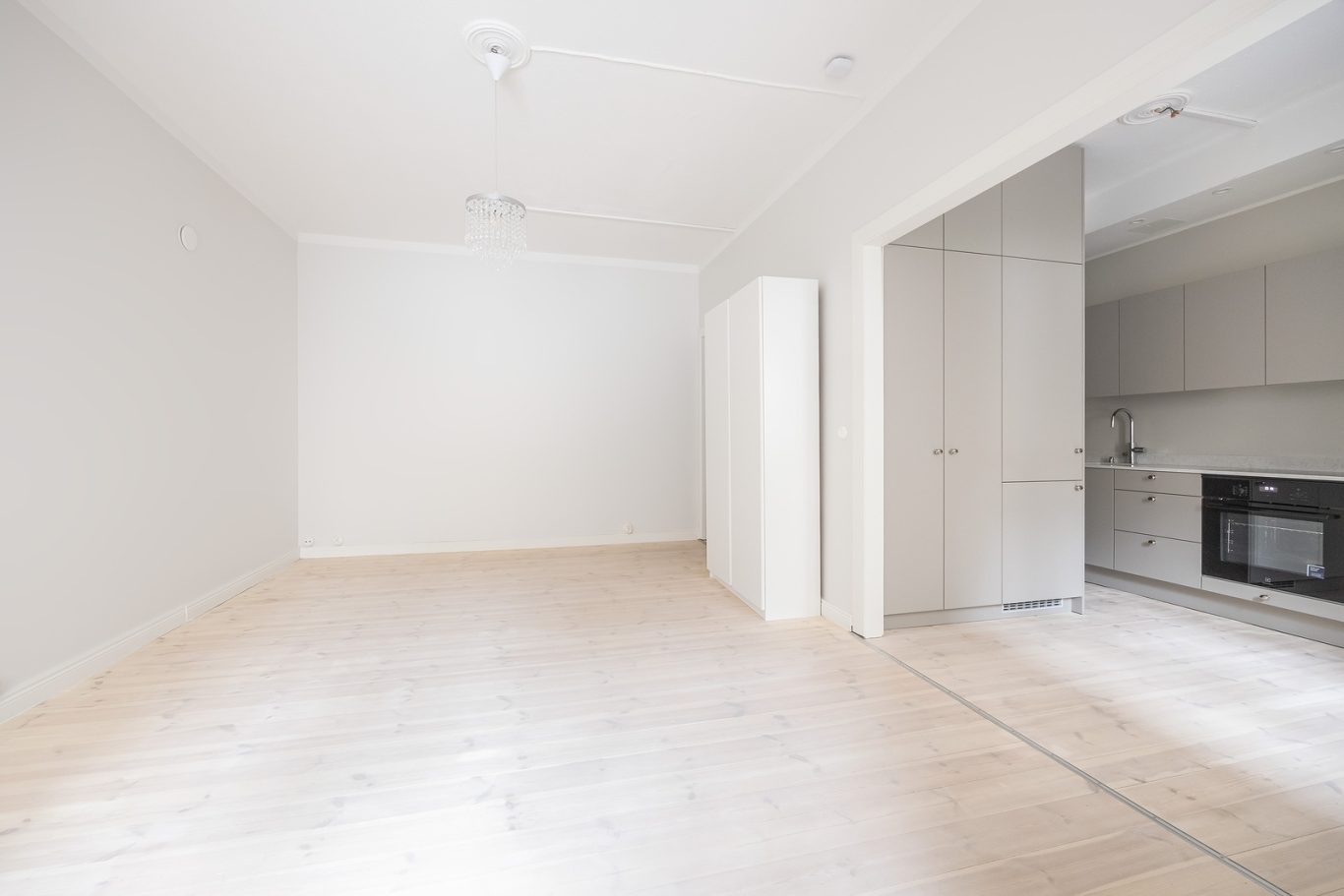 Tilavaan yksiöön mahtuu pariskuntakin mainiosti, pohjakerros.