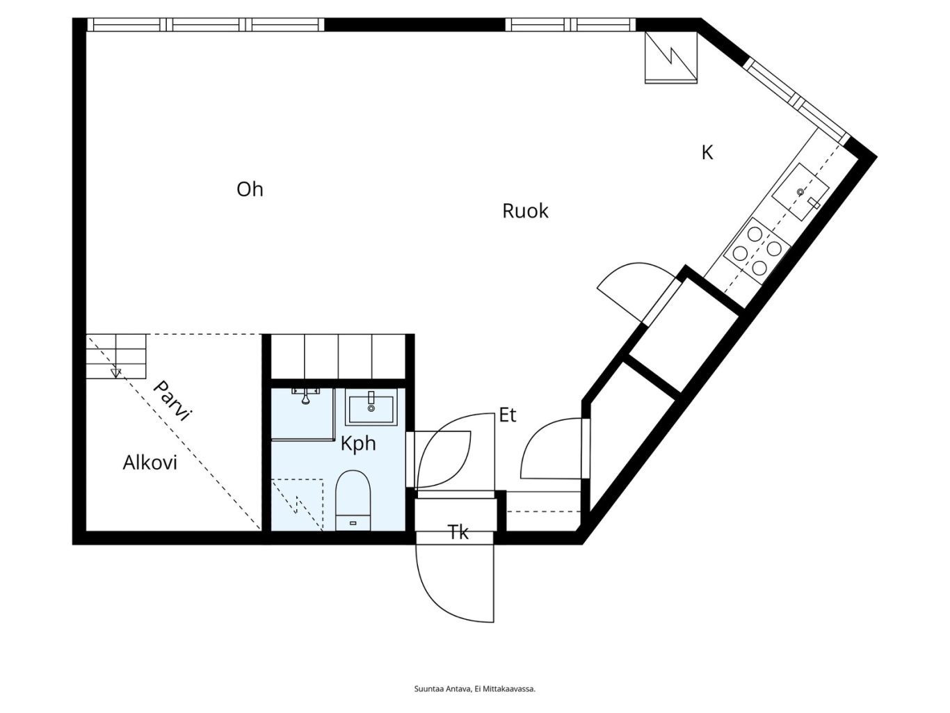 | Huoneistoselitelmä | 1h,k, makuualkovi, kph/wc |