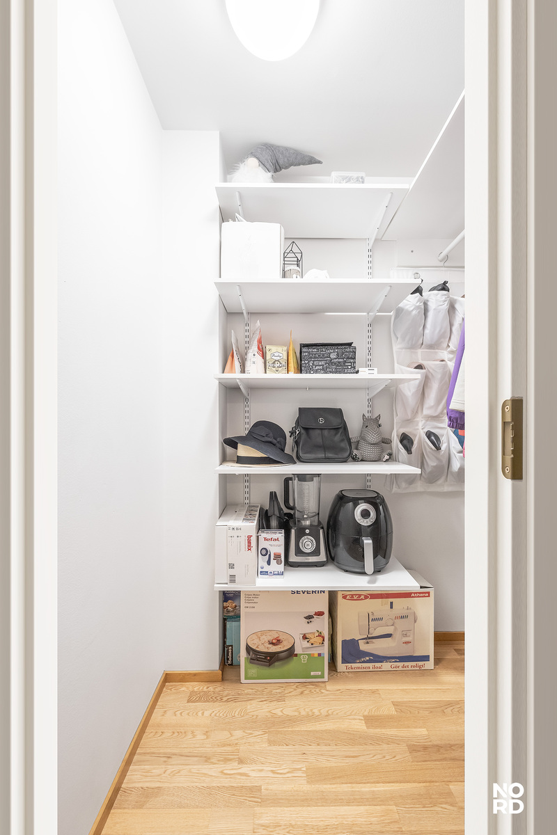 | Säilytystilojen kuvaus ja lisätiedot | Vaatehuone ja kaapistot ja irtaimistokomero |