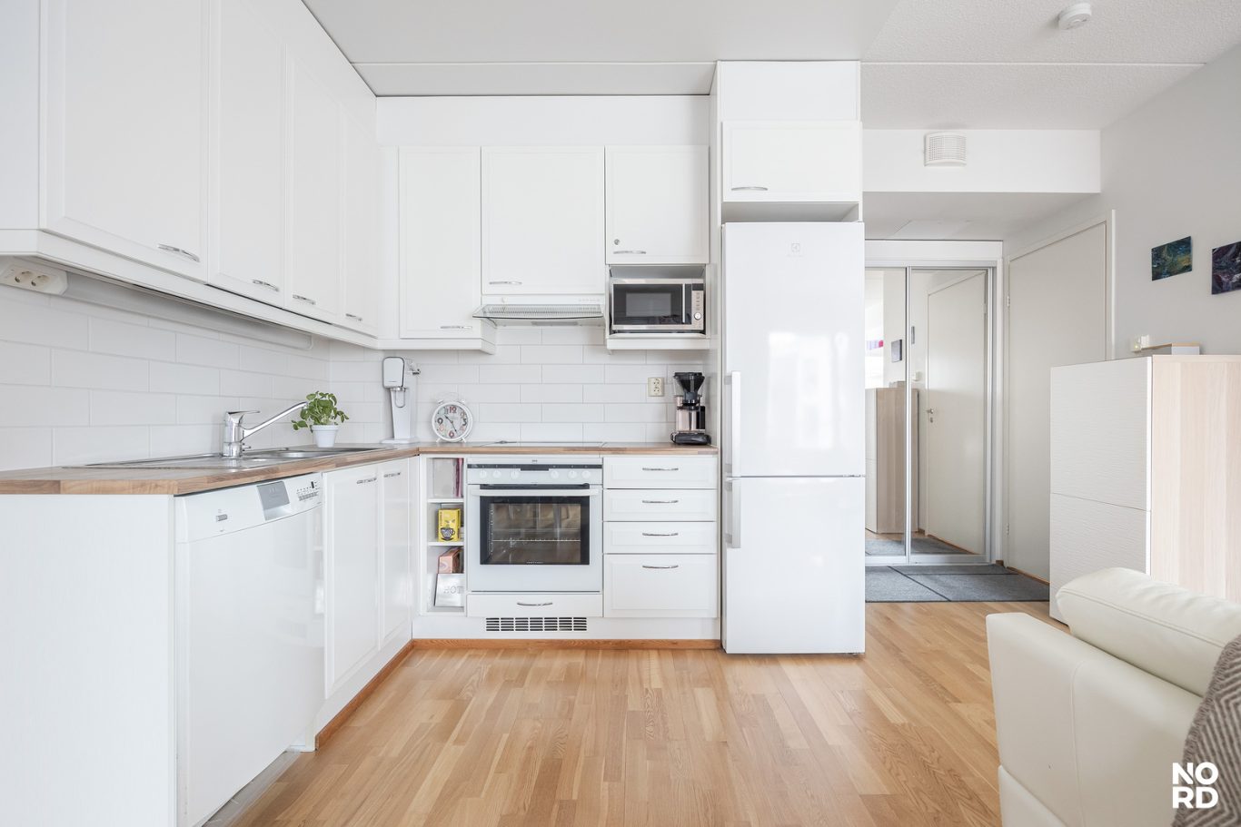 Tämä viidennen kerroksen kaksio tarjoaa omaa rauhaa ja avaria näkymiä Leppävaaran palveluiden äärellä. Asunnon ikkunoista ja suurelta lasitetulta parvekkeelta avautuu miellyttävä maisema taloyhtiön suojaisalle (ja kesällä vehreälle) sisäpihalle. Kodin pohjaratkaisu on erinomainen: tyylikäs avokeittiö yhdistyy saumattomasti olohuoneeseen, makuuhuone on ideaalin kokoinen ja kylpyhuone on moderni. Uusi omistaja pääsee nauttimaan löylyt omassa saunassa ja lasitettu parveke on erinomainen ajanviettopaikka.