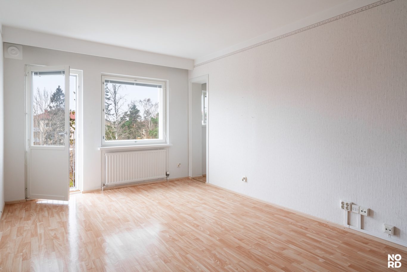 Tilava yksiö ranskalaisella parvekkeella ja alkovilla. Huoneesta avautuu vapaa näkymä etelään.