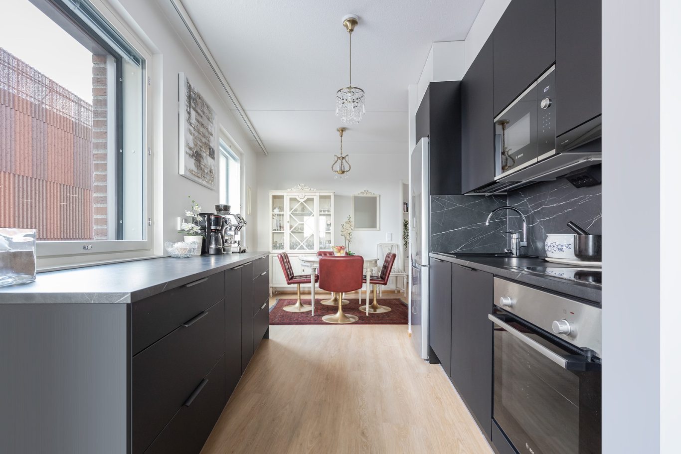 Hyvällä ja toimivalla pohjaratkaisulla varustettu koti. Laadukkaat uudenveroiset materiaalit. Tilava olohuone, josta kulku lasitetulle parvekkeelle. Tyylikäs ja laadukas keittiö kahdella seinustalla, sekä ikkunalla. Sopivan kokoiset makuuhuoneet. Modernit pesutilat sekä erillinen wc. Hyvin säilytystilaa asunnon kaapistoissa. Mahdollisuus ostaa asunnon yhteydessä autohallipaikka viereisestä pysäköintihallista hintaan 22 000e.