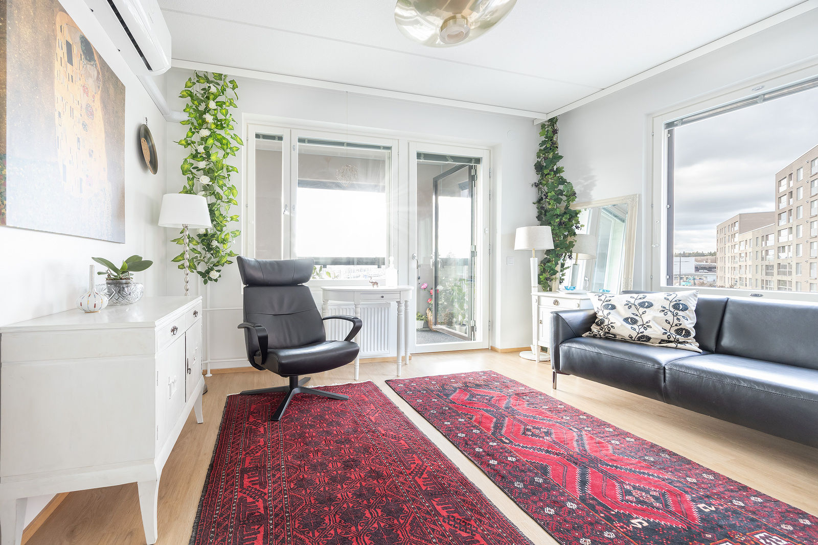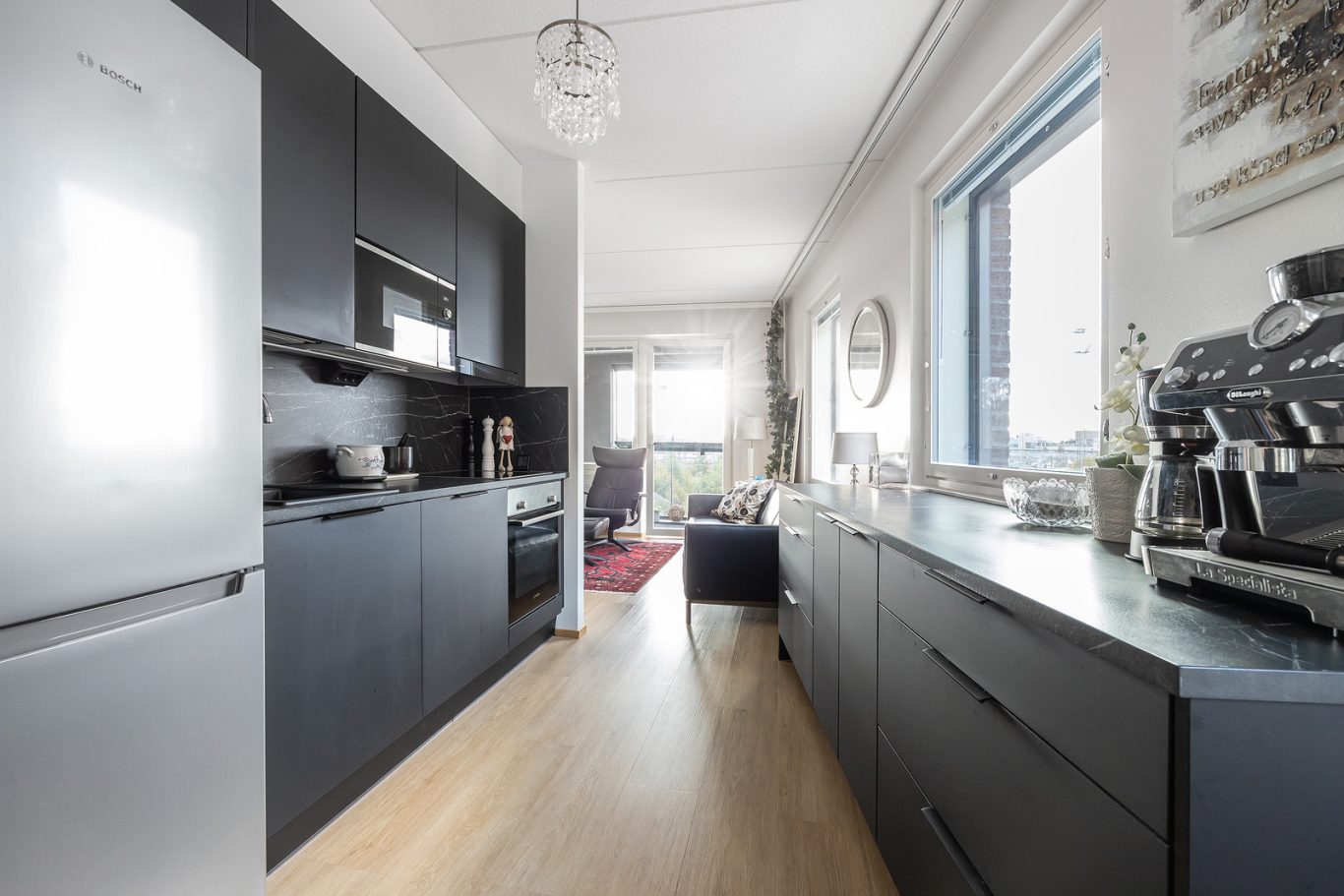 Kaunis ja moderni kulmahuoneisto! Kahteen suuntaan olohuoneessa avautuvat ikkunat tuovat runsaasti valoa kotiin. Upeat kauaskantoiset maisemat aina Triplaan asti! Uudehko v. 2023 valmistunut taloyhtiö. Asuntokohtainen tonttiosuus lunastettu omaksi! Ilmalämpöpumppu löytyy!