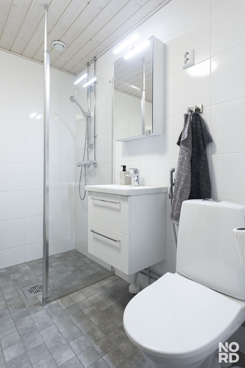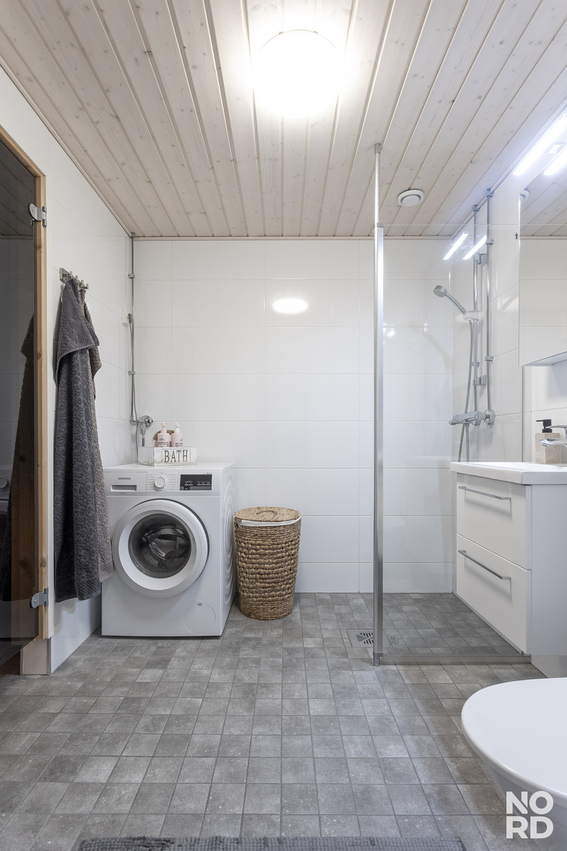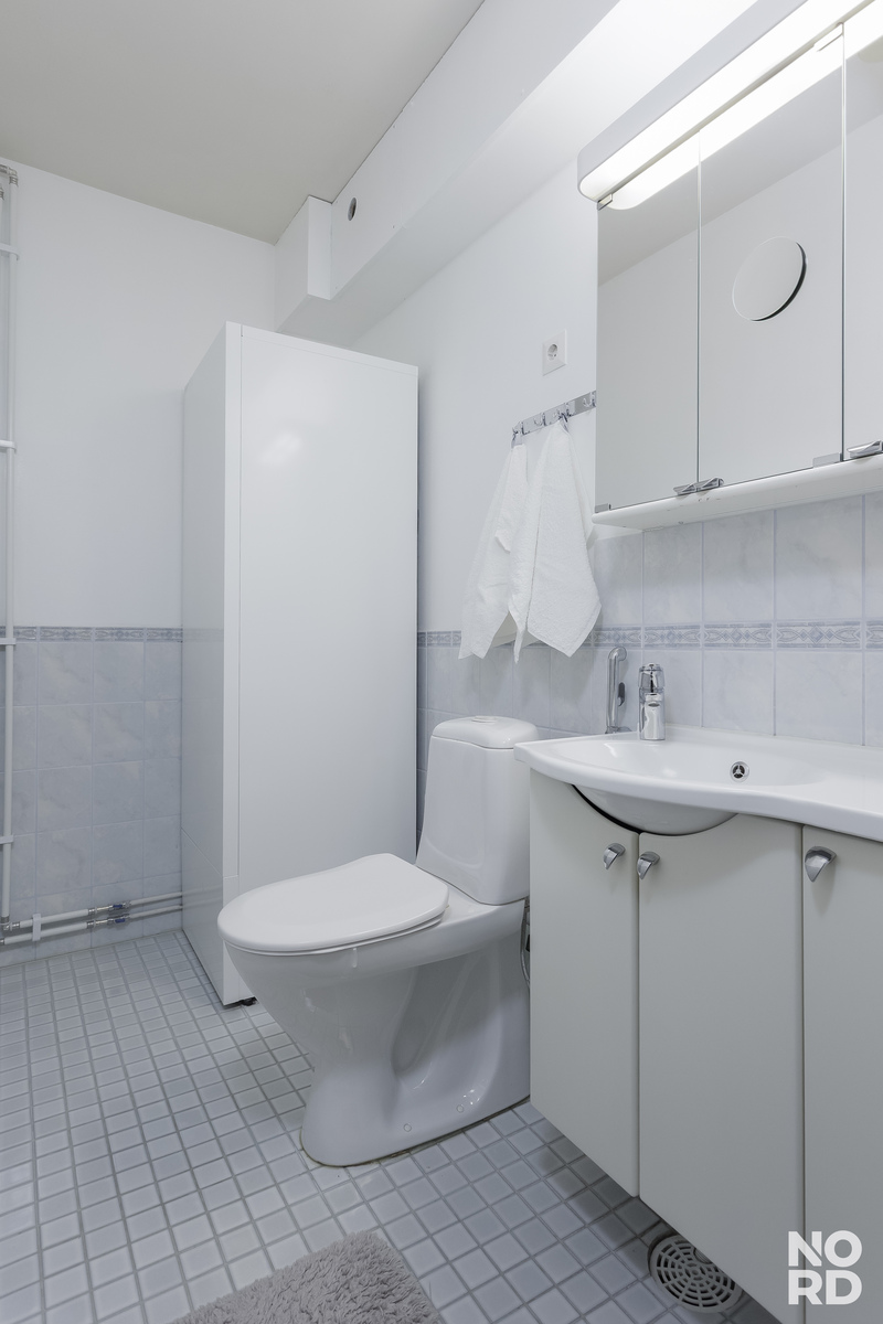 Arkea helpottavat erillinen wc ja tilava, vuonna 2021 saneerattu kylpyhuone. Kokonaisuuden täydentää oma sauna, jossa on mukava rentoutua työpäivän tai liikunnan jälkeen. Ilmalämpöpumppu säästää asumiskustannuksia ja viilentää kesähelteillä. Päiväkoti ja ruokakaupat löytyvät läheltä ja koulu on reilun kilometrin päässä. Ainolan asemalle 10 minuutin kävelymatka.
