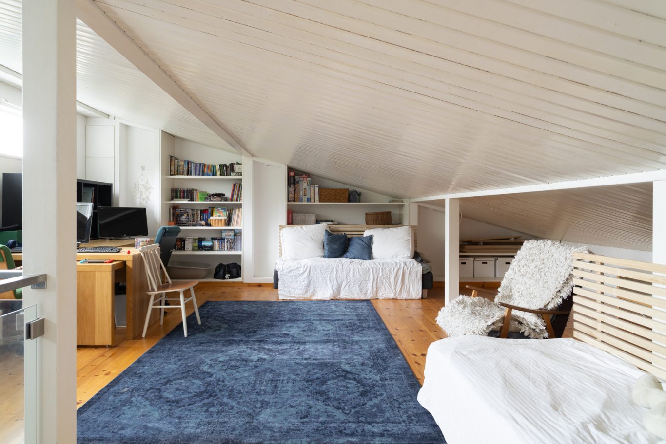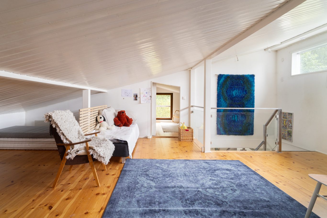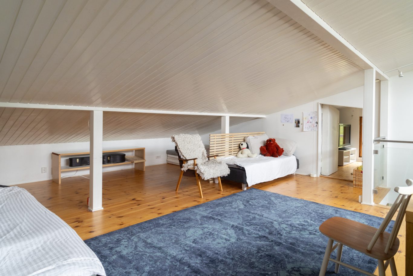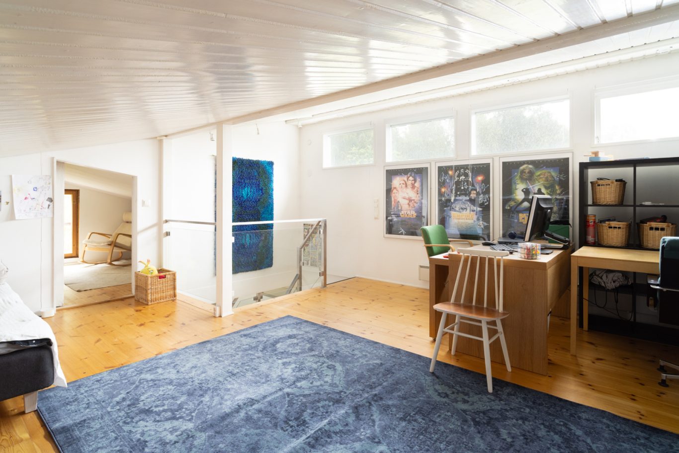 Alakerrasta löytyy yksi makuuhuone, työhuone, viihtyisä takkahuone, olohuone sekä kaksi kylpyhuonetta, jotka tuovat arkeen sujuvuutta. Yläkerrassa avautuu iso avoin tila, jota voi hyödyntää monipuolisesti esimerkiksi makuuhuoneena ja oleskelu- tai harrastetilana. Lisäksi käytössä on runsaasti varastotilaa.