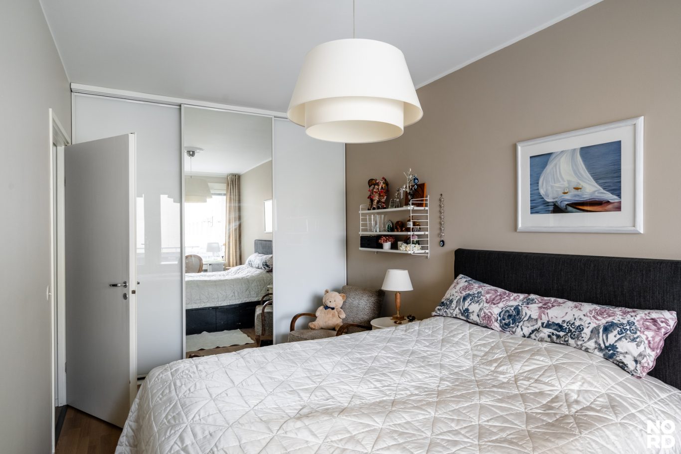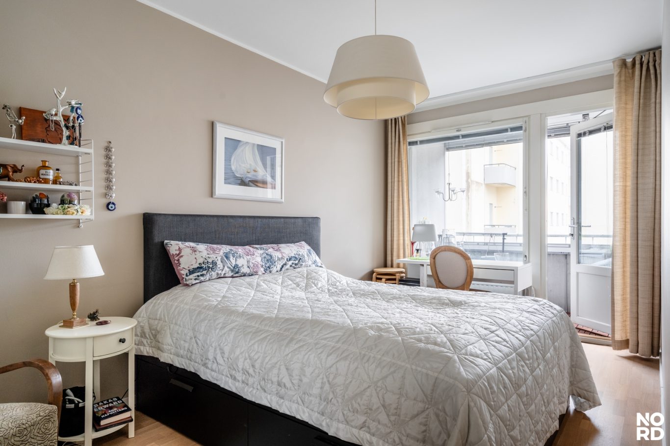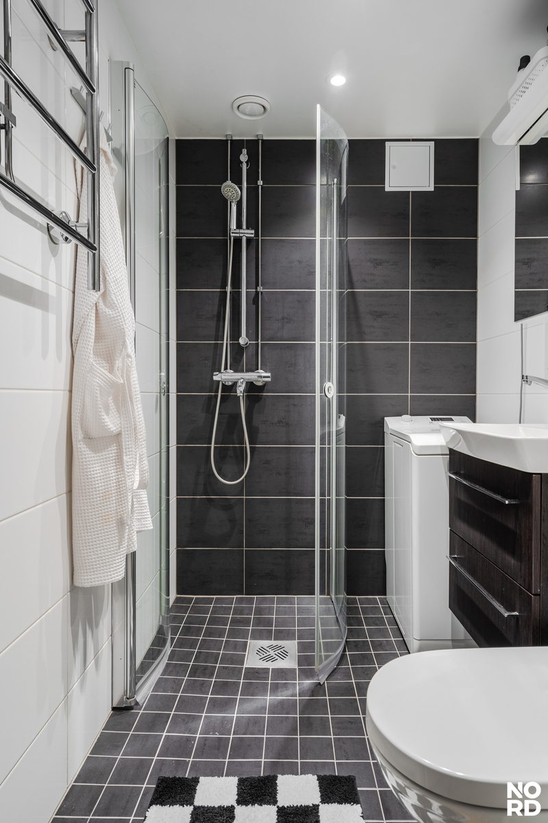 Kokonaisuus on harmoninen ja ajattoman tyylikäs. Eteisestä kuljetaan moderniin kylpyhuoneeseen, jossa on seinä-wc ja hyvin tilaa pyykinpesukoneelle. Tilava makuuhuone tarjoaa erinomaiset säilytystilatliukuovikaapistossa, ja ikkunan ääreen on helppo sijoittaa esimerkiksi työpiste. Huoneesta on myös käynti lasitetulle parvekkeelle, joka tuo lisätilaa ja viihtyvyyttä ympäri vuoden.