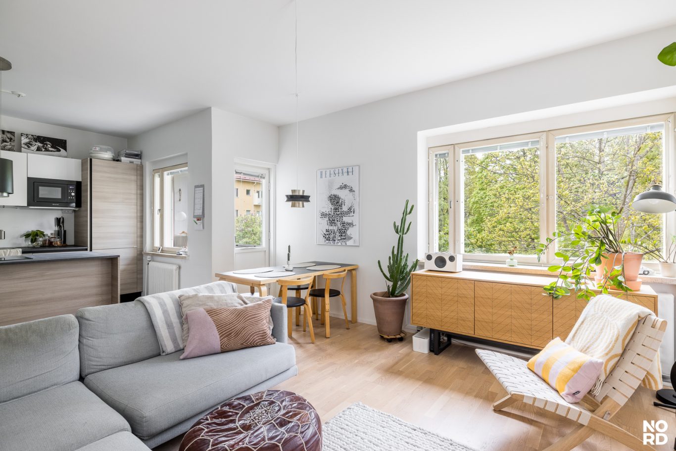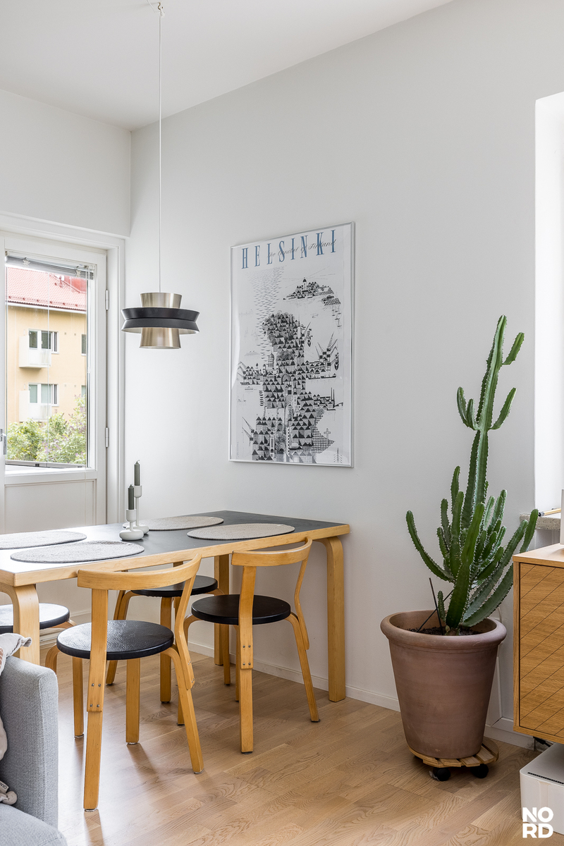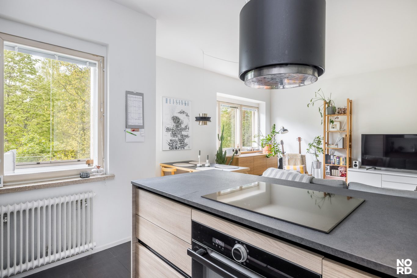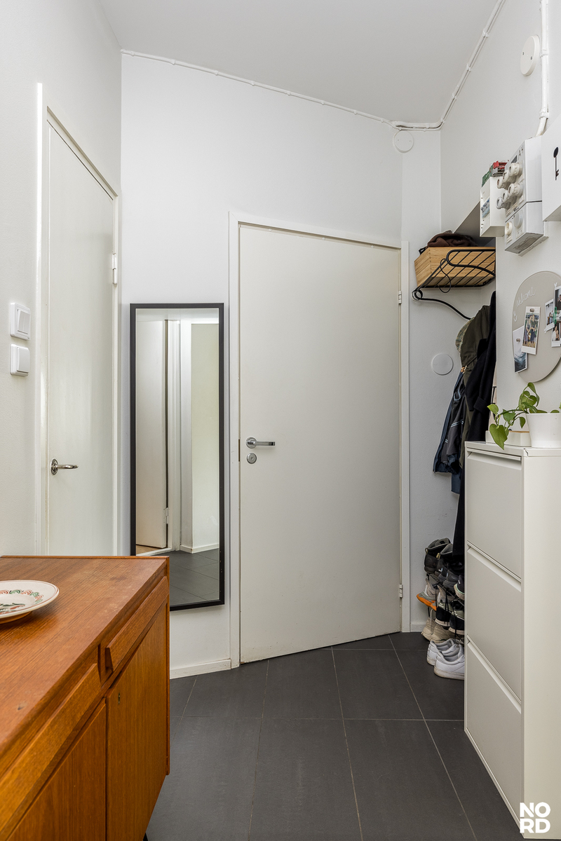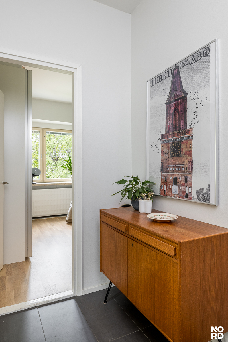 Tämä skandinaavisin sävyin, hyvällä maulla toteutettu koti on täysin muuttovalmis. Asunnon keskipiste on reilunkokoinen olohuoneen, avokeittiön ja ruokailutilan yhdistelmä, jossa riittää reilusti tilaa viihtymiseen. Olohuoneesta pääsee parvekkeelle, josta avautuu mahtavat, vehreät puistonäkymät etelän suuntaan. Tyylikkäässä avokeittiössä on niemekkeen lisäksi runsaasti kaappi- sekä laskutilaa ja valoa sinne tuo ikkuna. Keittiö on hyvin varusteltu ja sen edustalla on paikka ruokailuryhmälle. Säilytystilaa löytyy eteisen lisäksi reilusti makuuhuoneen kaapistoista ja kokonaisuuden kruunaa siistikuntoinen ja tilava kylpyhuone.