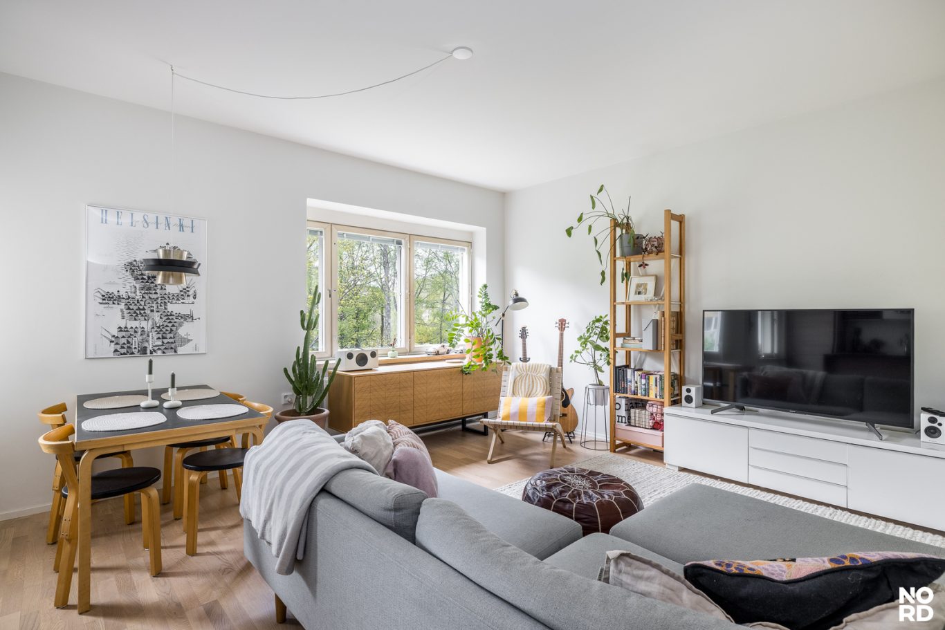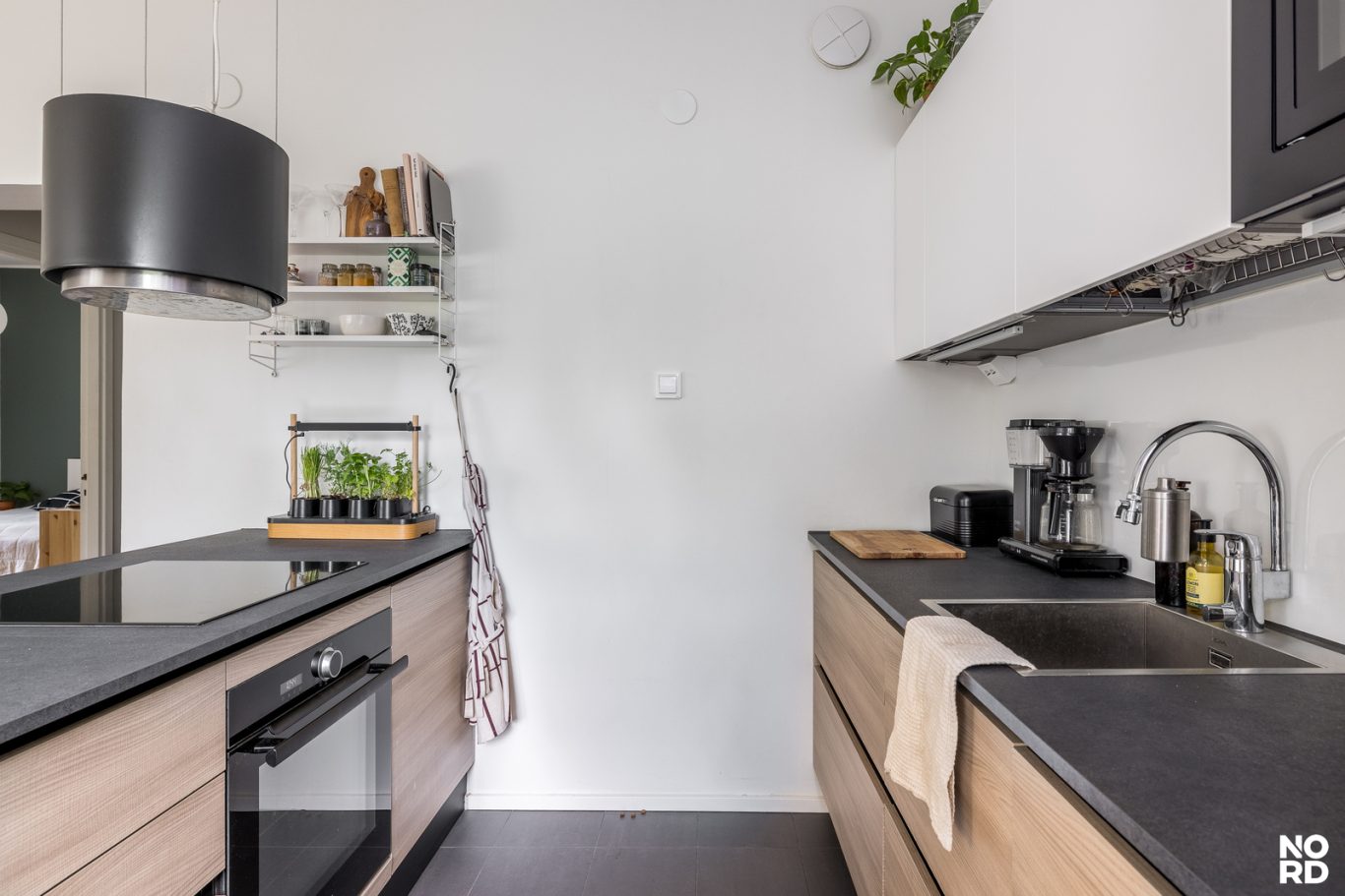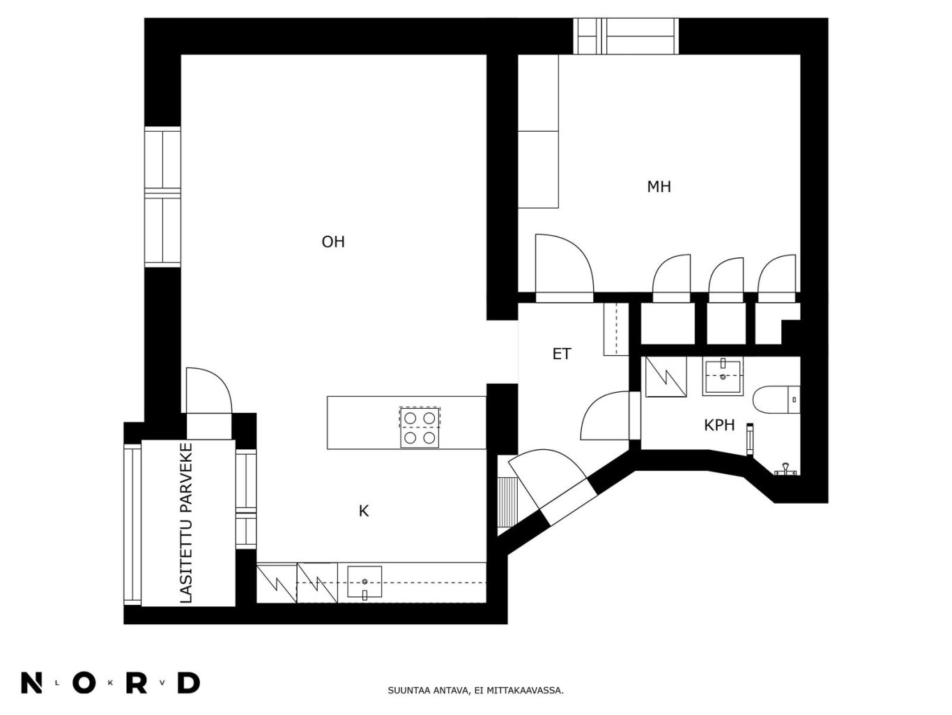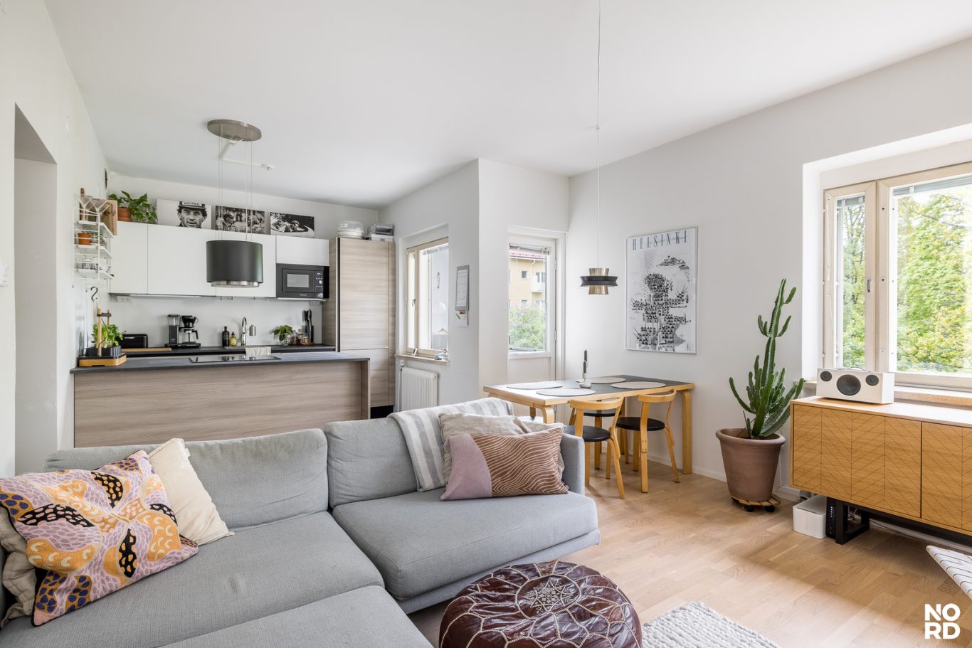 Tämä skandinaavisin sävyin, hyvällä maulla toteutettu koti on täysin muuttovalmis. Asunnon keskipiste on reilunkokoinen olohuoneen, avokeittiön ja ruokailutilan yhdistelmä, jossa riittää reilusti tilaa viihtymiseen. Olohuoneesta pääsee parvekkeelle, josta avautuu mahtavat, vehreät puistonäkymät etelän suuntaan. Tyylikkäässä avokeittiössä on niemekkeen lisäksi runsaasti kaappi- sekä laskutilaa ja valoa sinne tuo ikkuna. Keittiö on hyvin varusteltu ja sen edustalla on paikka ruokailuryhmälle. Säilytystilaa löytyy eteisen lisäksi reilusti makuuhuoneen kaapistoista ja kokonaisuuden kruunaa siistikuntoinen ja tilava kylpyhuone.