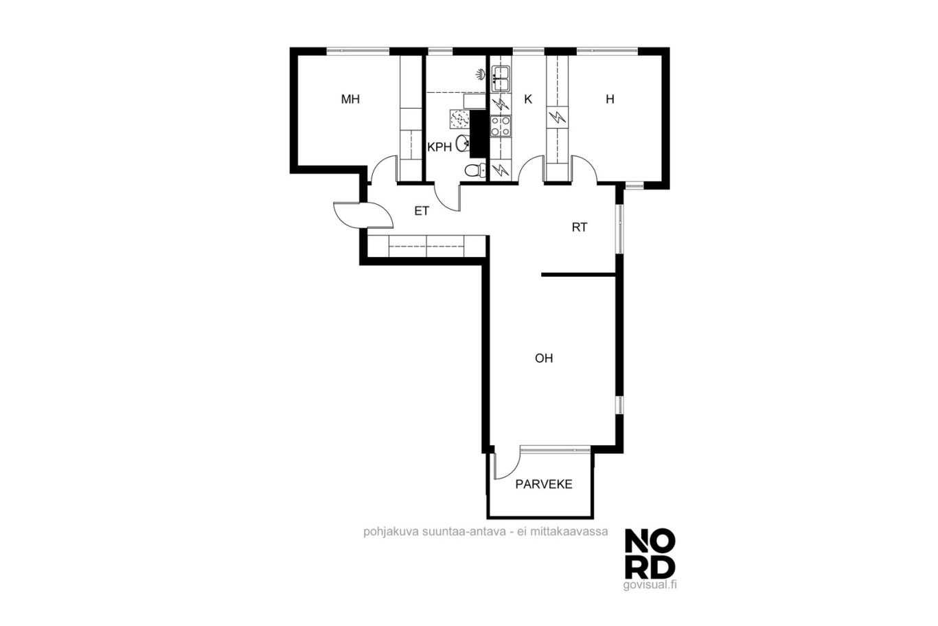 | Huoneistoselitelmä | 3h, k, kph, parveke |
