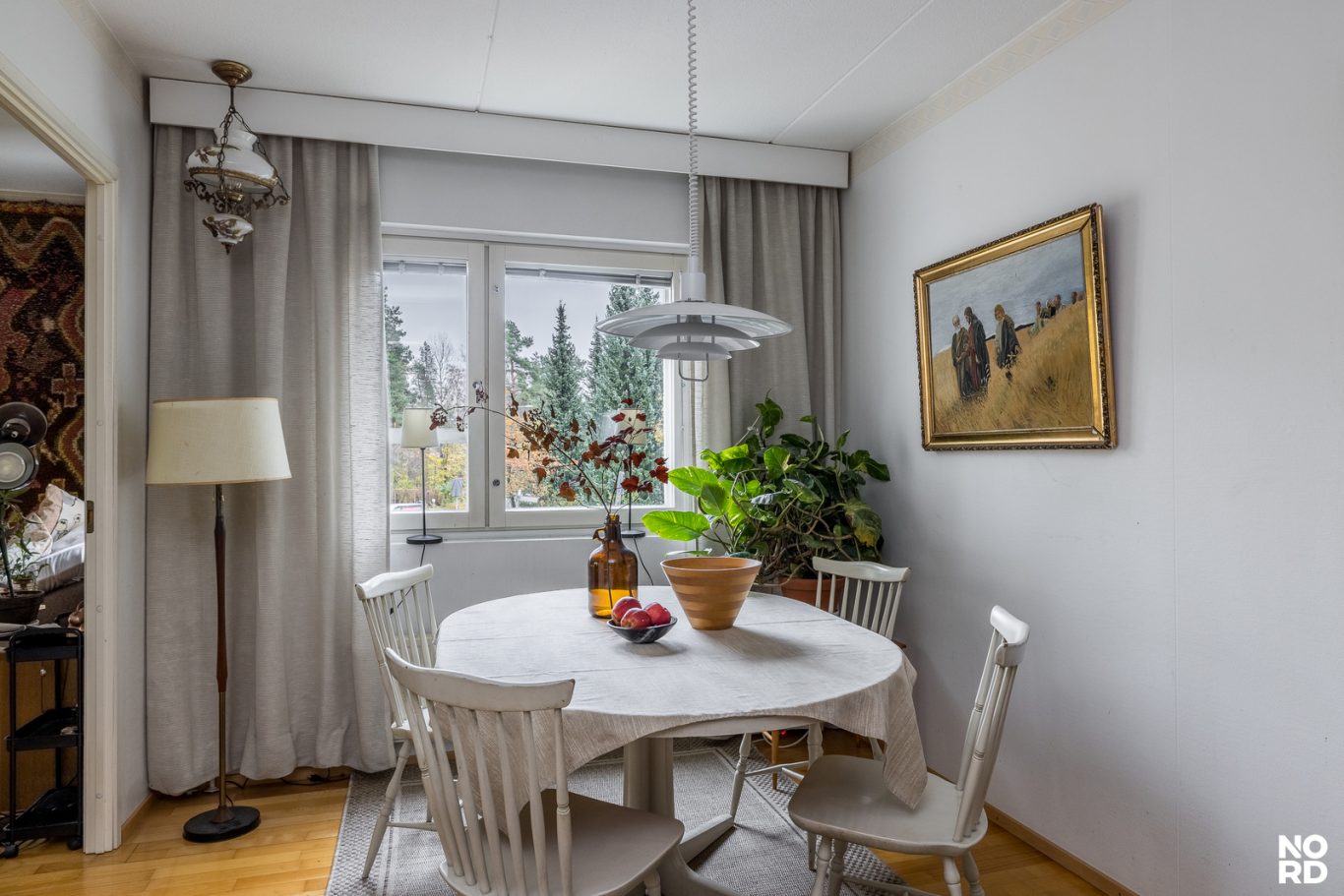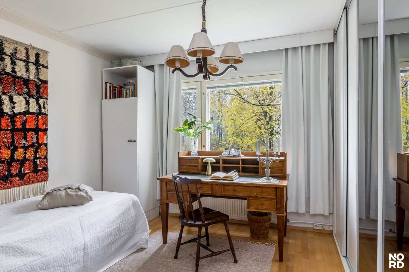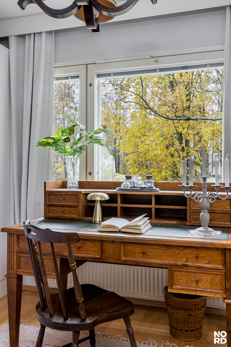 Tässä toisen kerroksen kolmiossa on ihanteellinen pohjaratkaisu, sillä päätysijainnin ansiosta kotiin tulvii luonnonvaloa valoa kolmesta suunnasta! Jokaisesta ikkunasta on mukavat näkymät, sillä väljällä tontilla sijaitsevaa yhtiötä reunustaa kolmelta sivulta lähivirkistysalueeksi kaavoitettua metsää.