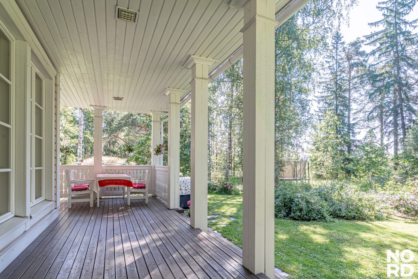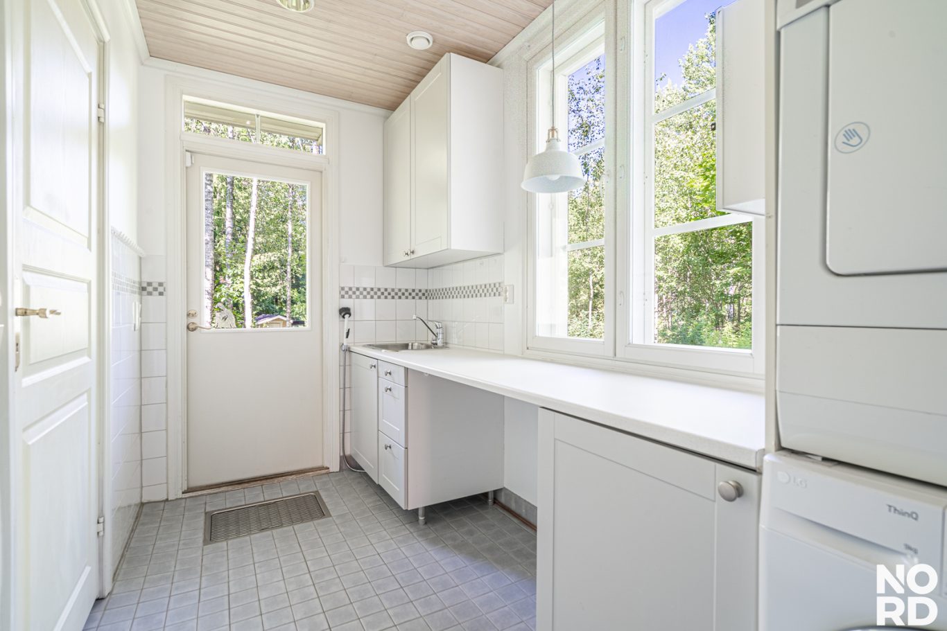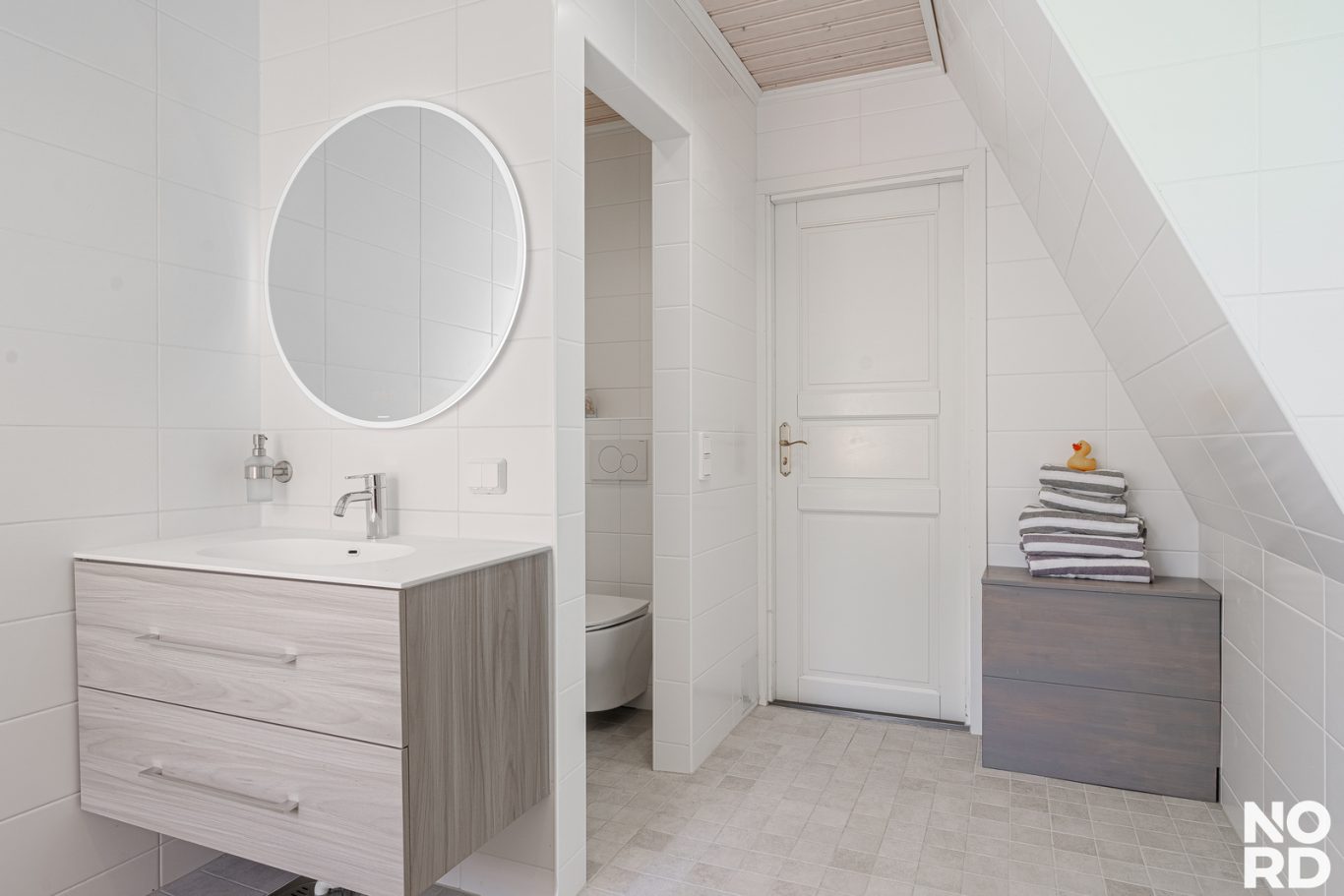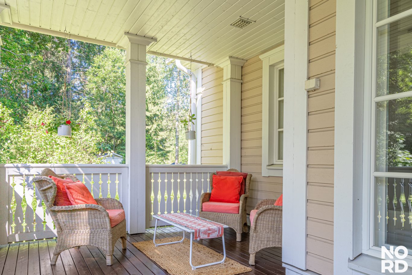 | Tehdyt korjaukset | 2025 Saunan ja pesuhuoneen remontti (Remppatimo Ky): Pintarakenteet, lauteet, kiukaantaustaelementti ja vedeneristykset uusittu pois lukien saunan paneeliverhotut pinnat. Asuintilojen sisäpinnat maalattu, parvekkeen ovi uusittu (Tiivi Oy), sekä valokuituun liittyminen. Ilmanvaihtokoneen suodattimet vaihdettu viimeksi kesällä. Nuohous tehty viimeksi toukokuussa (JR Nuohous). 2024 Ilmanvaihtojärjestelmä huollettu, puhdistettu ja säädetty sekä ilmanvaihtokone uusittu (LVI-Trio Oy). Vesikate puhdistettu ja huollettu: Sammaleen poisto ja rikkinäisten tiilien vaihto uusiin talossa ja autokatoksessa (Kourullecom Oy). 2022 Yläkerran kylpyhuoneen pintarakenteet ja vedeneristykset uusittu 2018 Parvekkeen kaiteet uusittu ja tehty uudet pylväät metallihattuineen. Työn suoritti Rakennusliike Roger Jäderholm. Osin huoltomaalattu itse myöhemmin. 2017 Ulkoseinien puuverhoukset huoltomaalattu (myös autokatoksen puuverhoukset) 2015 (noin) Parvekkeen vedeneristys (kumibitumikermikate) uusittu. Työn suoritti Icopal katto Oy. 2014 (noin) Maalämpöpumpun kompressori uusittu Lisäksi maalämpöpumppu on huollettu kahteen kertaan rakennuksen valmistumisen jälkeen, saumoja on uusittu vuosien varrella ja kodinkoneita on uusittu vuosien varrella tarpeen mukaan. Myyjä on lisäksi seurannut ja varmistellut talon kuntoa aktiivisesti. Esimerkiksi, kun parvekkeen bitumikermit vaihdettiin noin vuonna 2015, samalla tarkastettiin myös pistokokein parvekkeen viereisten aluskermien kunto kattotiilien alta, jolloin yksi sauma avattiin ja liimattiin uudestaan. Myyjä on lisännyt varmuuden vuoksi parvekkeen tiilikaton päälle ns. sadevesien "ulosheittäjät". Myös rikkinäisiä kattotiiliä on vaihdettu ajoissa. |
