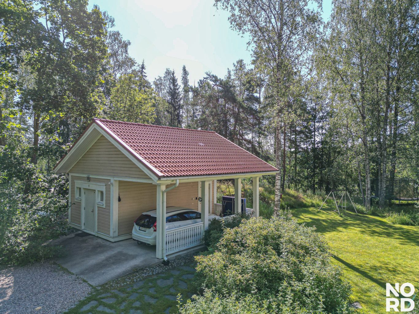 | Säilytystilojen kuvaus ja lisätiedot | Talossa paljon kaappeja ja vaatesäilytystilaa sekä kaksi vaatehuonetta. Sen lisäksi yläkerrasta on käynti ja alasvedettävät tikkaat yläpohjassa olevaan ullakkotilaan, joka ei ole asuintilaa. Autokatoksen yhteydessä on kaksi tilavaa varastoa, joista toinen on lämmin ja toinen kylmä varasto. |
