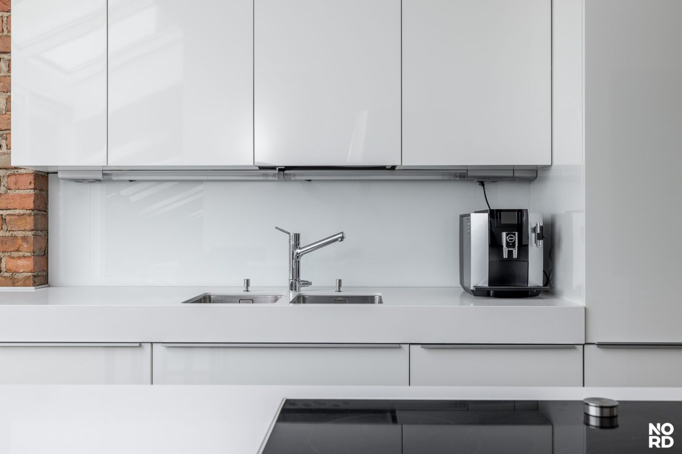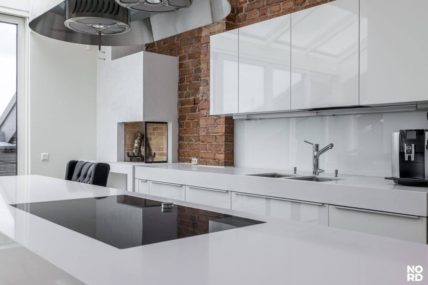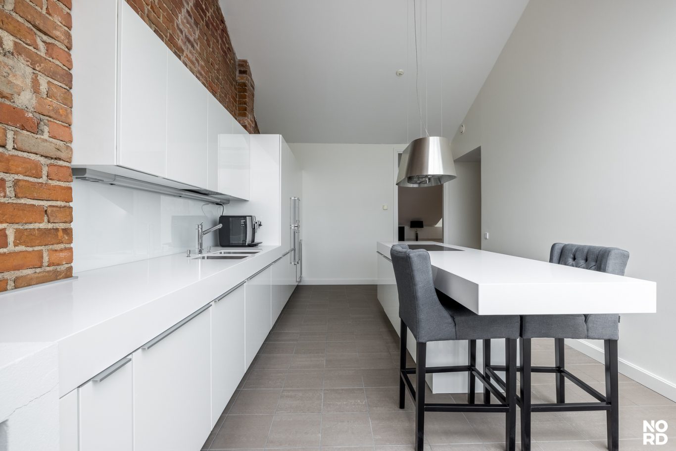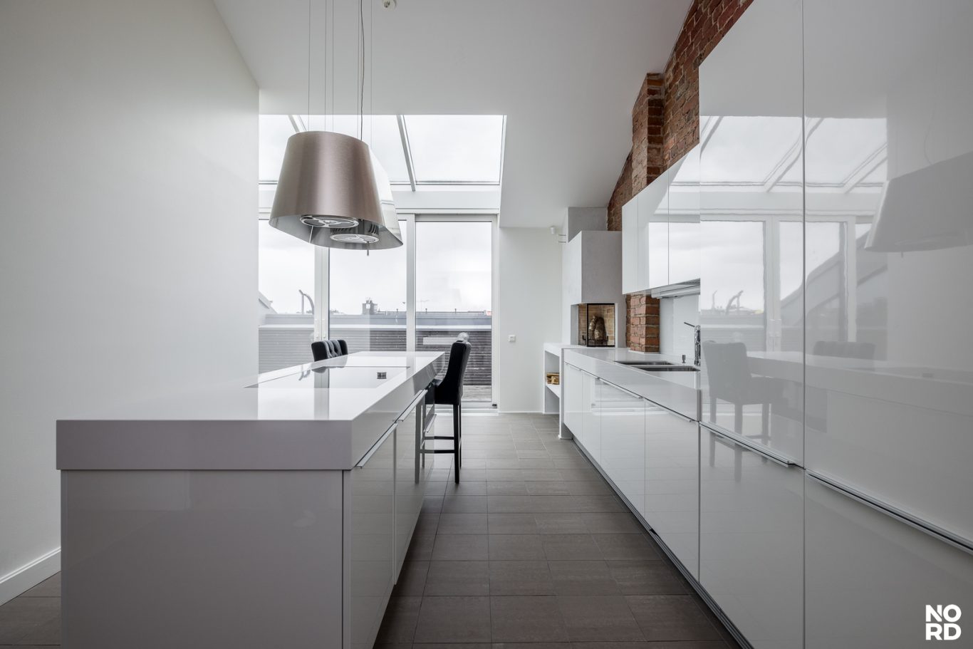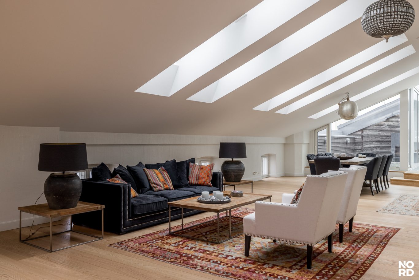Hissillä pääsee suoraan huoneistoon omalla avaimella, mikä takaa yksityisyyden ja turvallisuuden. Sisään astuttaessa avautuu vaikuttava, avara olohuone, jossa yhdistyvät oleskelu- ja ruokailutilat saumattomasti. Tilasta on käynti avoparvekkeelle sekä tyylikkääseen Poggenpohlin keittiöön, josta löytyvät Gaggenaun huippuluokan kodinkoneet, avotakka sekä suora käynti kesäkäyttöön suunnitellulle terassille. Terassilla on myös oma ulkotakka.