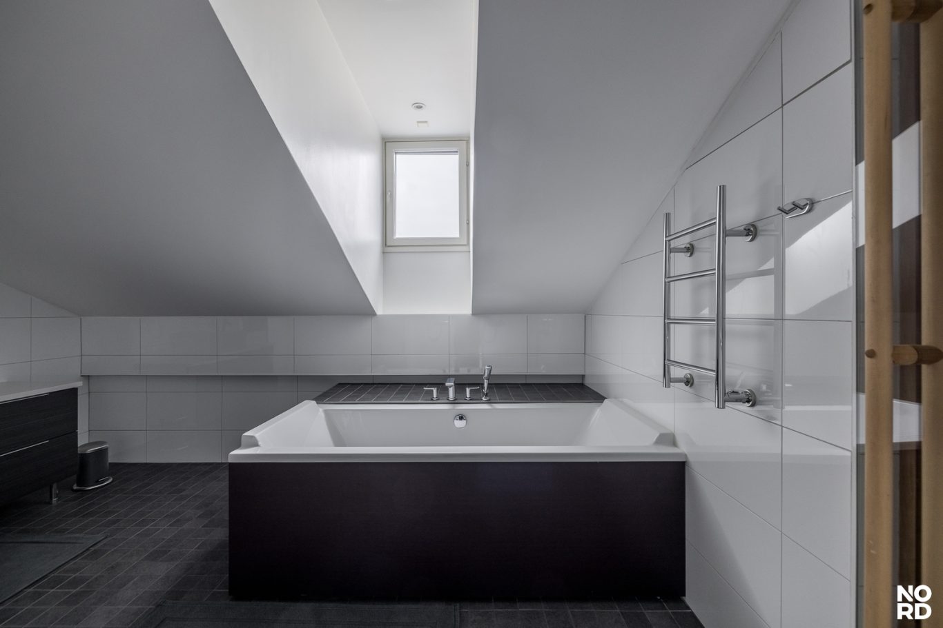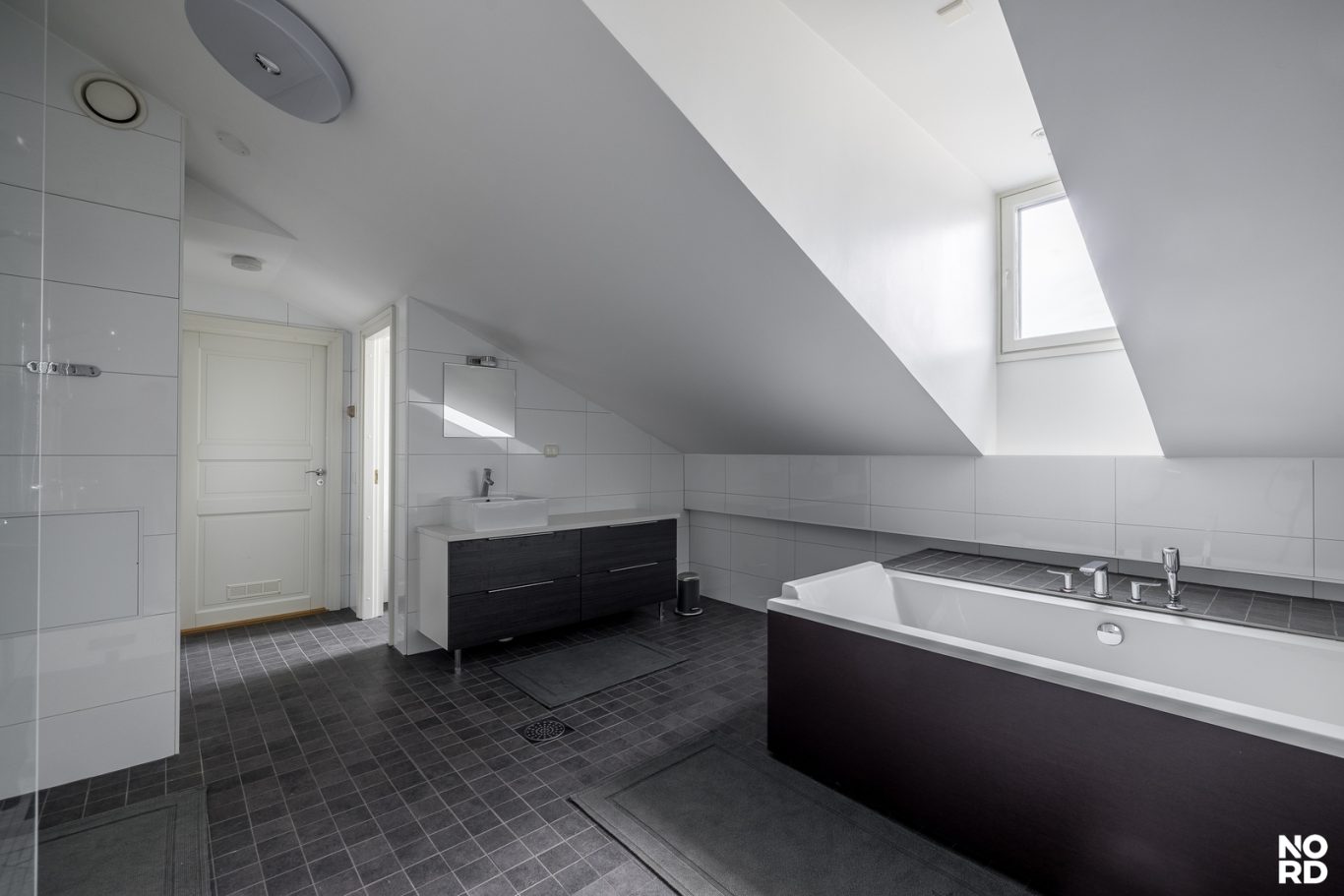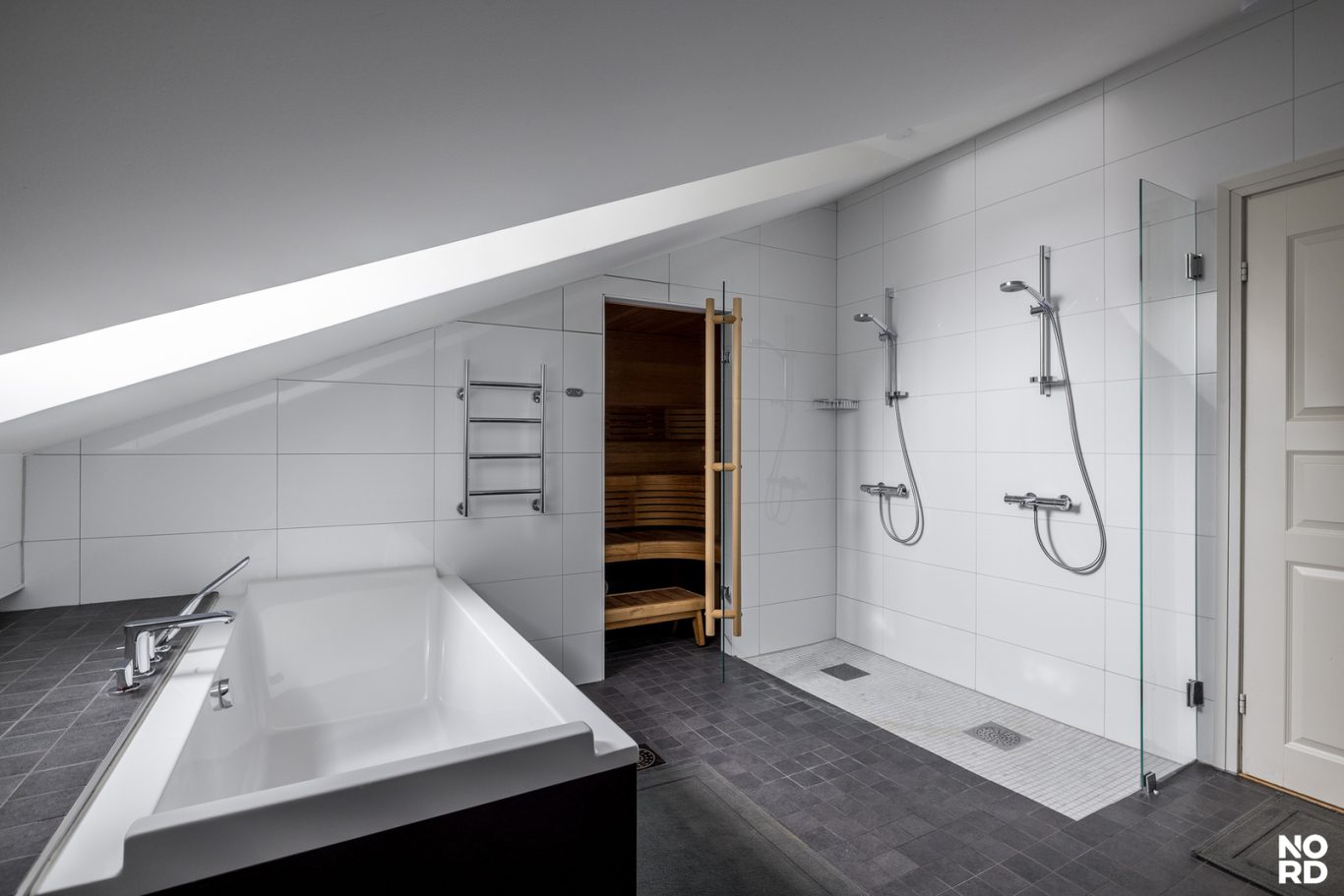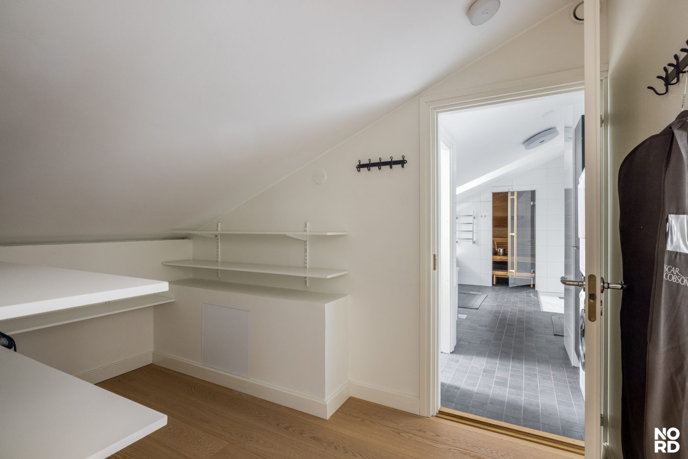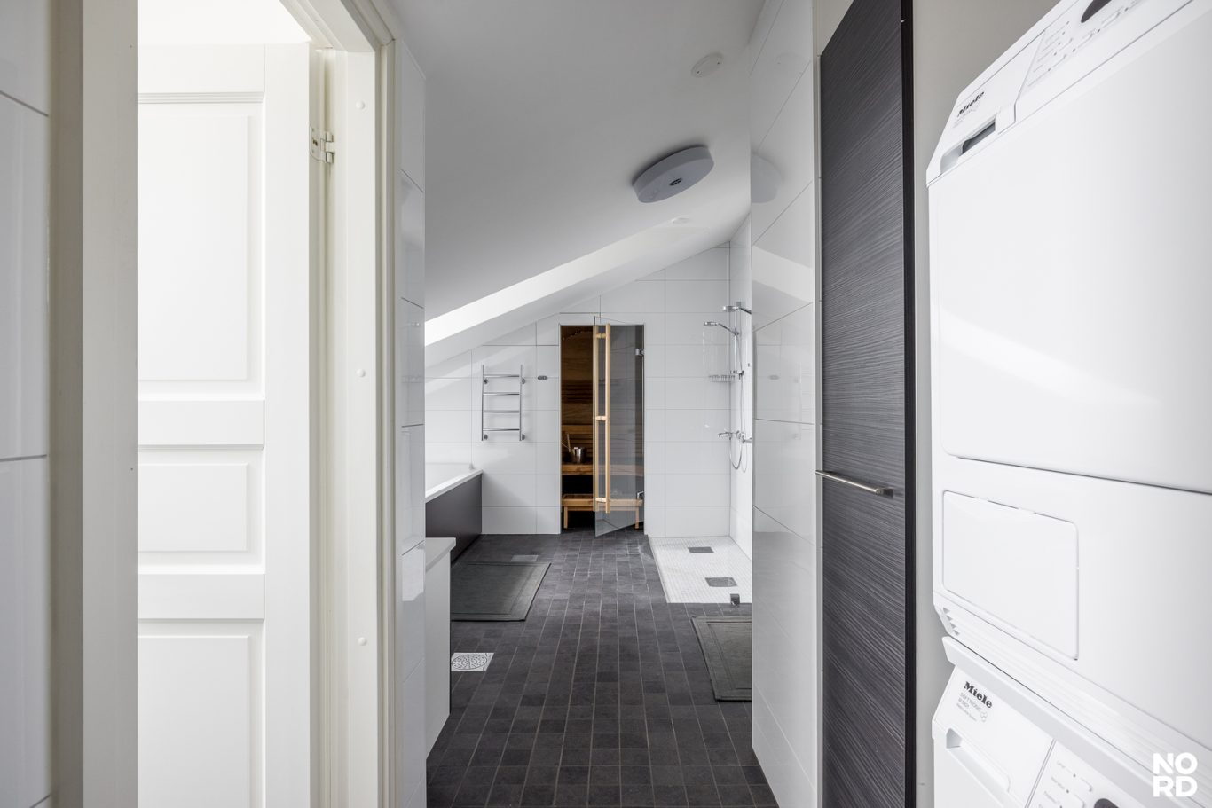 Asunnossa on kaksi makuuhuonetta. Päämakuuhuoneen yhteydessä sijaitsevat saunaosasto ja kodinhoitohuone. Saunaosastolta löytyvät kylpyamme, tuplasuihkut sekä viihtyisä sähkösauna. Lisäksi huoneistossa on toinen kylpyhuone sekä erillinen vieras-wc.