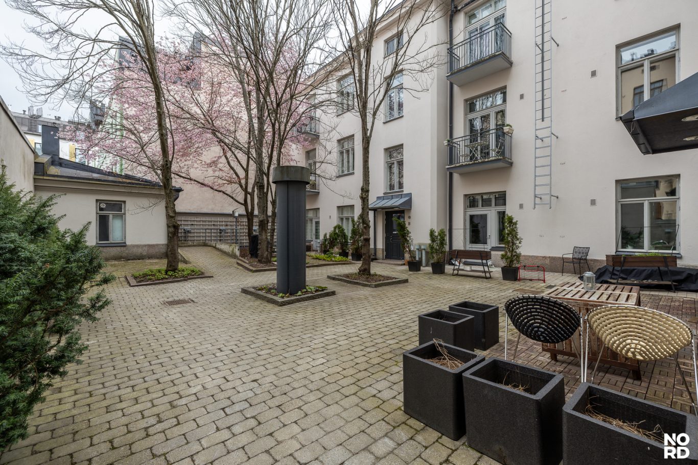 Vuonna 1898 valmistunut kiinteistö sijaitsee arvostetulla ja rauhallisella alueella Ratakadulla, Fredrikinkadun ja Annankadun välissä. Taloyhtiö on täysin modernisoitu vuonna 2013 kuitenkin alkuperäistä, suojeltua julkisivua kunnioittaen. Tekninen varustelu täyttää nykyajan korkeimmatkin vaatimukset: huoneistossa on lattialämmitys, koneellinen ilmanvaihto, viilennys sekä viisi ilmalämpöpumppua.