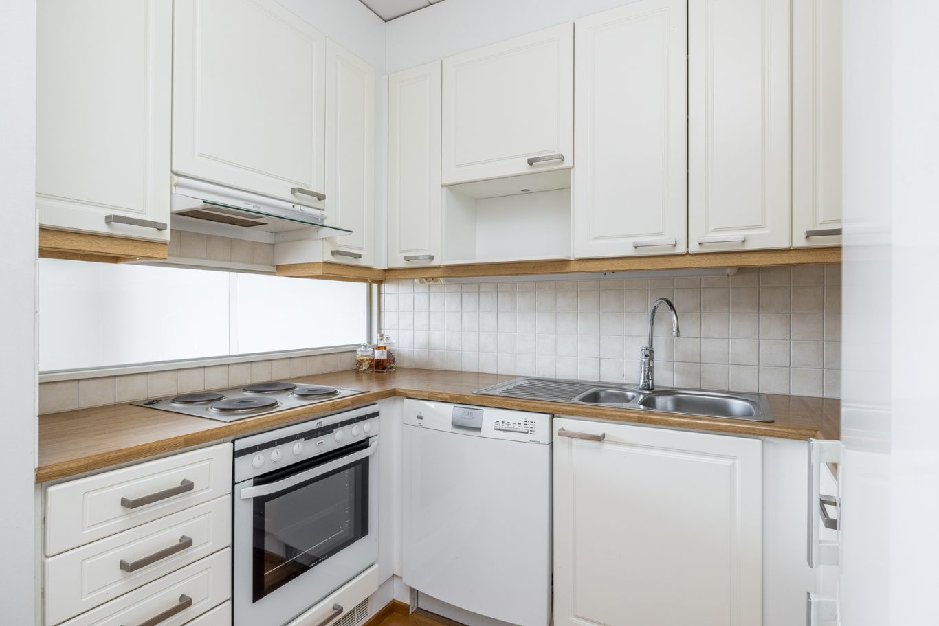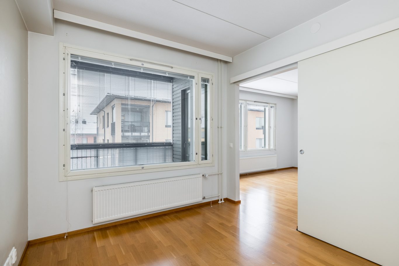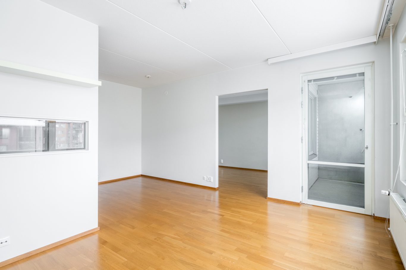 Tämä skandinaavisin sävyin toteutettu koti on täysin muuttovalmis. Tilava olohuoneen ja ruokailutilan yhdistelmä on tämän asunnon keskipiste ja sieltä löytyy reilusti oleskelutilaa. Täältä on käynti mukavankokoiselle lasitetulle parvekkeelle avarilla näkymillä. Olohuoneeseen yhdistyy vaaleansävyinen, kattavasti varusteltu keittiö, jossa on runsaasti kaappi- sekä laskutilaa ja sen edustalla on paikka ruokailuryhmälle.