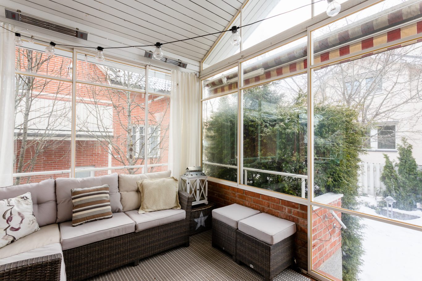 Lasitetun terassin kautta kuljet suoraan suojaisalle pihalle, jossa voit nauttia ulkona oleskelusta varhain keväästä pitkälle syksyyn. Tilava patio ja kaivo kasteluvedelle tekevät pihan hoidosta ja kesäpäivien vietosta vaivatonta.