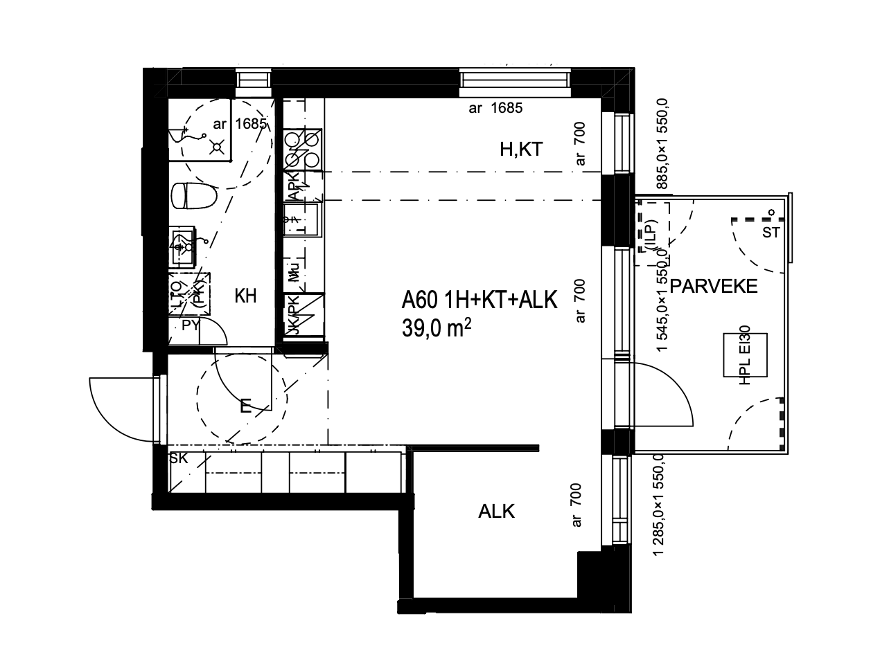 | Huoneistoselitelmä | 1h+kt+alk |
