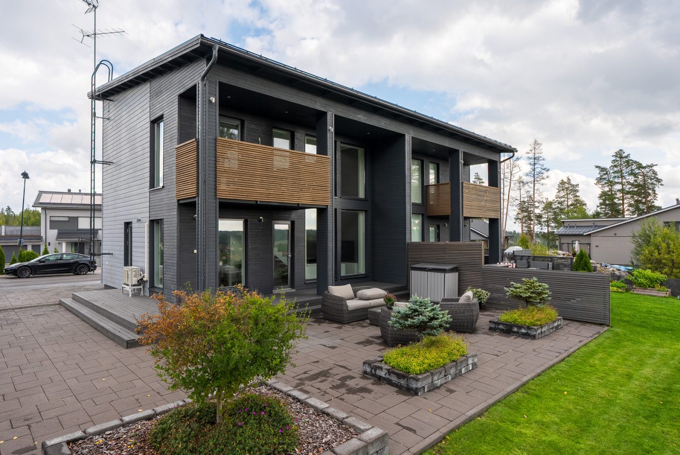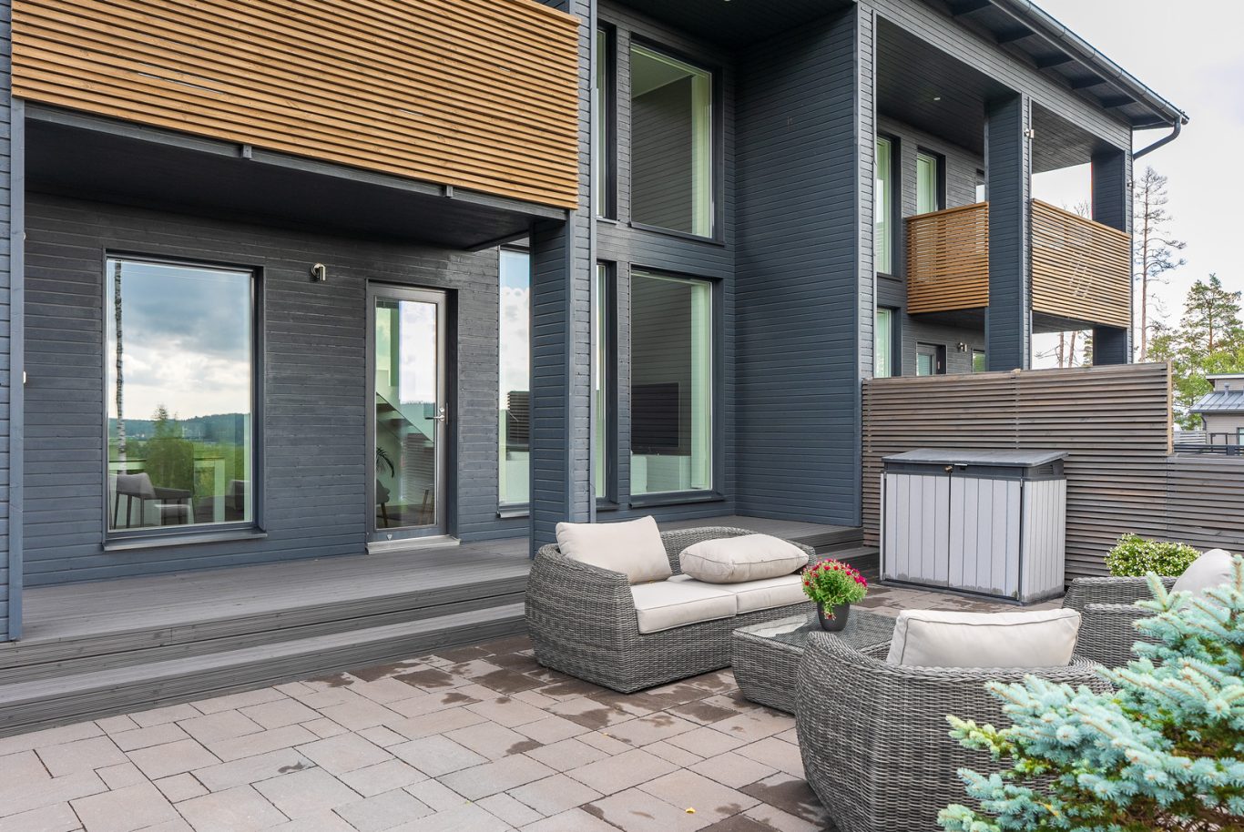Uusi asukas pääseekin nauttimaan muuttovalmiista kauniista kodista, upealla betonikivillä sekä nurmikolla ja istutusaltailla viimeistellyllä takapihalla, katetutulla puuterassilla ja helppohoitoisella etupihalla joka asfaltoitu ja viimeistelty istutusaltailla. Asunnosta poikkeuksellisen mahtavat näkymät.