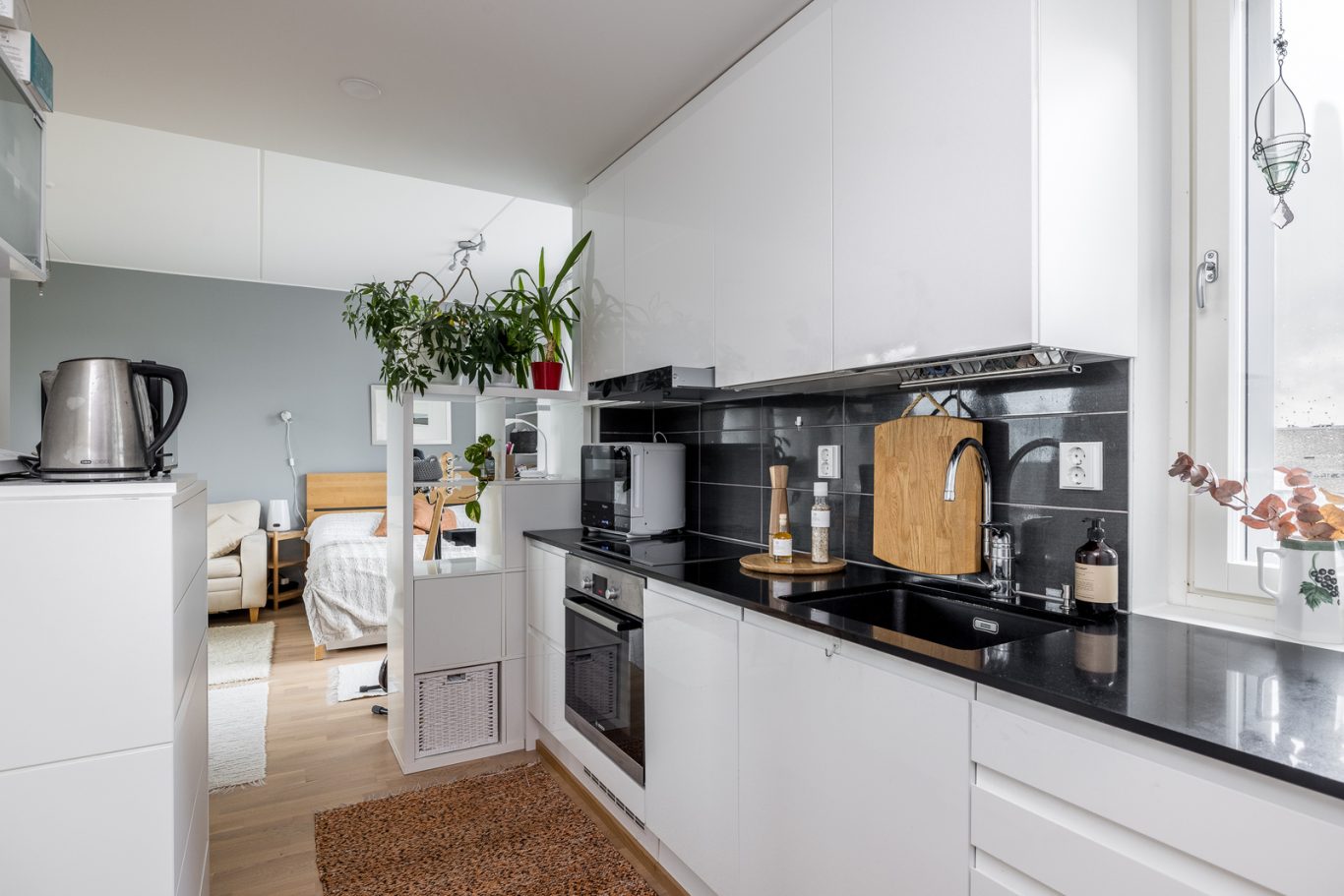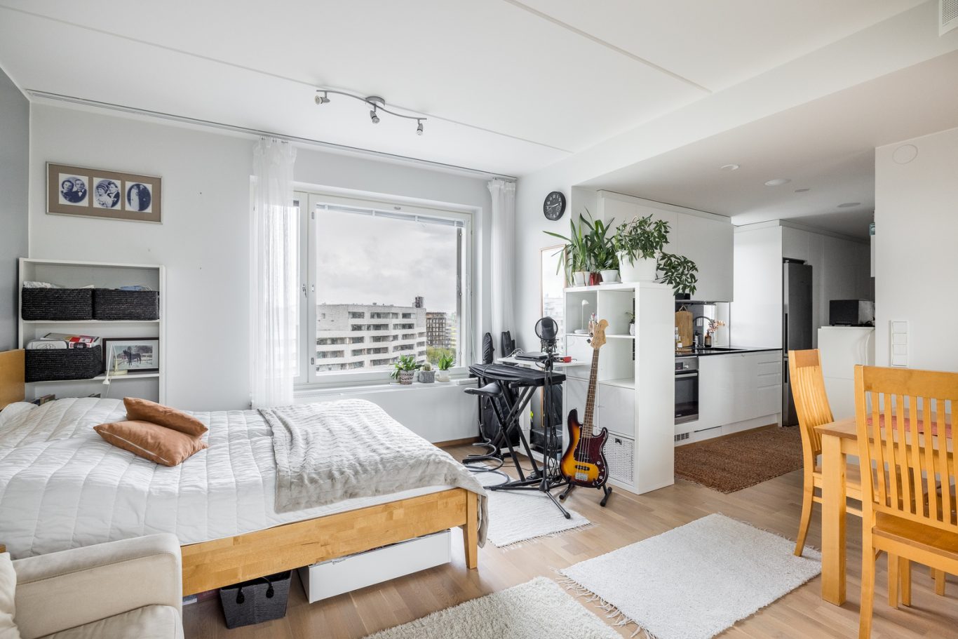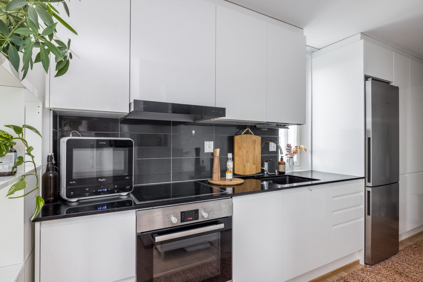 Tunnelmaa asuntoon tuovat suuret ikkunat, laadukkaat parkettilattiat sekä tyllikkäästi toteutettu iso kylpyhuone. Näyttävä ja tyylikkäästi toteutettu keittiö kivitasoilla ja Boschin kodinkoneilla tuo arkeen luksusta.Kodin keskipisteenä on valoisa ja avara olohuoneen ja ruokailutilan yhdistelmä jossa on reilusti tilaa viihtymiseen. Olohuoneesta on käynti myös mukavankokoiselle parvekkeelle, josta aukeaa upeat kaupunkinäkymät yli kattojen aina merelle asti!
