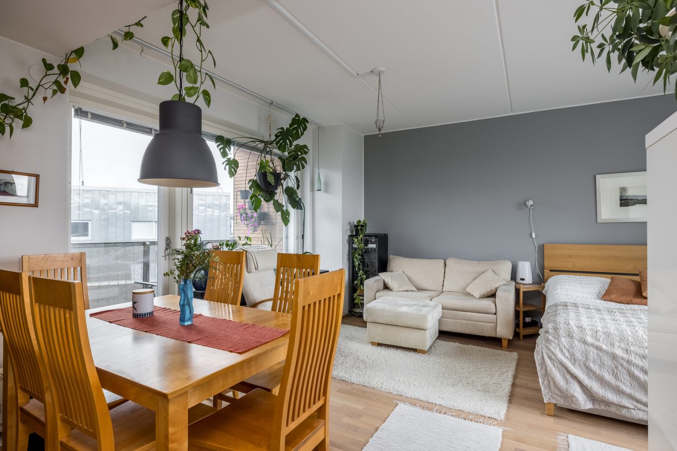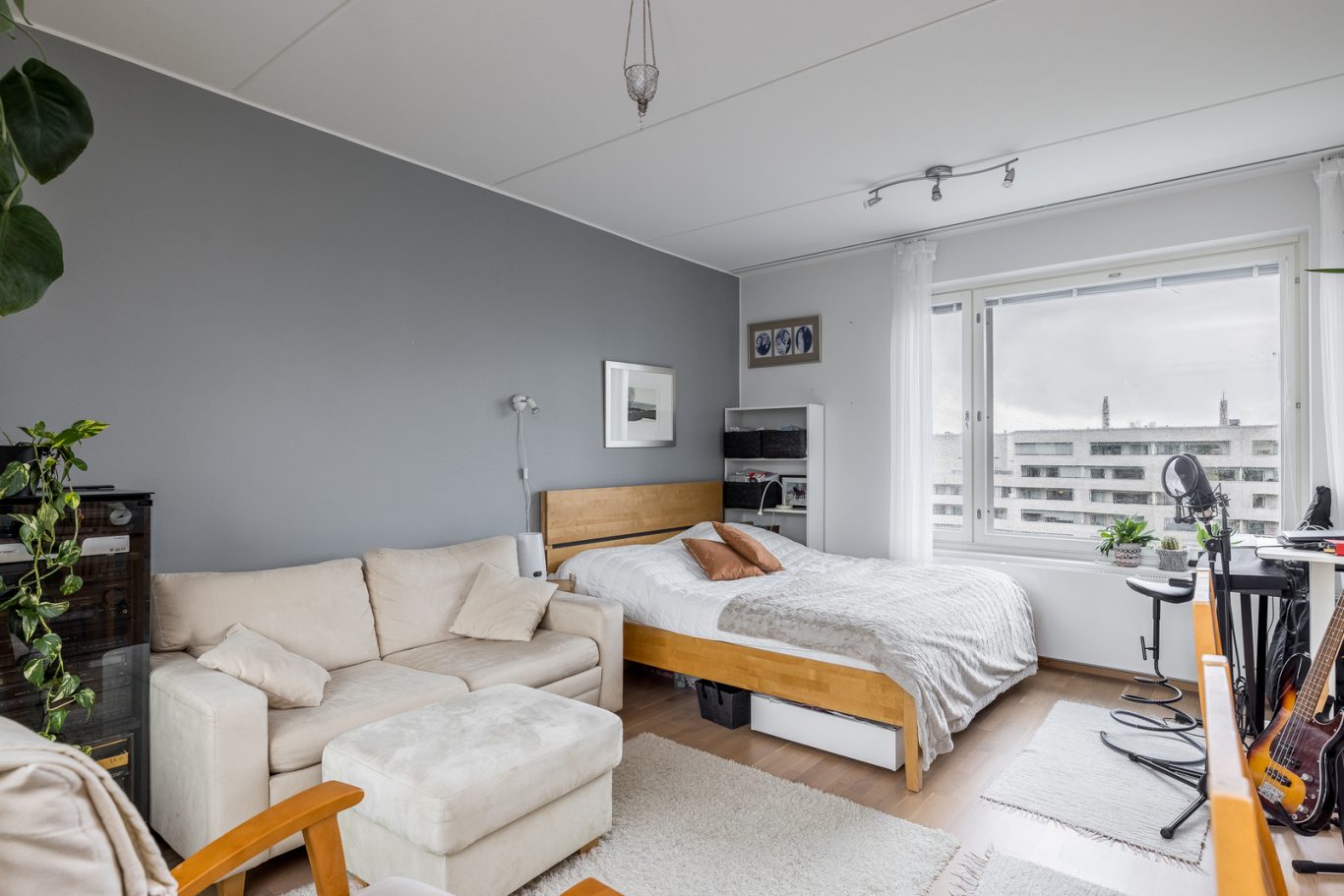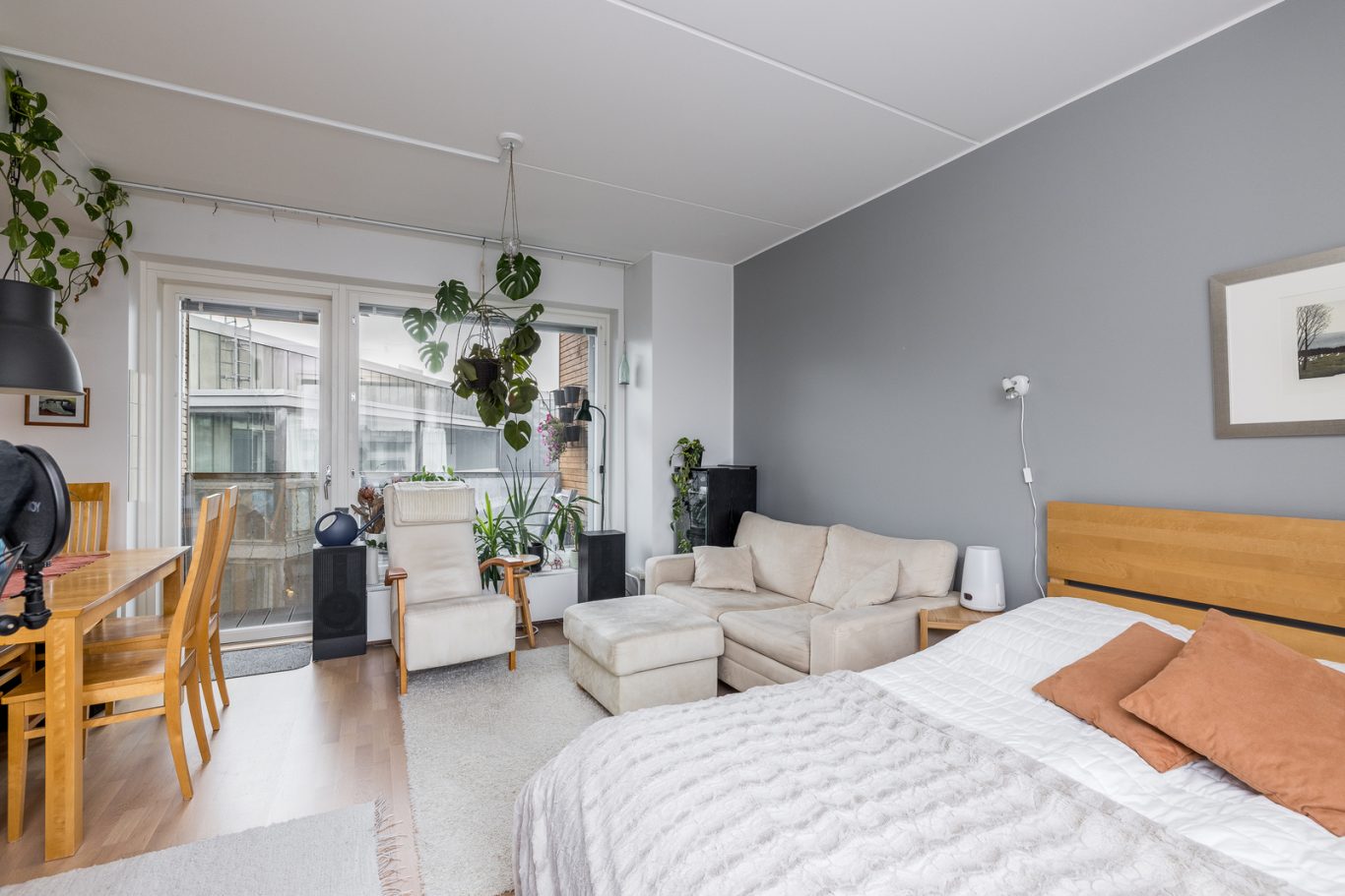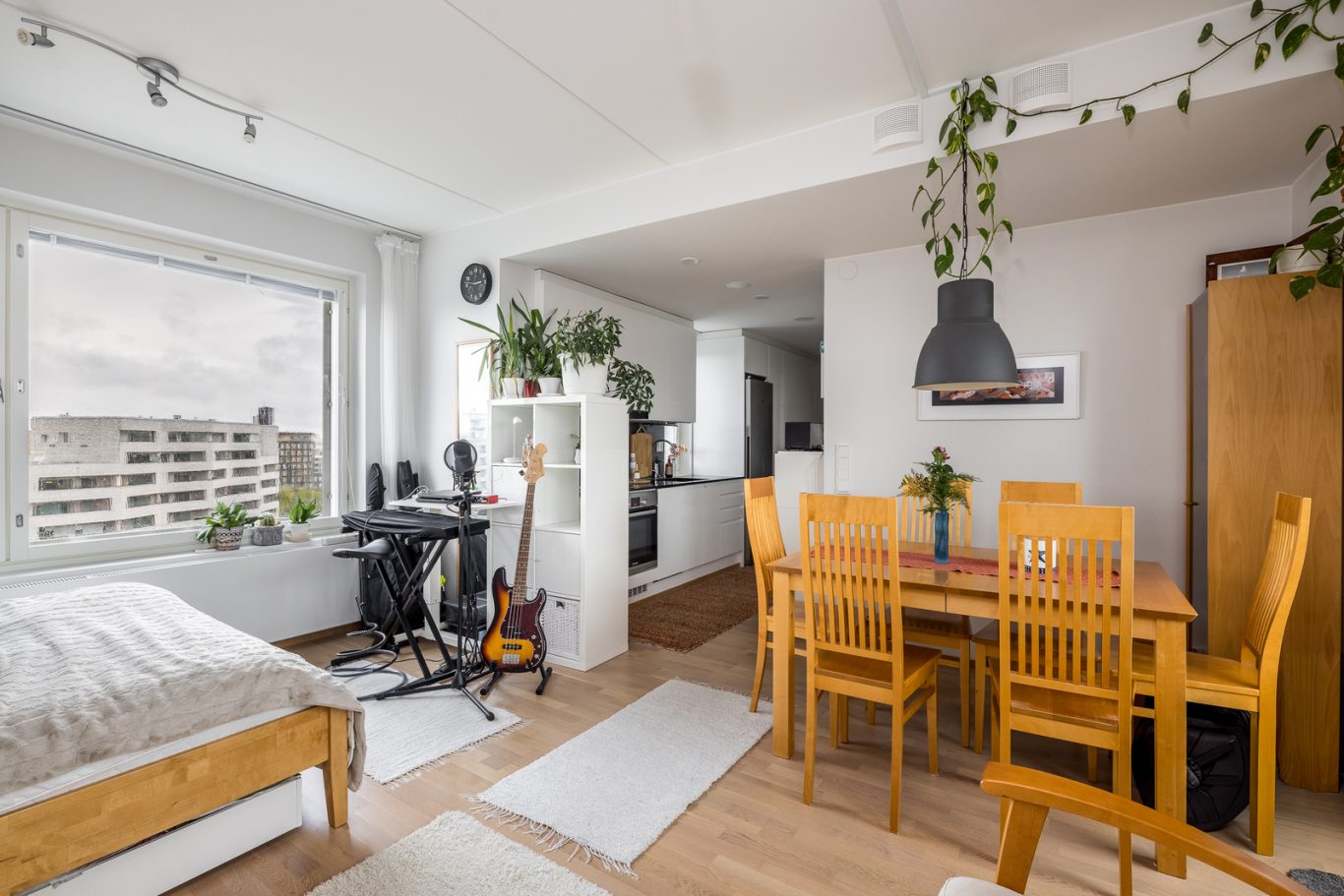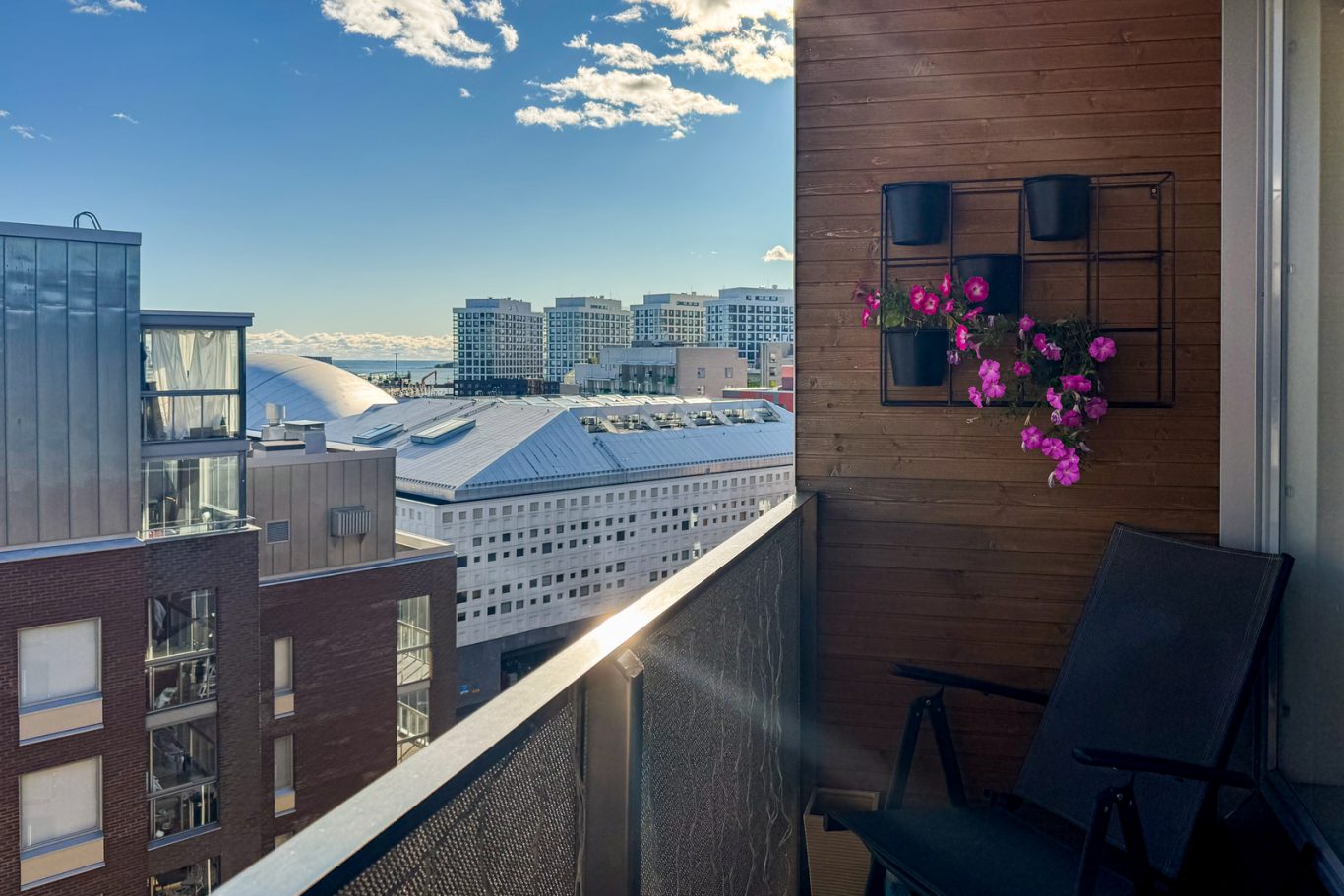 Huoletonta asumista merellisessä Jätkäsaaressa. Ylimmän kerroksen avarapohjainen koti parvekkeella ja upeilla puistonäkymillä!