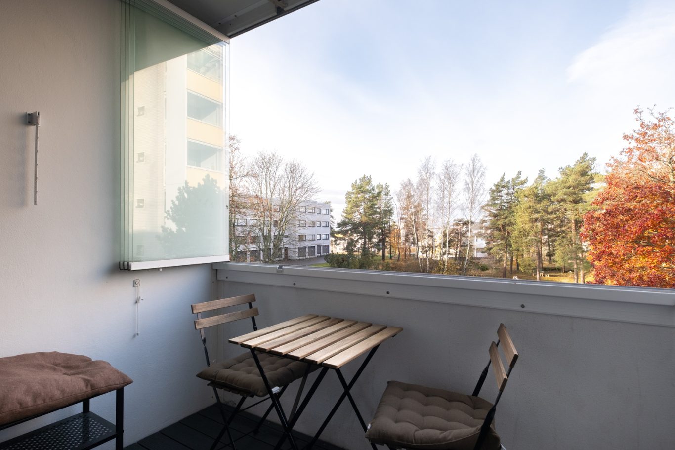 maisemat avautuvat huoneiston ikkunoista ja hyvät ulkoilumaastot ovat