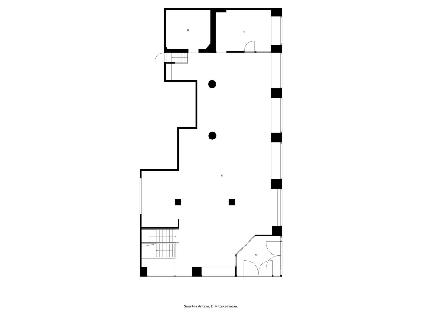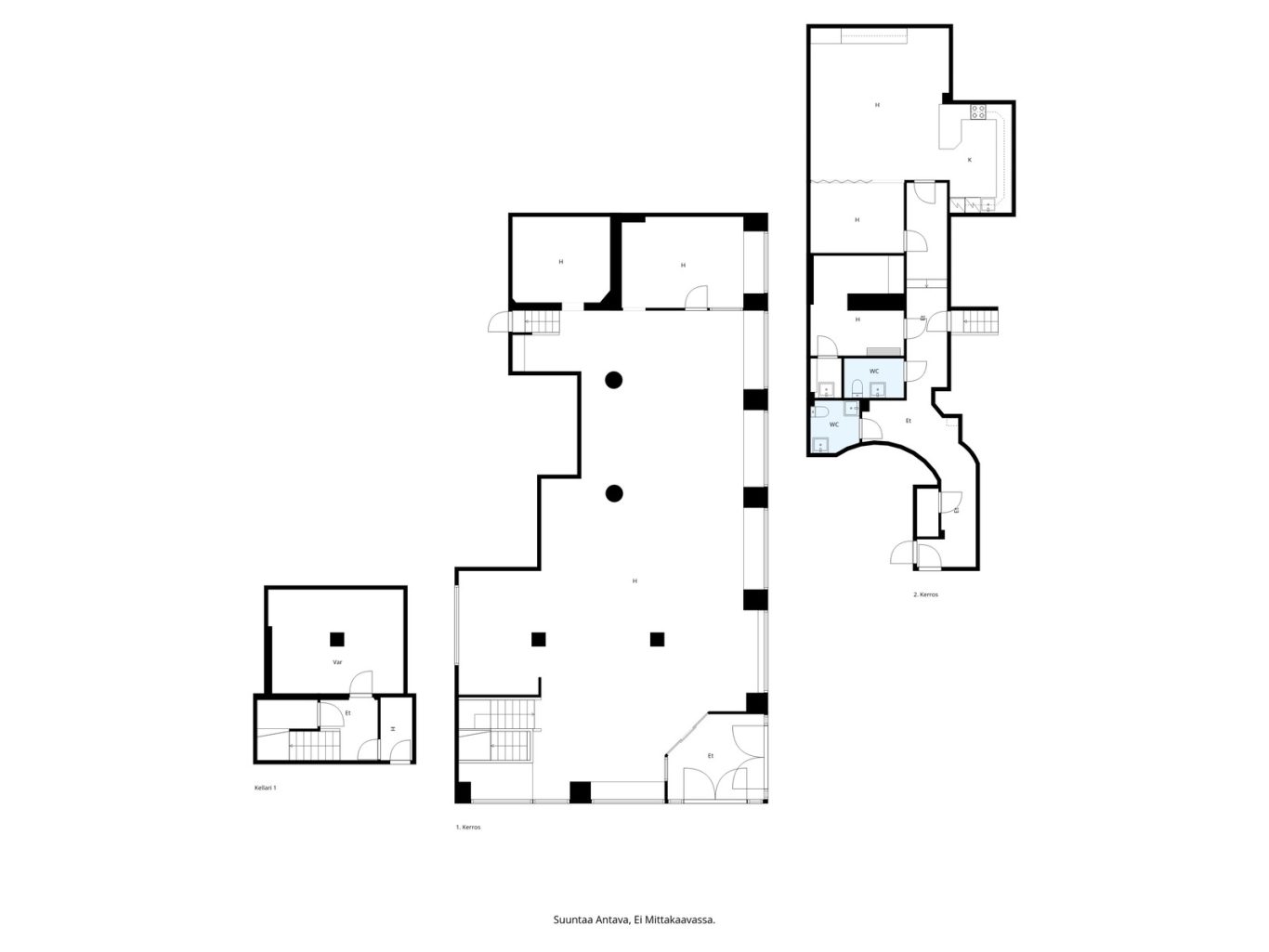 Kerrokset: Tila jakautuu toimivasti kolmeen tasoon, mikä mahdollistaa esimerkiksi myymälän, edustustilan ja varaston/toimiston eriyttämisen.