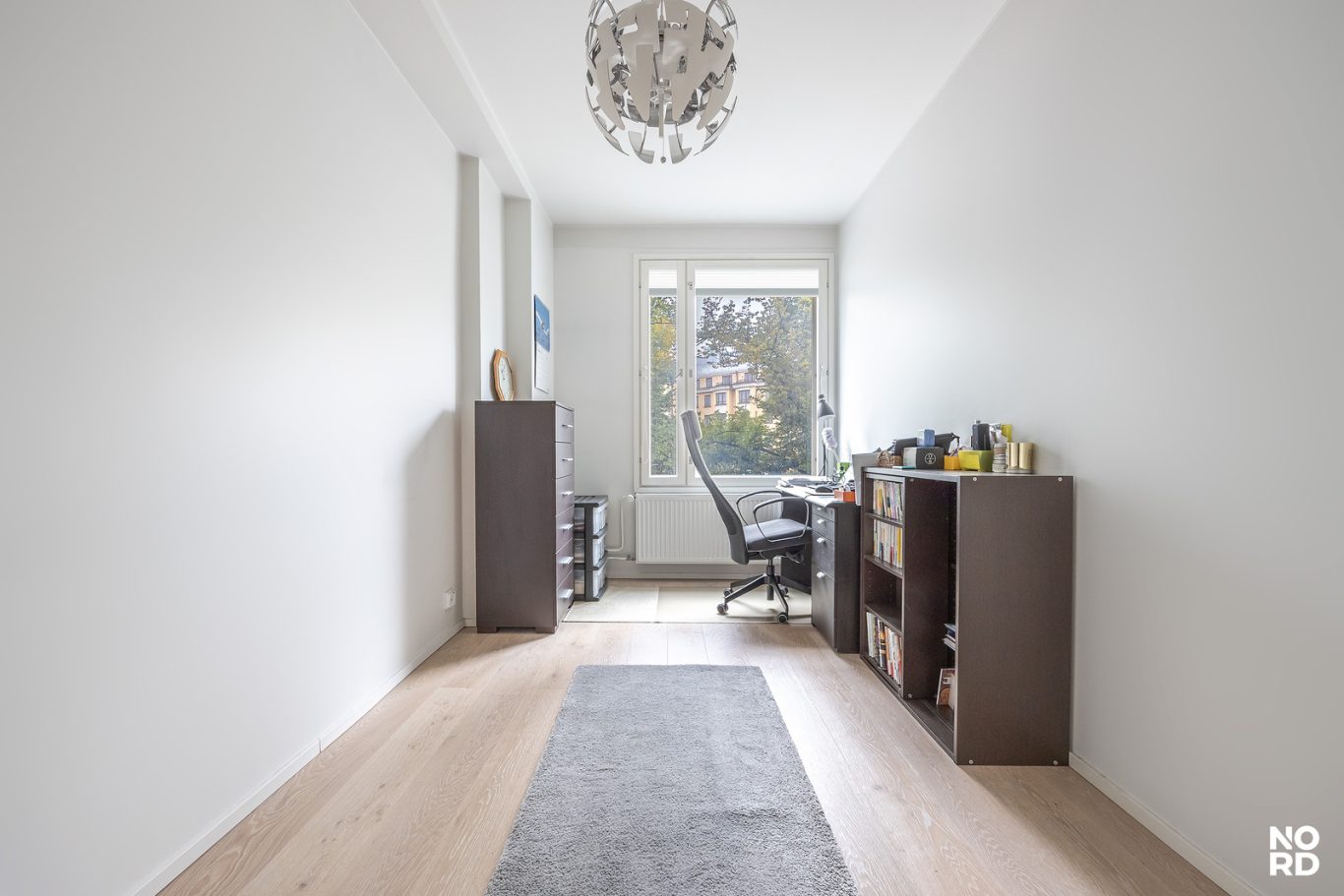 Moderni neljän huoneen asunto Kampin sykkeessä. Erikoisuutena puistomaisema asunnosta.