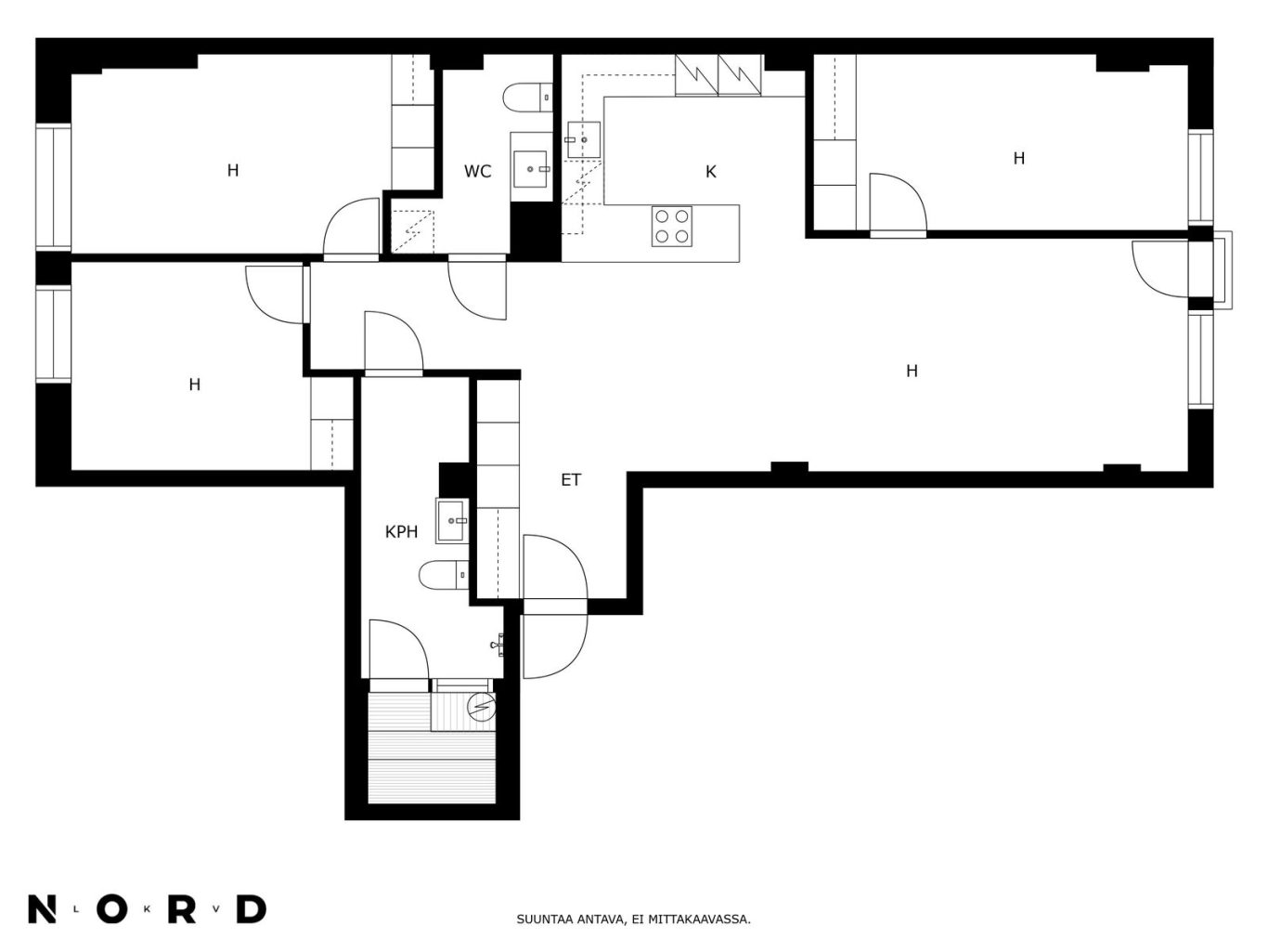 | Lisätietoja pinta-alasta | Pinta-ala ei ole tarkistusmitattu ja todellinen pinta-ala voi olla suurempi tai pienempi, kuin ilmoitettu. Hinta ei ole pinta-alaperusteinen. Yhtiöjärjestyksen mukainen huoneistoselitelmä on 4h+kt+s. |