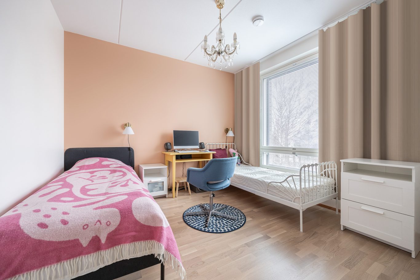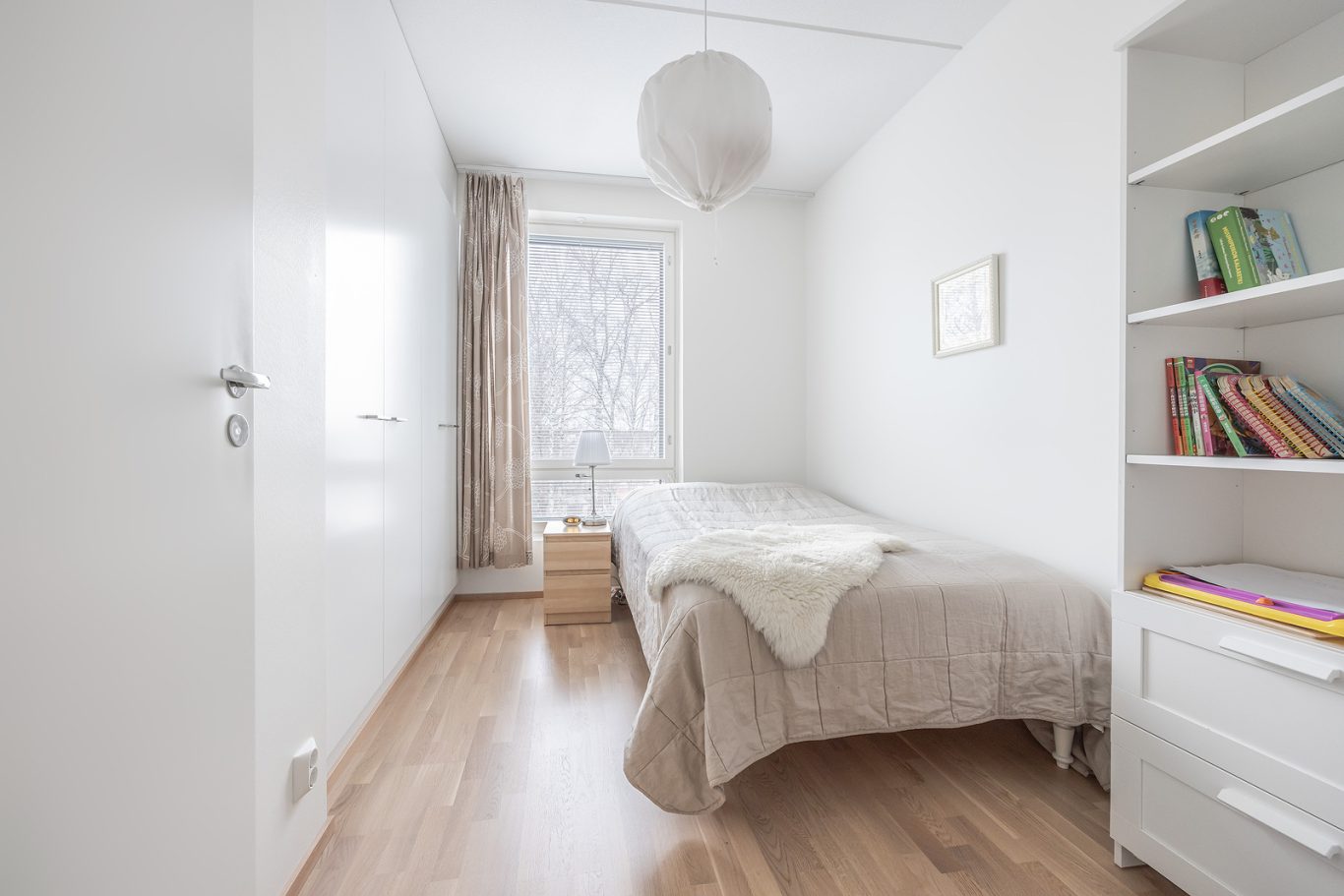 Asunnossa on reilunkokoinen päämakuuhuone ja pienempi makuuhuone, joka soveltuu täydellisesti työ- tai lastenhuoneeksi. Molemmista makuuhuoneista löytyy eteisen kaapistojen lisäksi hyvin säilytystilaa. Asuinmukavuutta nostaa vesikiertoinen lattialämmitys joka kattaa asuintilat sekä kylpyhuoneen.