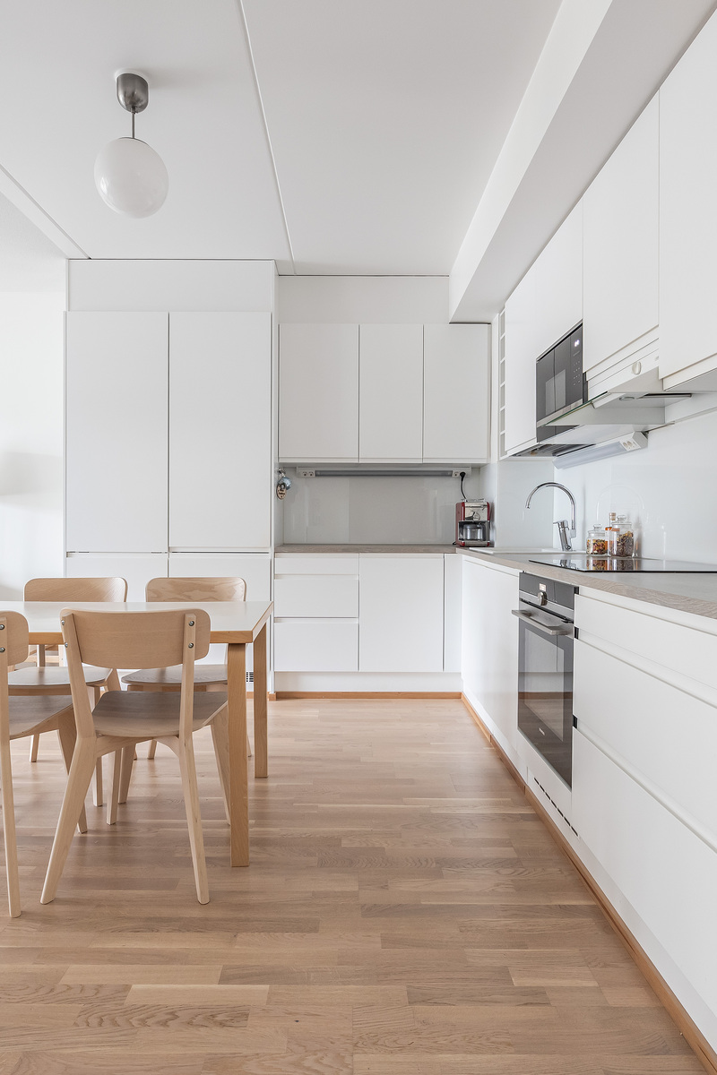 Ylellistä tunnelmaa asuntoon tuovat suuret ikkunat, laadukkaat parkettilattiat ja upea, tyylikkäästi toteutettu kylpyhuone. Näyttävä keittiö Siemensin integroiduilla kodinkoneilla tuo arkeen luksusta. Todella tilavasta ja viihtyisästä olohuoneen ja avokeittiön yhdistelmästä on käynti mukavankokoiselle ja suojaisalle lasitetulle parvekkeelle, josta aukeaa avarat ja vehreät näkymät sisäpihan suuntaan.