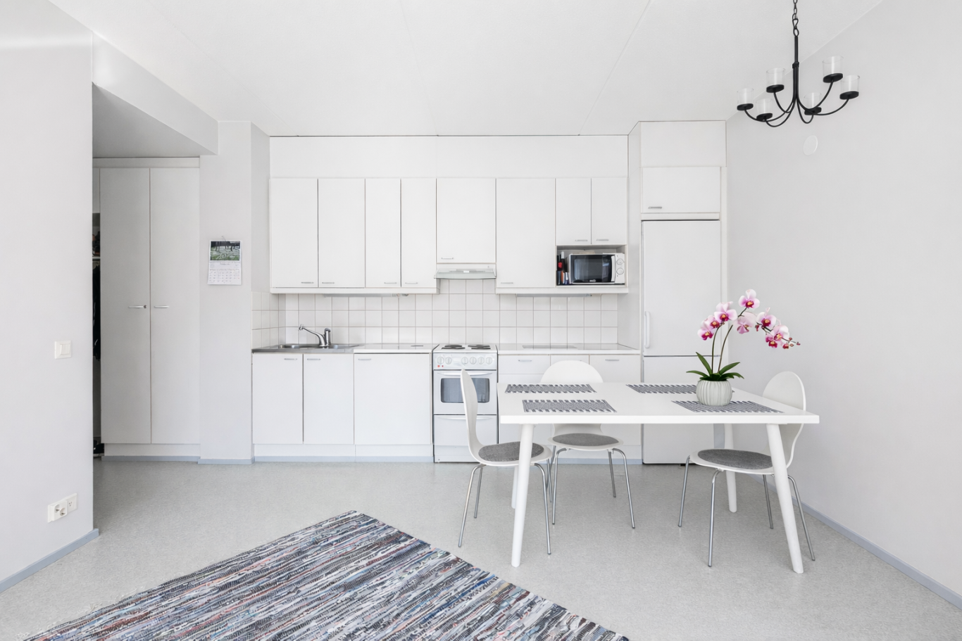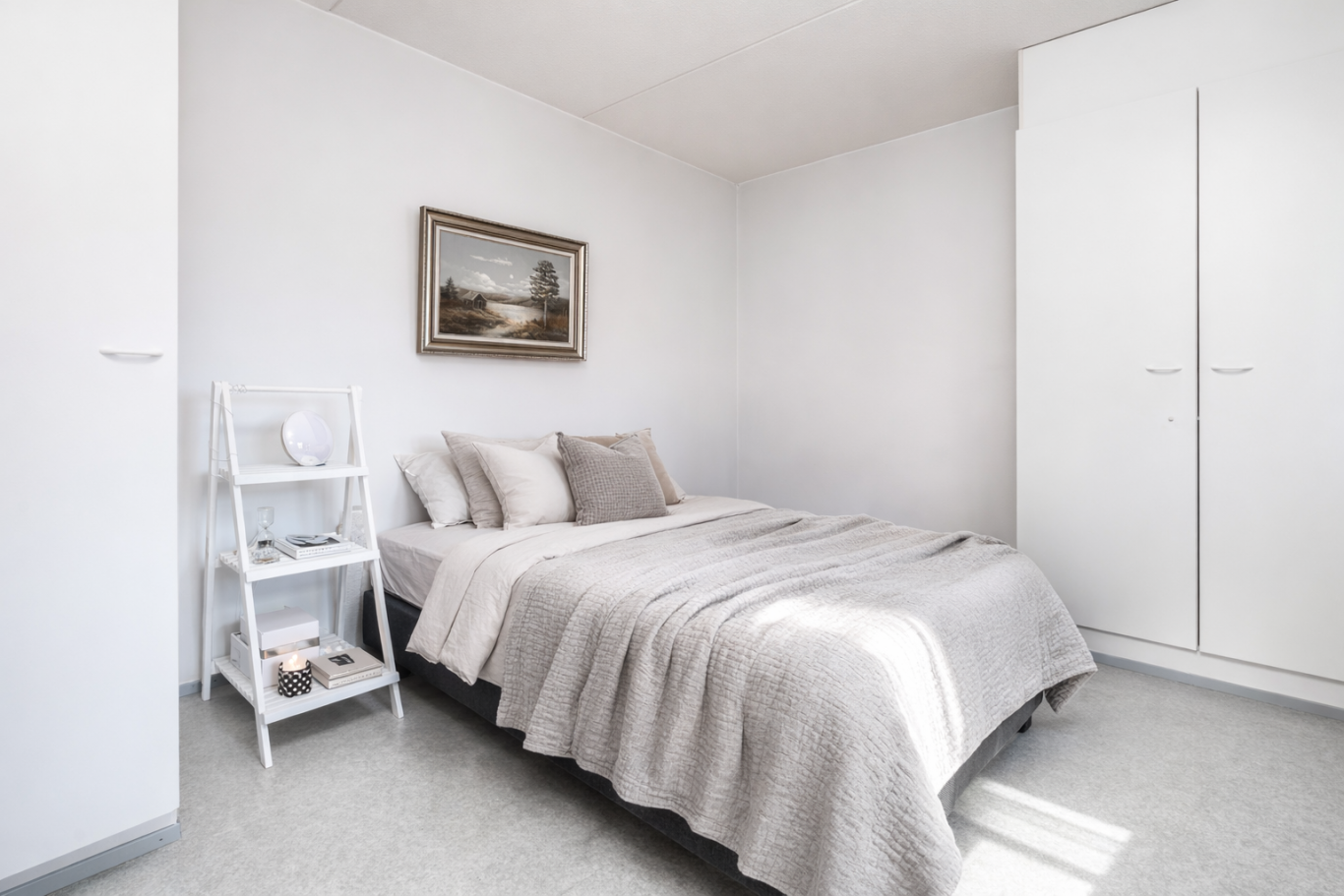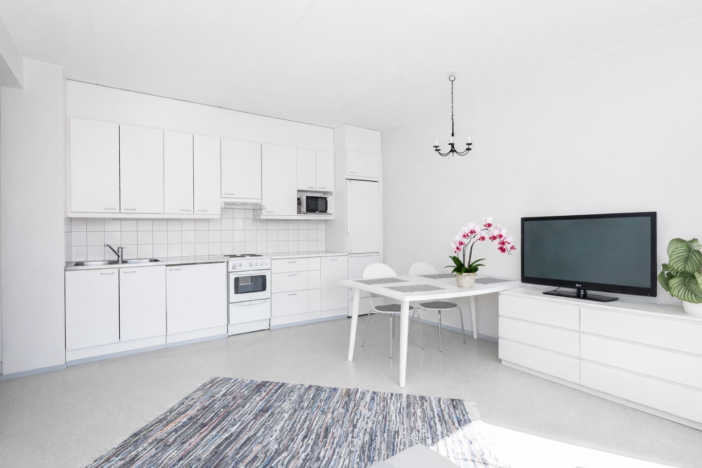 Asunnossa on hyvänkokoinen olohuone vaalealla avokeittiöllä. Makuuhuone on tilava, ja sinne mahtuu hyvin sänky; säilytystilaa löytyy kaapistoista. Uusitun, modernin kylpyhuoneen yhteydessä on viihtyisä sauna, jossa on pienet ikkunat.