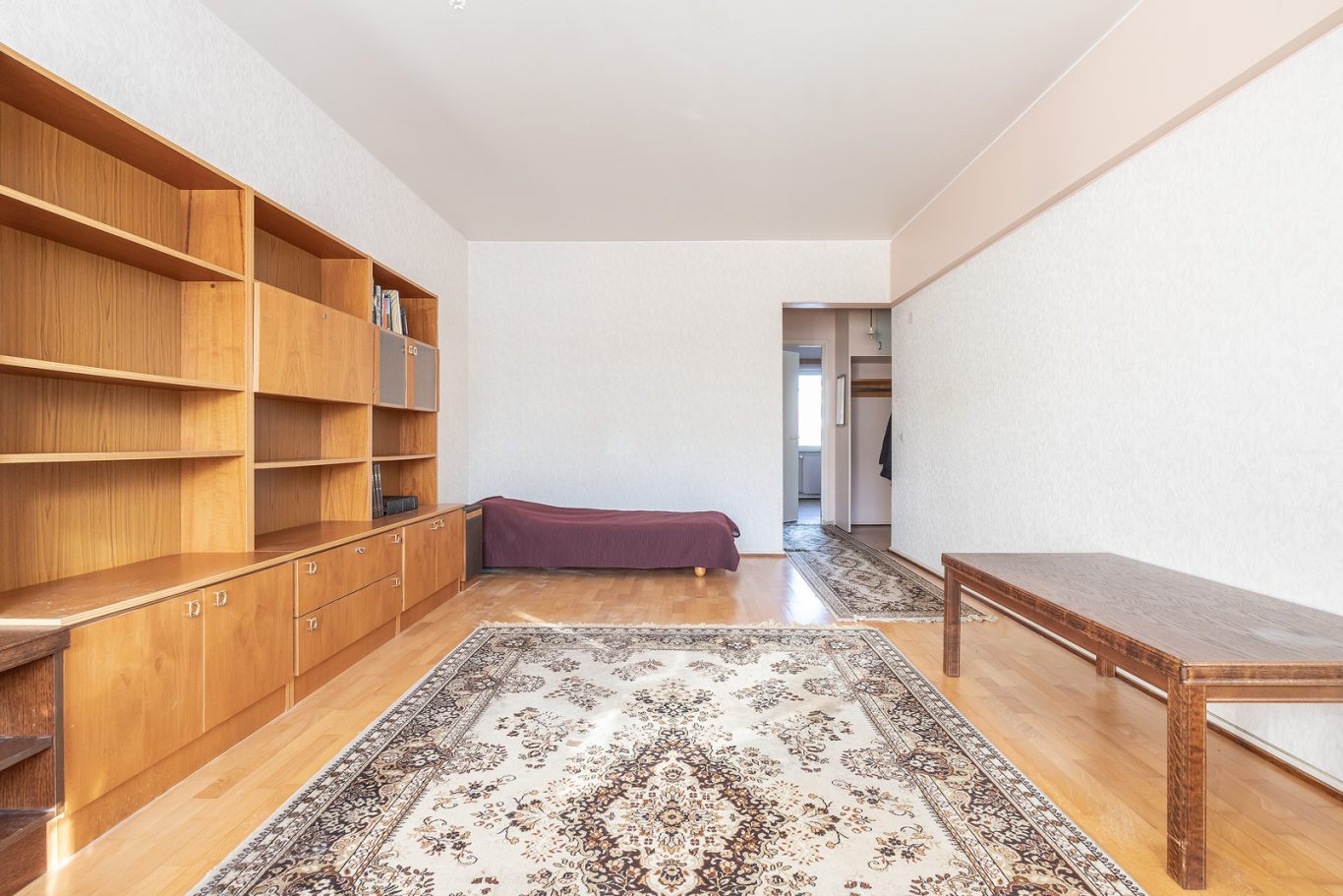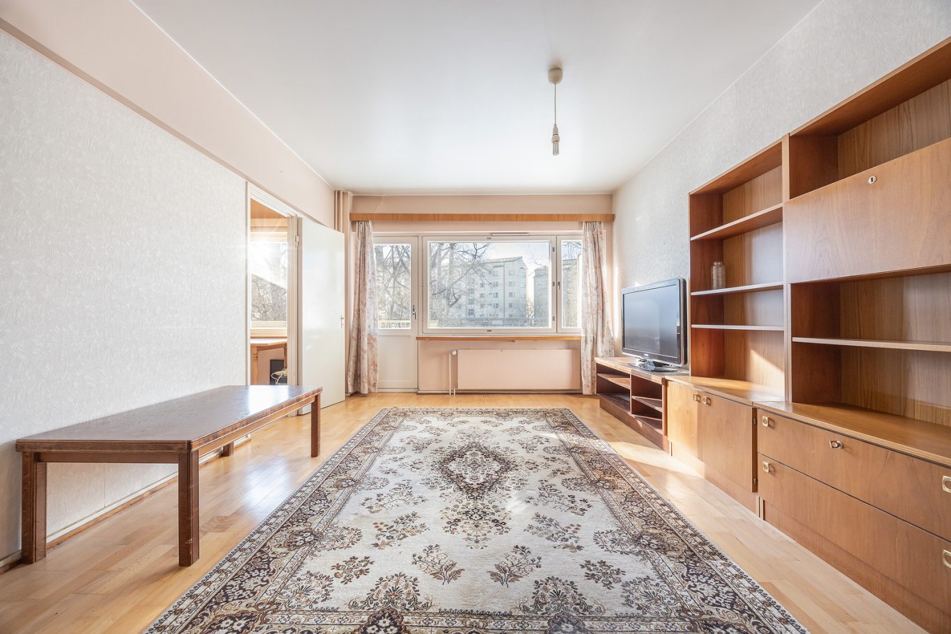 Avaran olohuone. Tilava eteläparveke. Ikkunallinen keittiö on erillään varsinaisista oleskelutiloista, mahtuu pieni ruokaryhmä. Hyvän kokoinen makuuhuone ja vaatehuone. Kaunis kylpyhuone on saneerattu perinteisen putkiremontin yhteydessä 2013, pesukone mahtuu. Asunto vaatii muilta osin päivitystä.