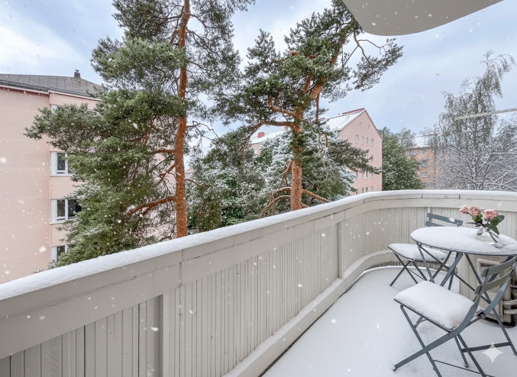 Daikinin design-ilmalämpöpumppu pitää asunnon miellyttävän viileänä kesähelteillä ja tuo asumiseen modernia mukavuutta. Etelään avautuva parveke tarjoaa rauhallisen paikan nauttia auringosta ja ympäröivästä vehreydestä.