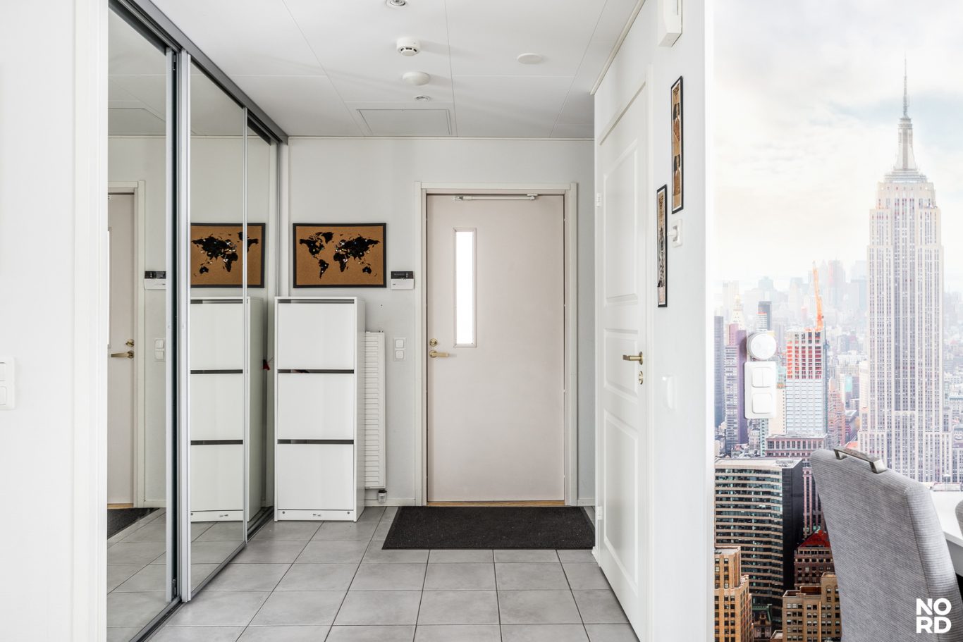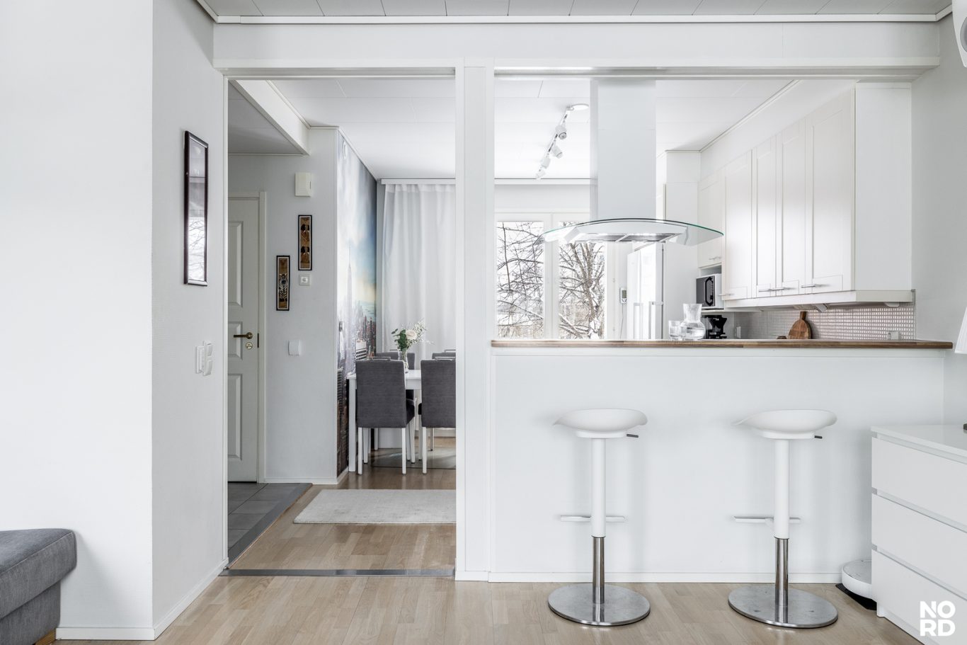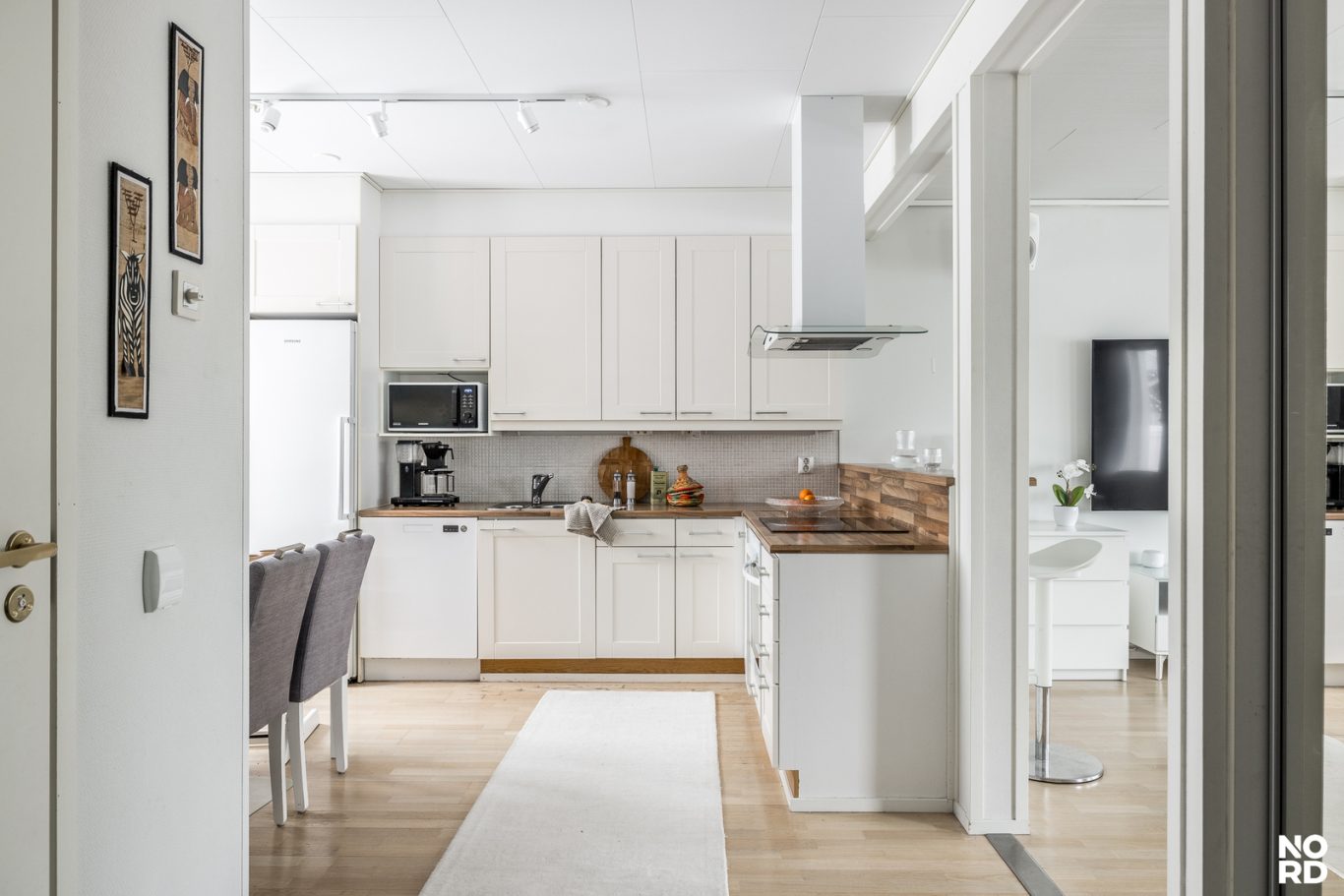 | Tehdyt korjaukset | Parketit on hiottu 2018, seiniä maalattu, yläeteiseen asennettu led-spotit, olohuoneen led-valaistus 2018. Taloyhtiö remontoi kylpyhuoneen ja saunan lattian sekä olohuoneen sisäkaton 2018. Samasssa yhtydessä uusittiin Kylpyhuoneen kaappien ovet ja taso. Ilmalämpöpumppu 2019. |